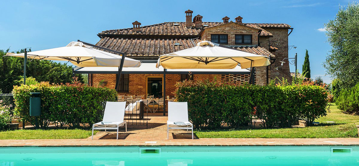 A 19th century farmhouse between Lake Trasimeno and Tuscany, comprising 9 bedrooms and 10 bathrooms with an underground garage, large garden, pool, terraces and splendid views of Lake Trasimeno.