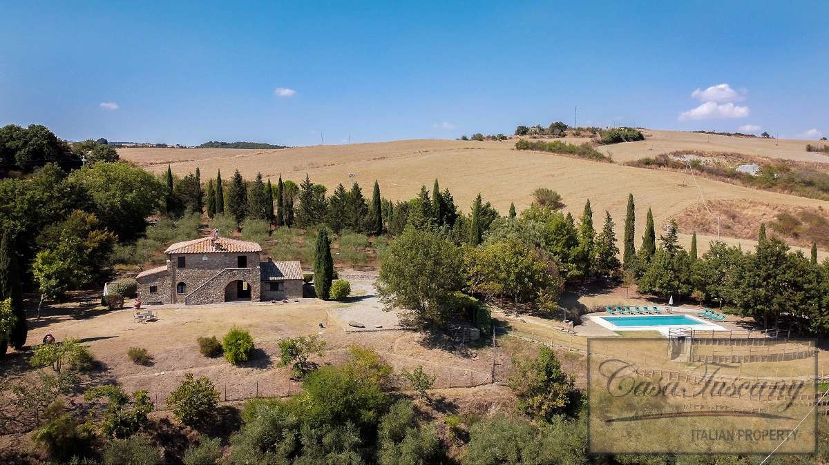 V5254CR – €890,000 – 3 bedroom property in the countryside between Val d’ Orcia and Maremma. The sale includes 3 hectares of land with olive grove, lovely pool and parking.