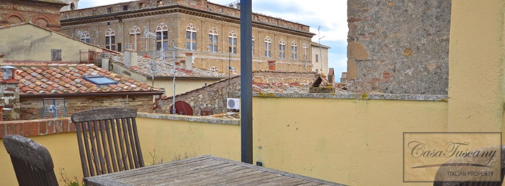 V3700AB – €390,000 – Typical 4 storey townhouse in the historical centre of Pienza, with a characteristic panoramic terrace overlooking the rooftops.