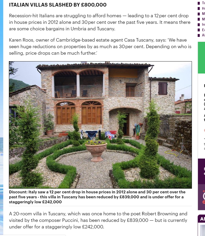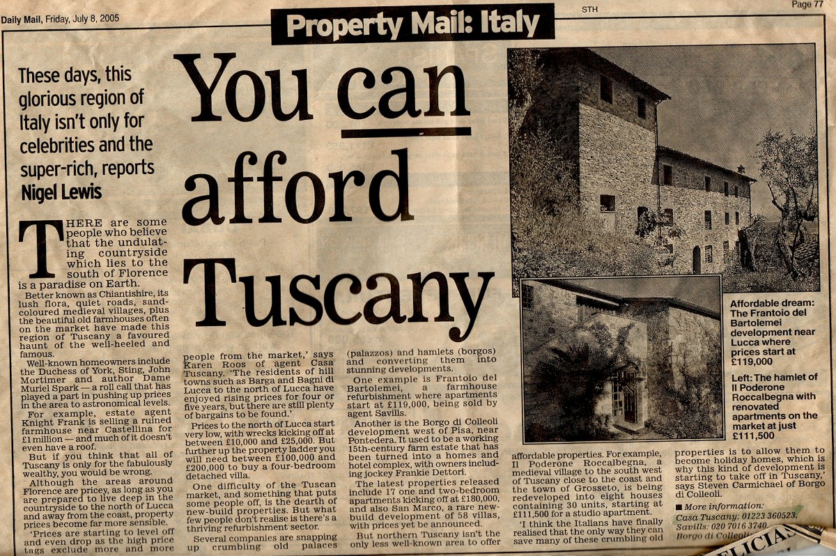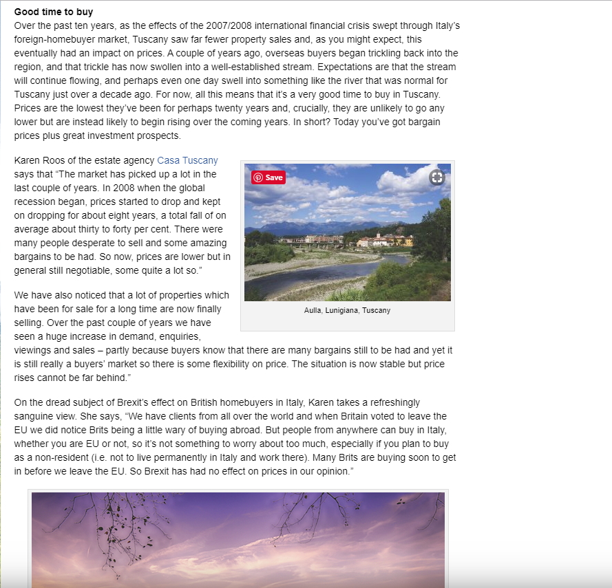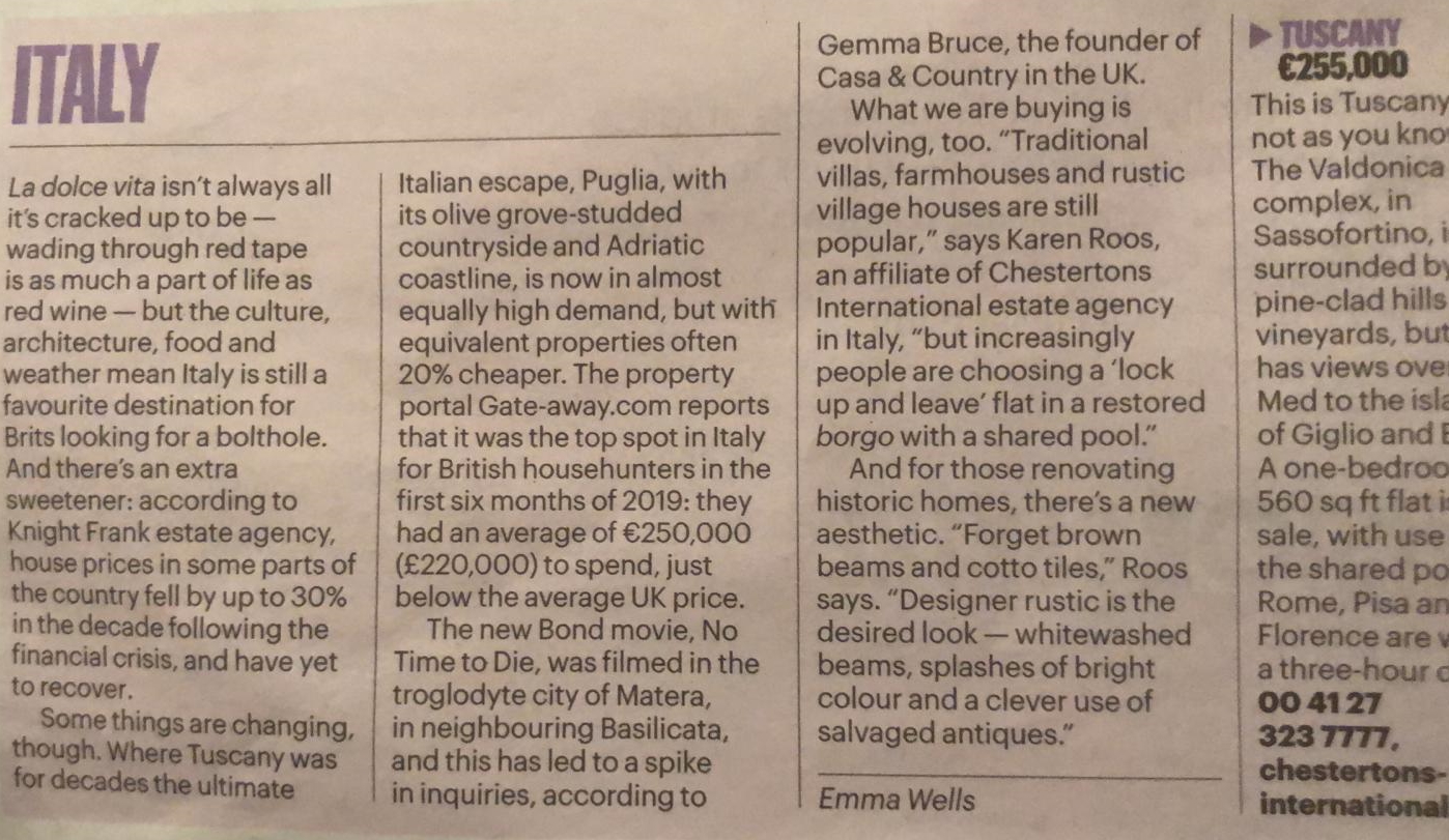 Over the years we have featured in many articles, including in the Financial Times, Daily Mail, Italy Magazine, Italia magazine, Sunday Business Post (Ireland), Living for Retirement magazine, Manchester Evening News, to name but a few. We or our properties have also featured in many television programmes including ‘A Place in the Sun’, ‘Grand Designs’, ‘Fantasy Homes by the Sea’, ‘Escape to the Continent’ ‘I Want that House’, ‘House Hunters in the Sun’.