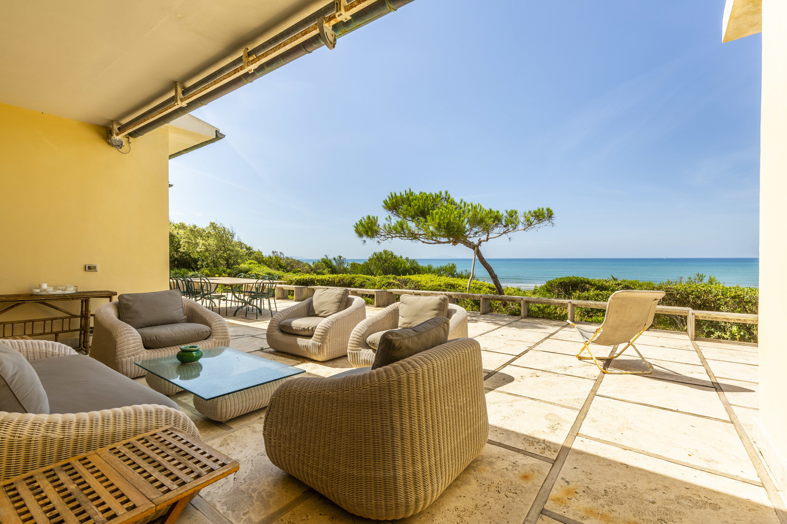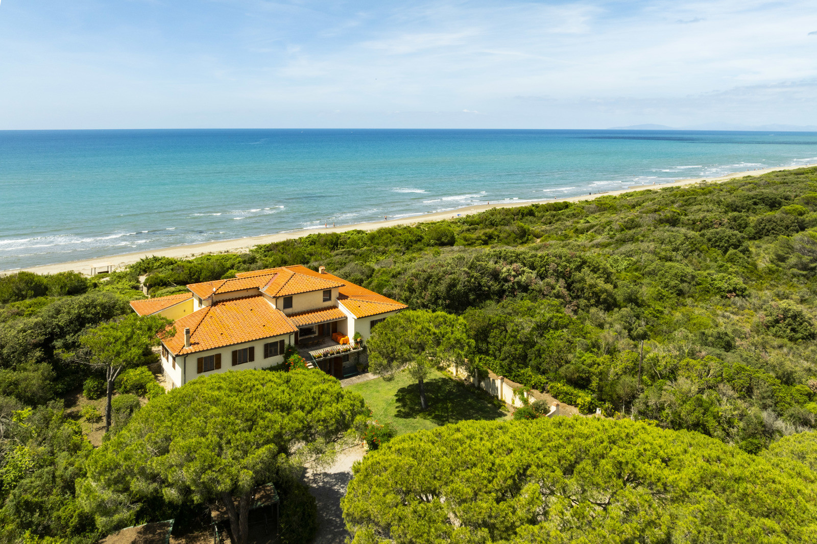 Near Castiglione Della Pescaia, exclusive beachfront villa of 590 sqm with stunning views of the islands of the Tuscan Archipelago and park of 15 hectares.