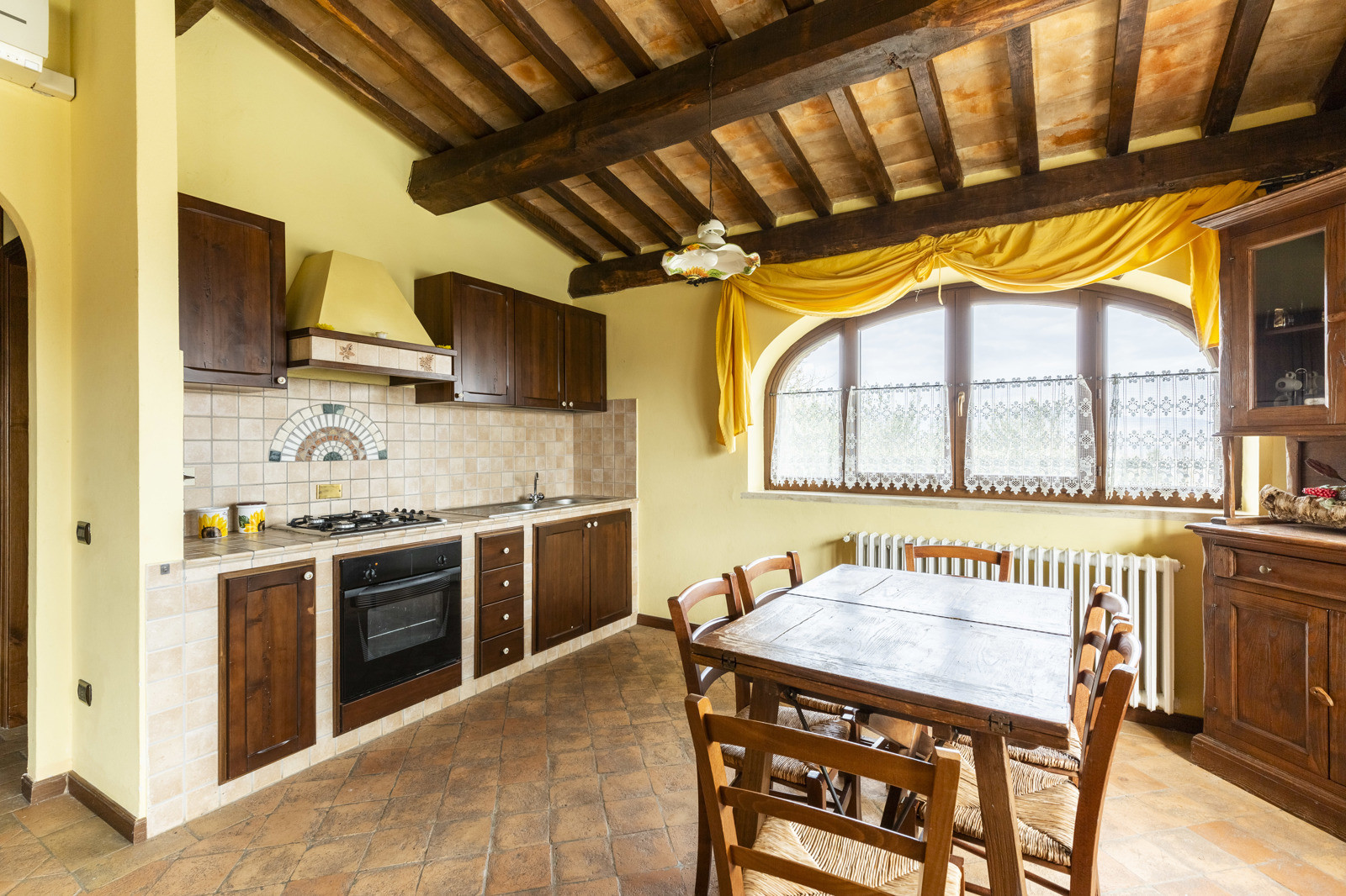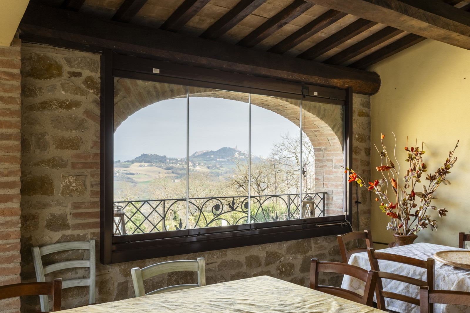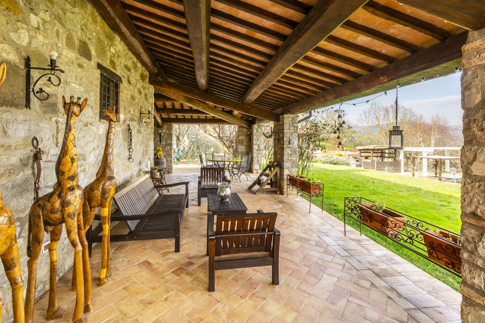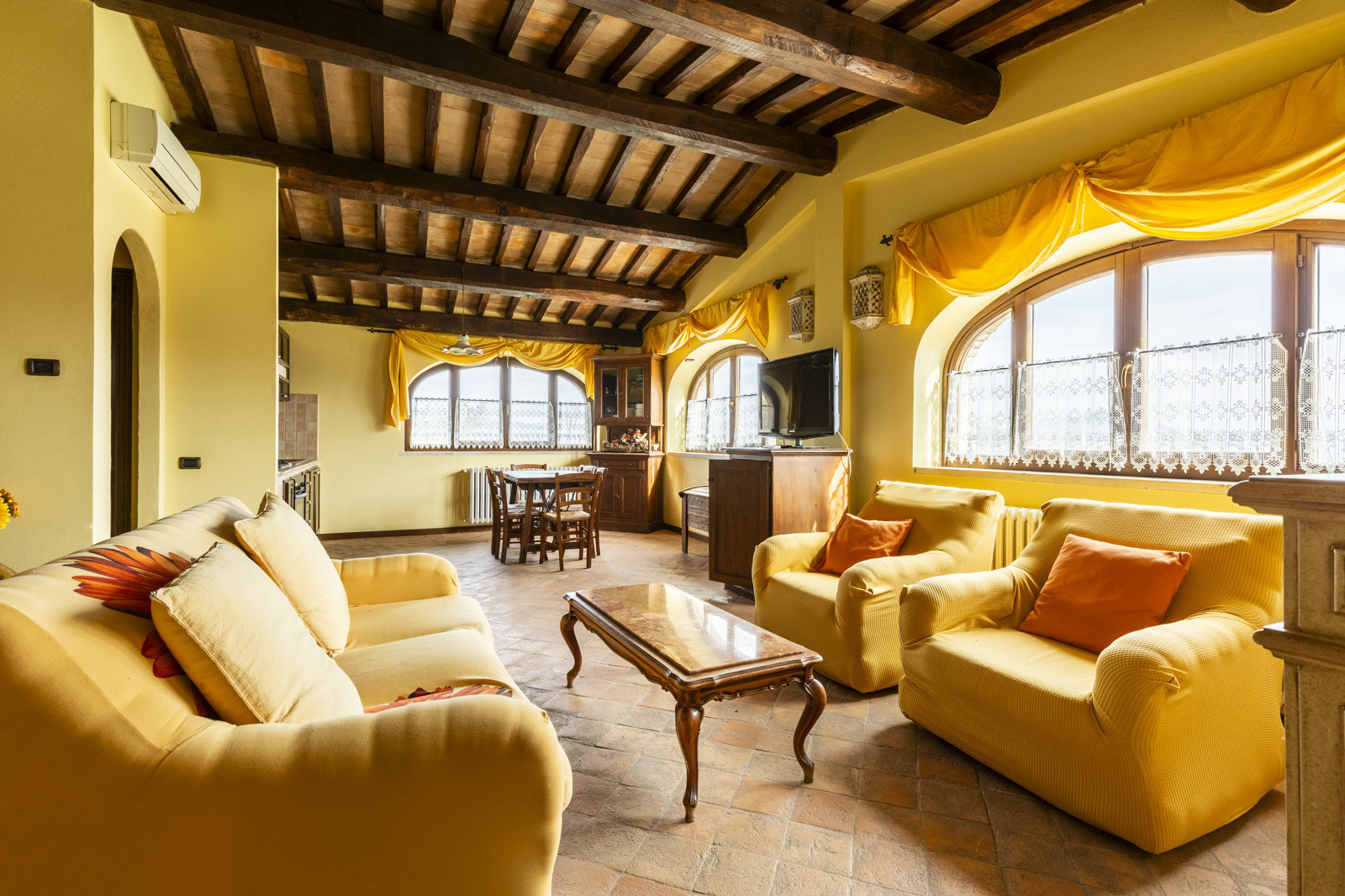 The second building, currently used for hospitality, offers 4 independent apartments and a lovely studio apartment on the ground floor, while on the second floor are 4 spacious rooms with private bathrooms. A distinctive element of this structure is the charming panoramic loggia, equipped with an oven and kitchen, ideal for outdoor dining immersed in the beauty of the Umbrian landscape.