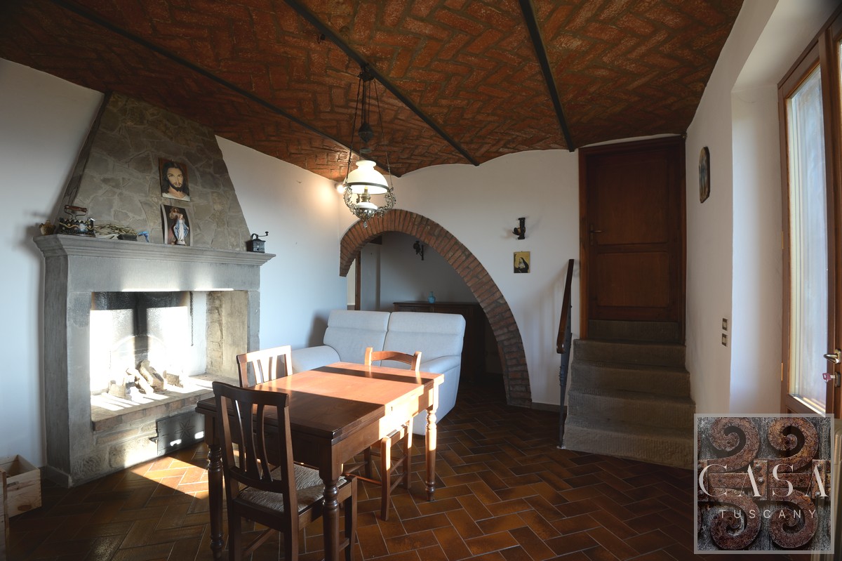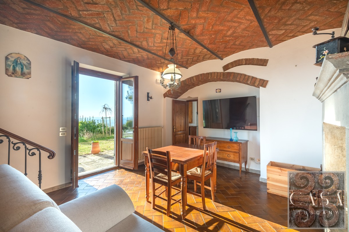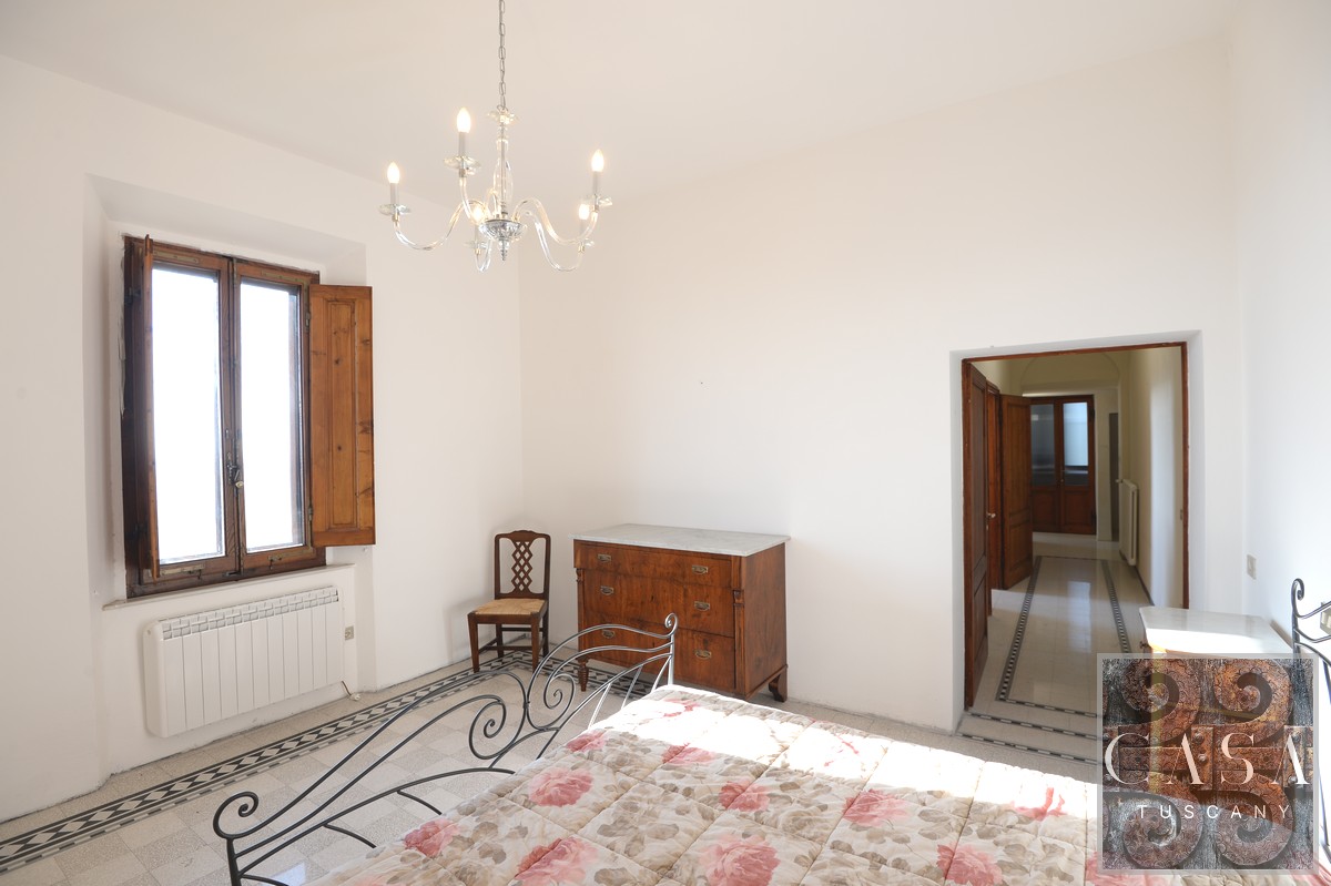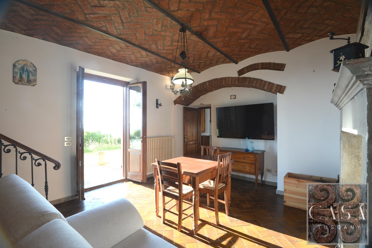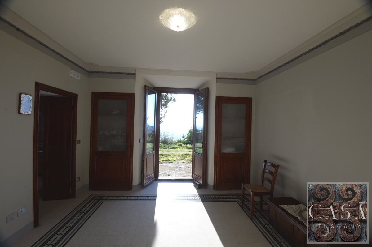 In the rolling hills near Cortona, a historic home dating from the late 1800s, facing south/west and with a 360-degree view, sunny dawn to dusk and with a spectacular view of the valley below, of Lake Trasimeno and Cortona. Just 800 m from Cortona, the location allows you to reach the historic town also on foot, taking about 10 minutes through a park. Despite its proximity to the beating heart of the town, the villa enjoys absolute privacy. The silence is interrupted only by the rustling of the wind in the trees and the singing of birds.