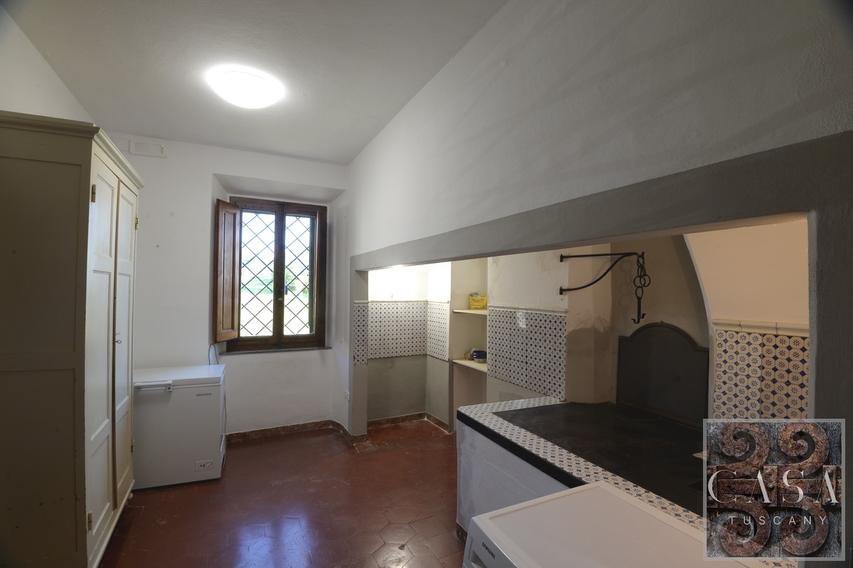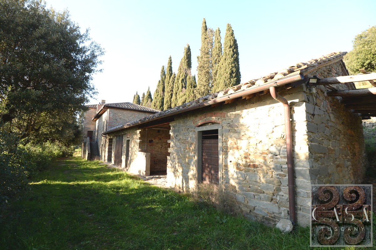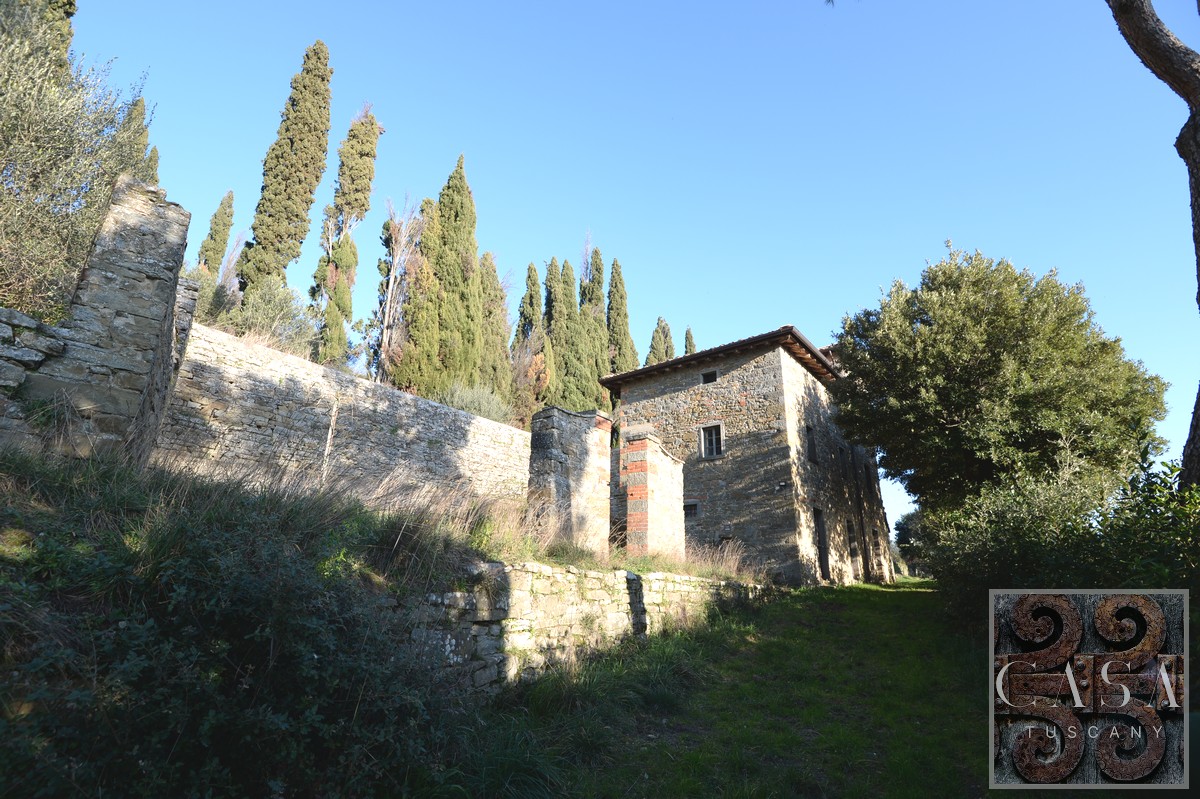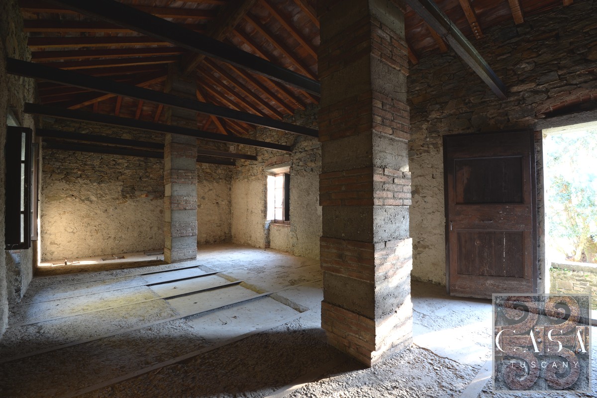 Positioned higher than the villa, the 18th century stone farmhouse is a gem, to be restored to its former splendour. With 321 sqm of floor area, independent vehicle and pedestrian access, this building already has a renovated roof, while the interiors are waiting to be customized in the taste of those who want to make it their own.