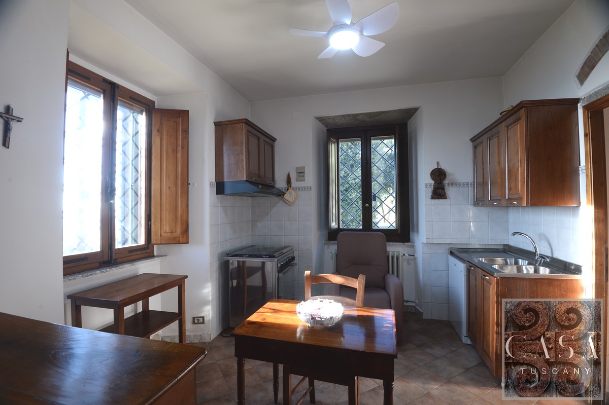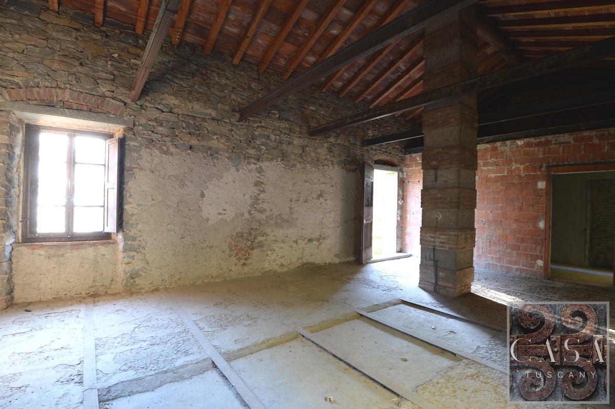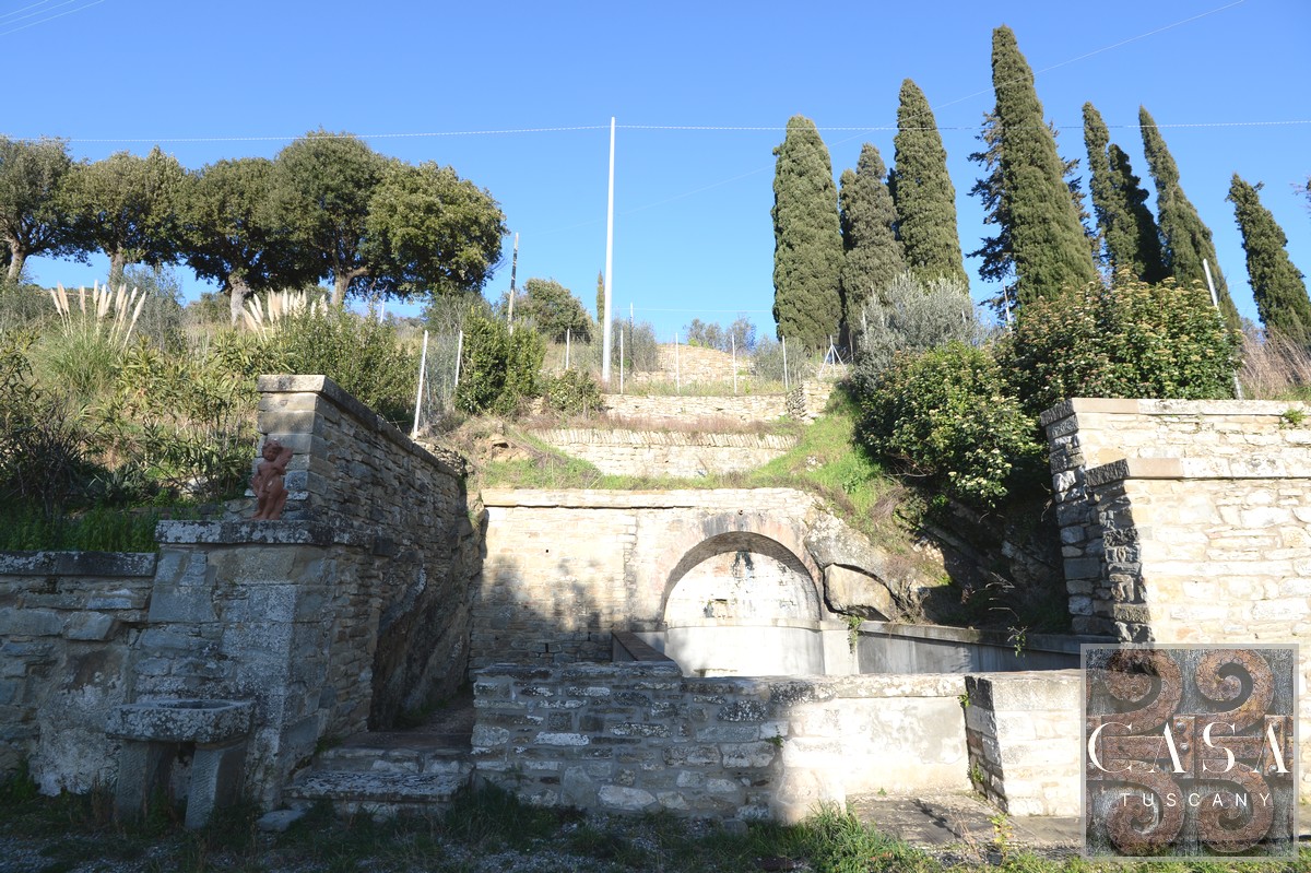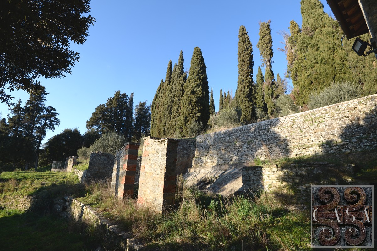 Positioned higher than the villa, the 18th century stone farmhouse is a gem, to be restored to its former splendour. With 321 sqm of floor area, independent vehicle and pedestrian access, this building already has a renovated roof, while the interiors are waiting to be customized in the taste of those who want to make it their own.