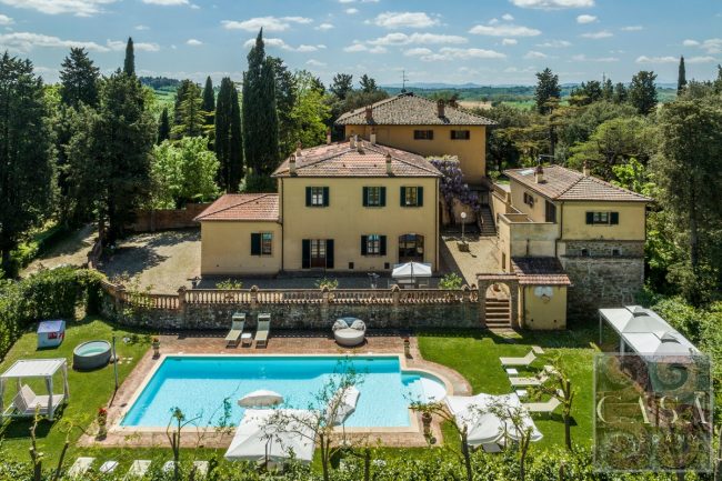 This beautiful period villa, with adjoining farm and a private chapel, is in the Valdichiana countryside, about 3km from the beautiful medieval town of Lucignano and 20 minutes from Cortona and Arezzo.