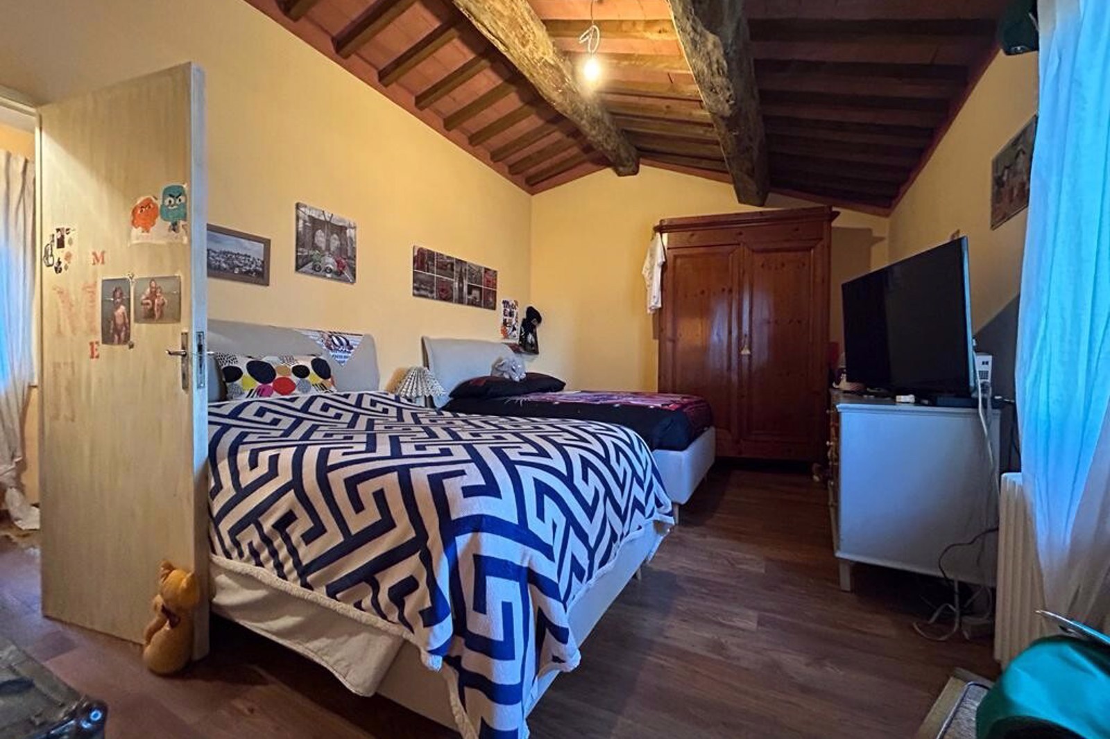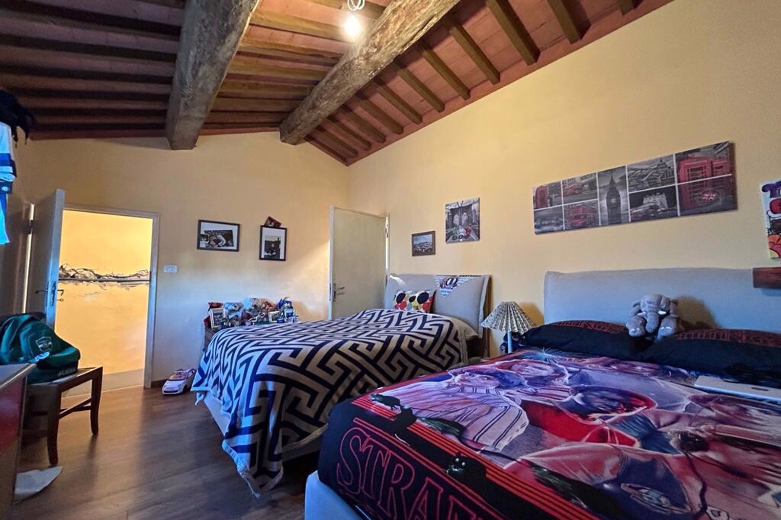 On the second floor we then find a very spacious second bedroom and a smaller single bedroom, which can also be converted into another en suite bathroom, and from here we access the attics.