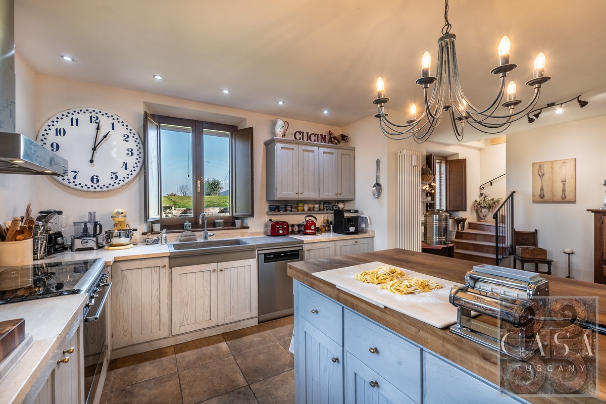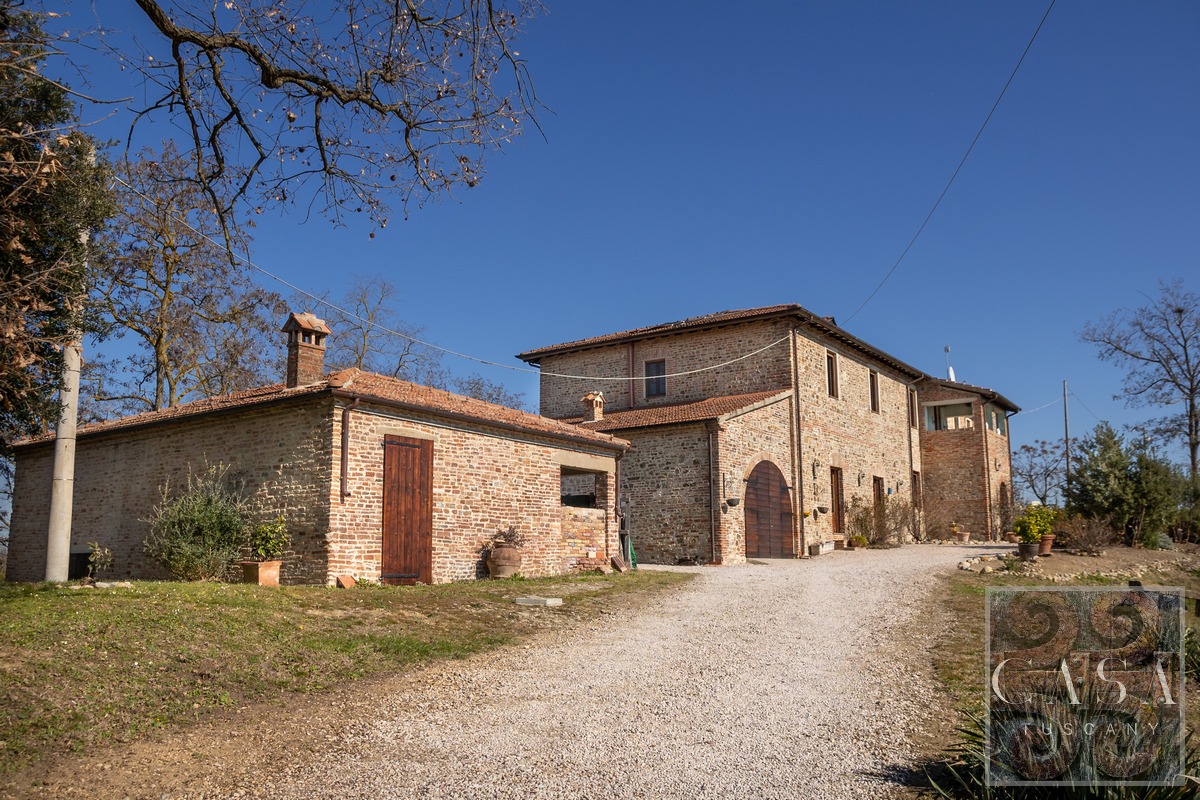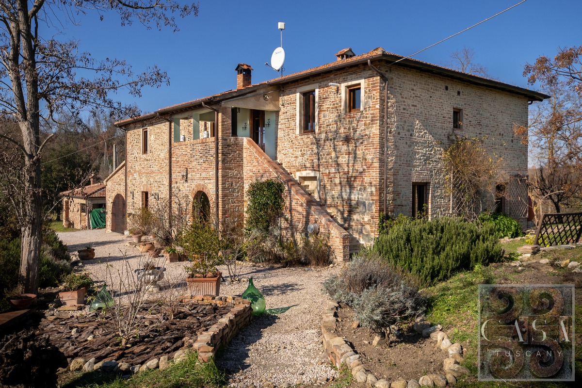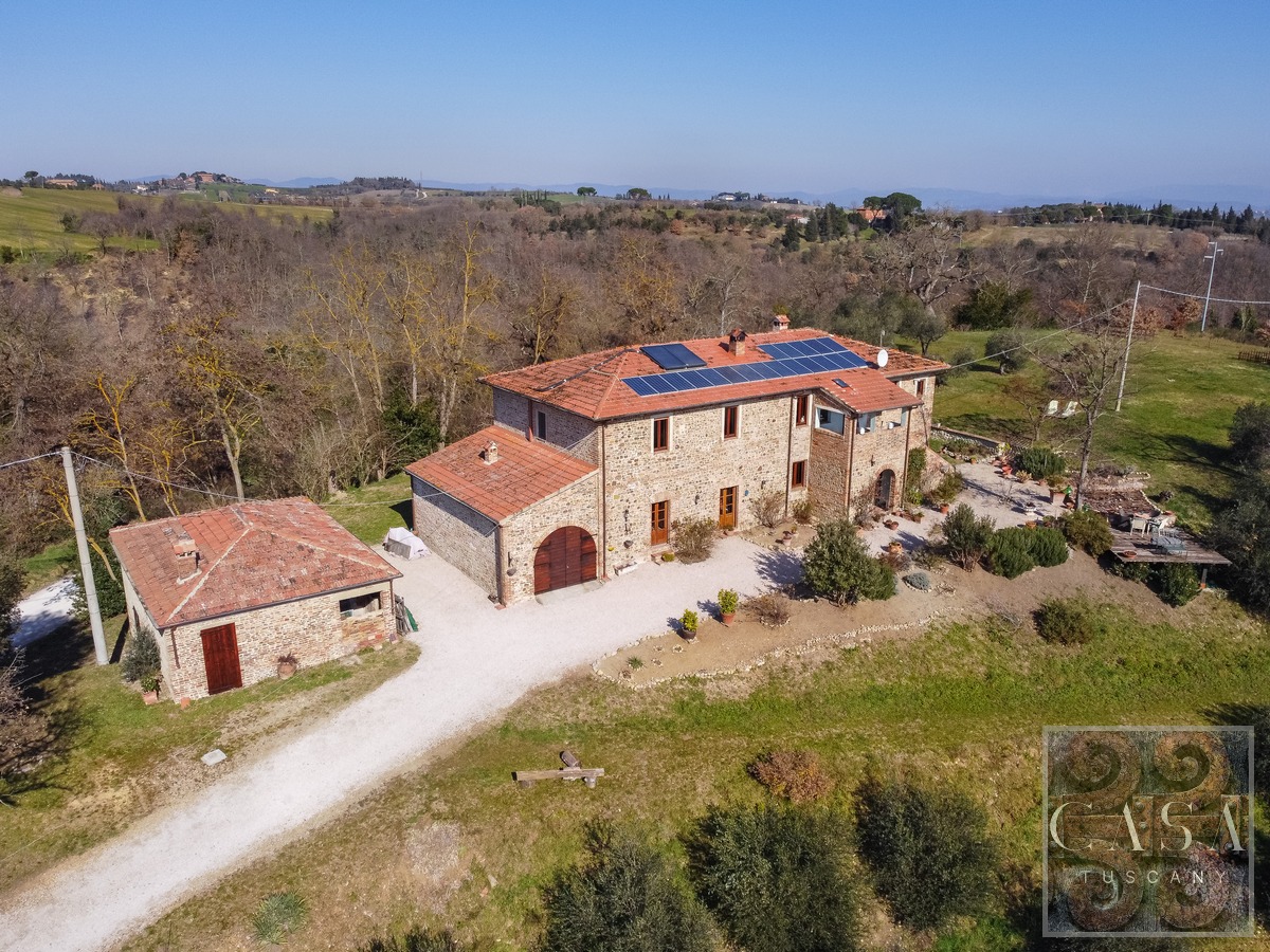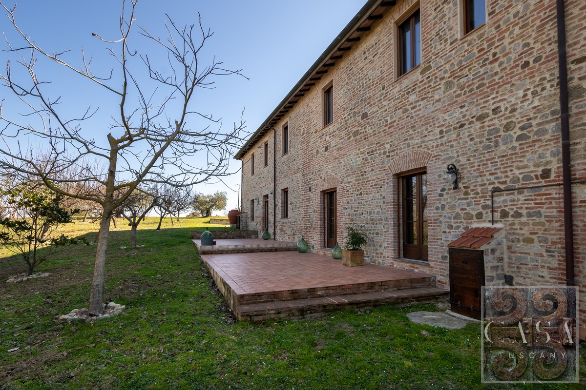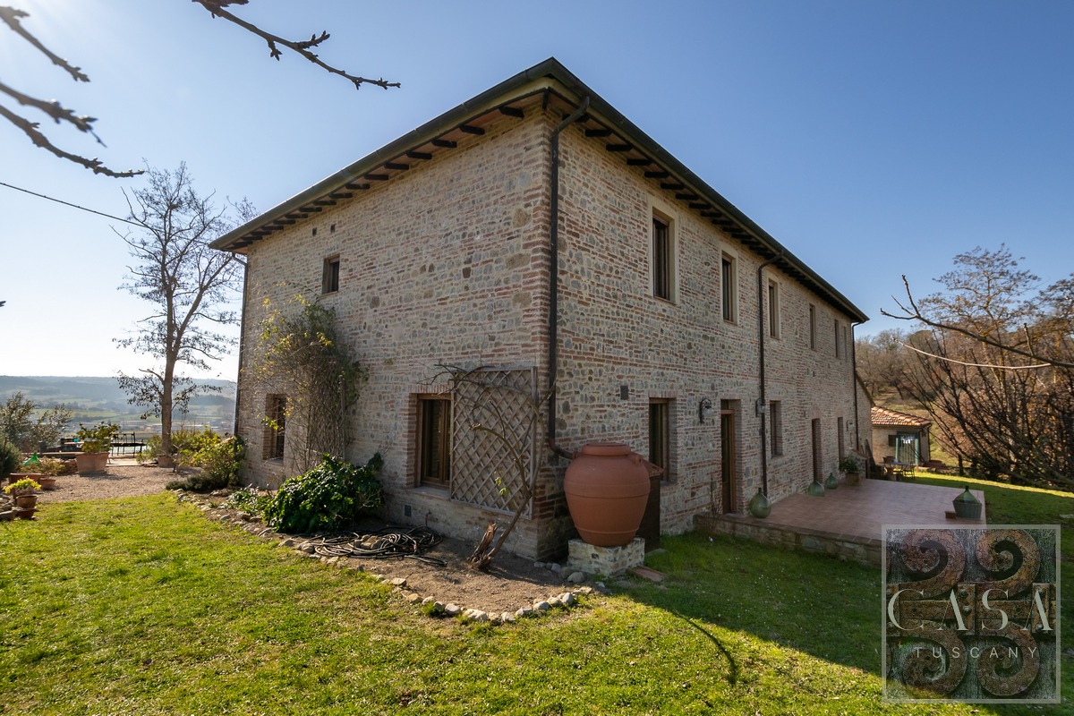 Finely restored 5 bedroom farmhouse with solar and photovoltaic panels, olive grove and orchard for sale near Città della Pieve, Umbria.