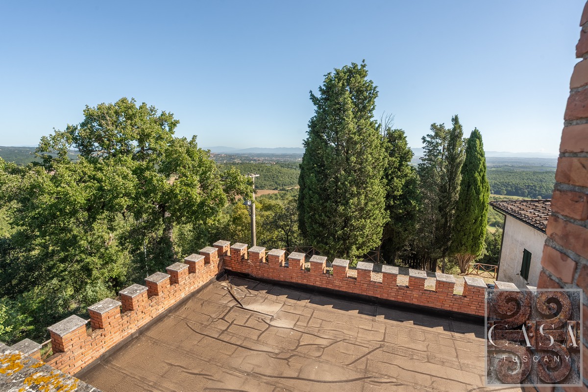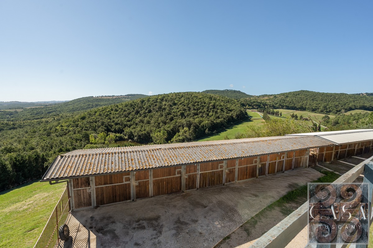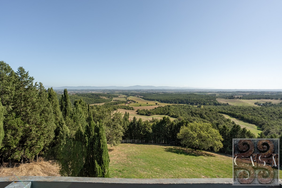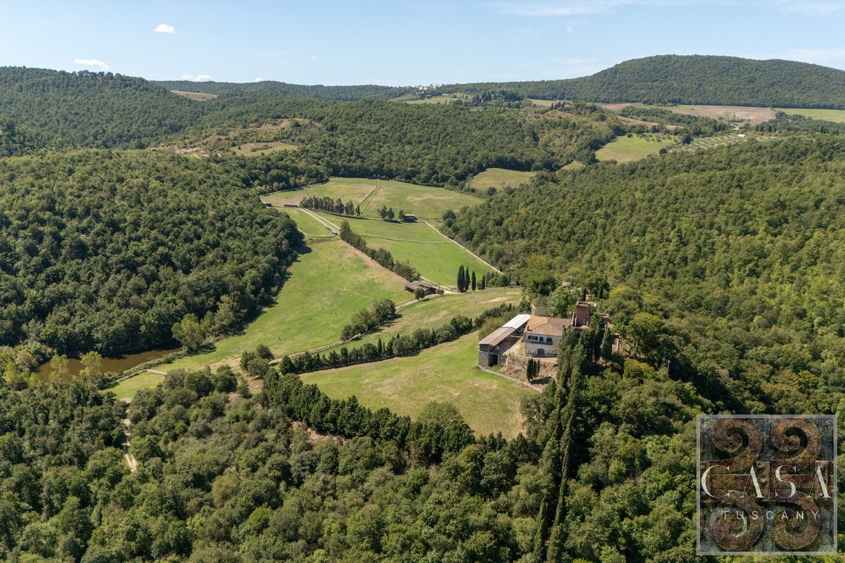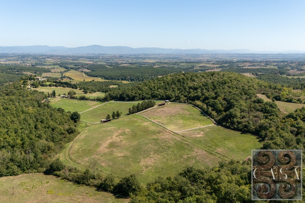 98 hectare estate with a four-storey villa with a crenellated turret, a guest house, and a horse facility, for sale near Trequanda.