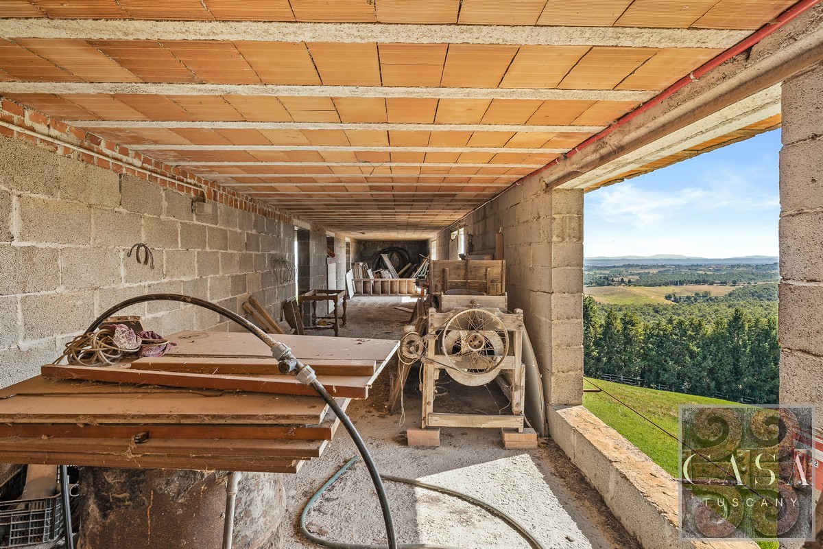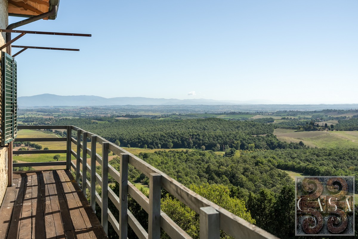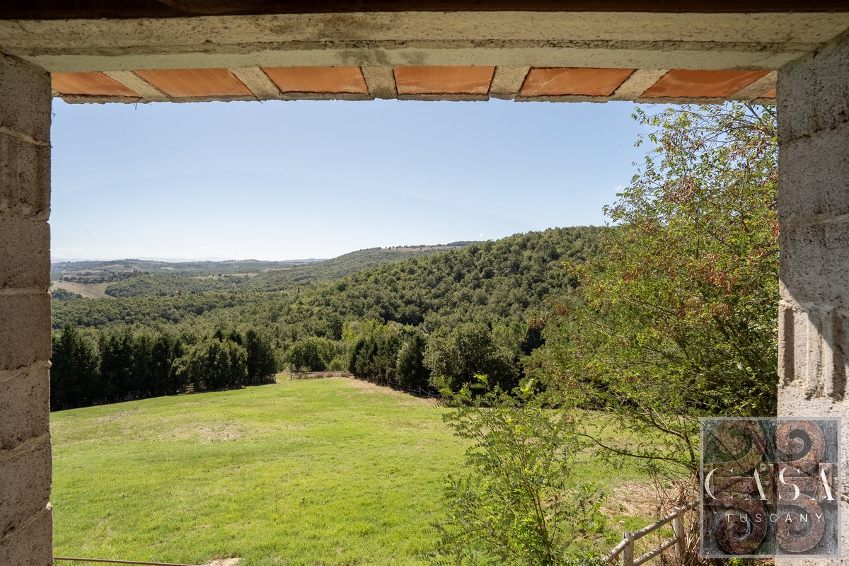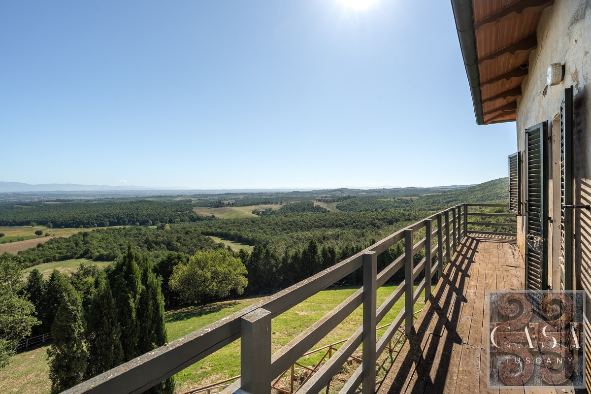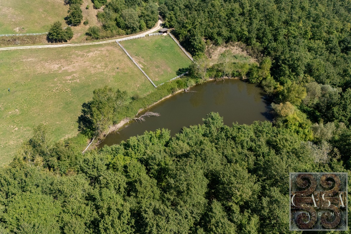 98 hectare estate with a four-storey villa with a crenellated turret, a guest house, and a horse facility, for sale near Trequanda.