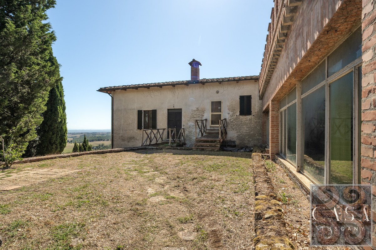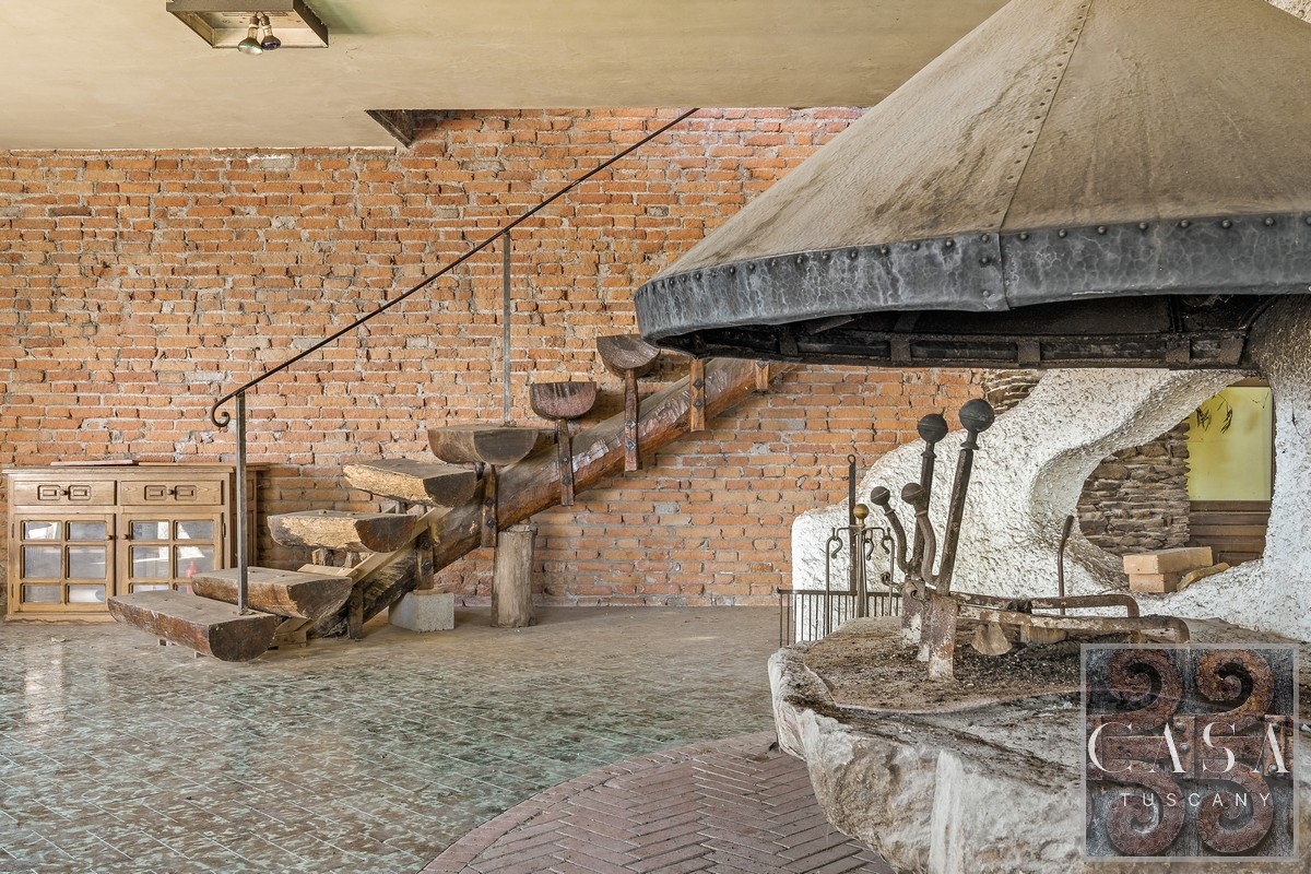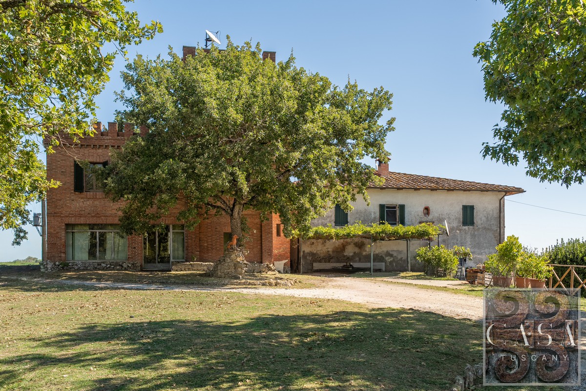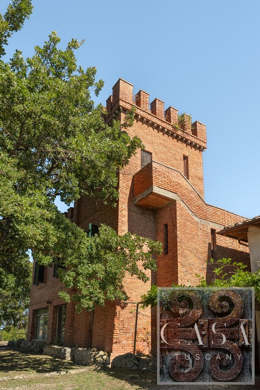 The main residence is a 223 sqm (2551 sq ft) villa with a crenellated turret, built in the 1950s and inspired by Sienese medieval castles, in addition to a country house.