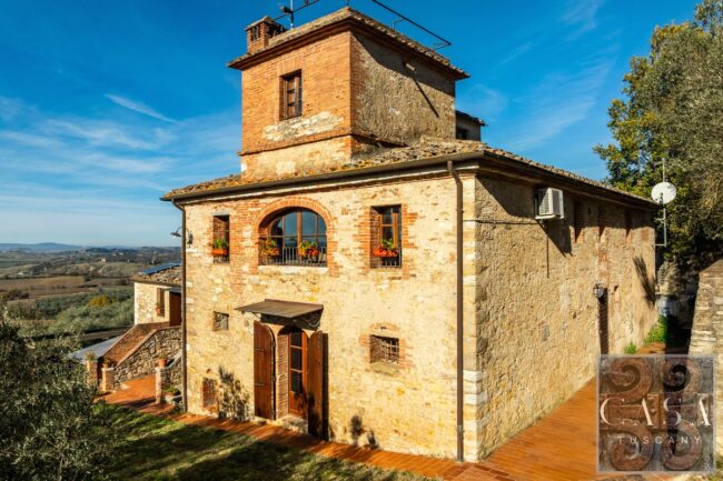 This beautiful property is located along one of the most picturesque roads in Chianti Classico, offering magnificent views of the surrounding hills adorned with famous castles, vineyards, and olive groves.
