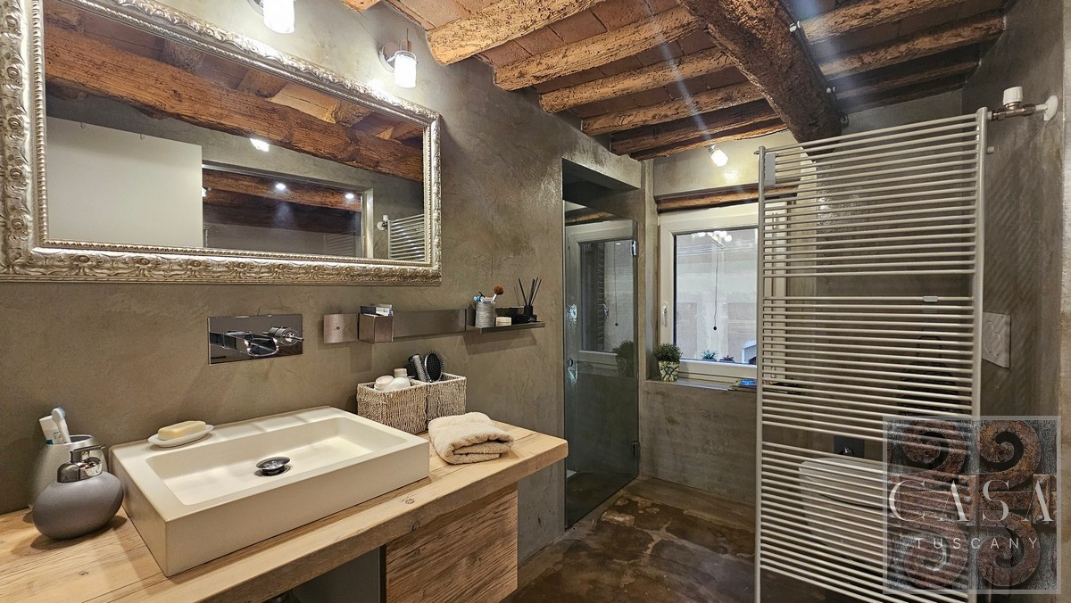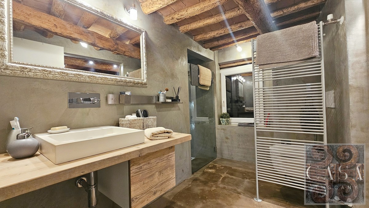 The renovation dates back to 2014, a fascinating renovation with attention to small details such as typical wooden beams and terracotta bricks, beautiful oak parquet both in the living room and in the master bedroom. In the corridor in the bathroom and in the storage room the floors are resin.