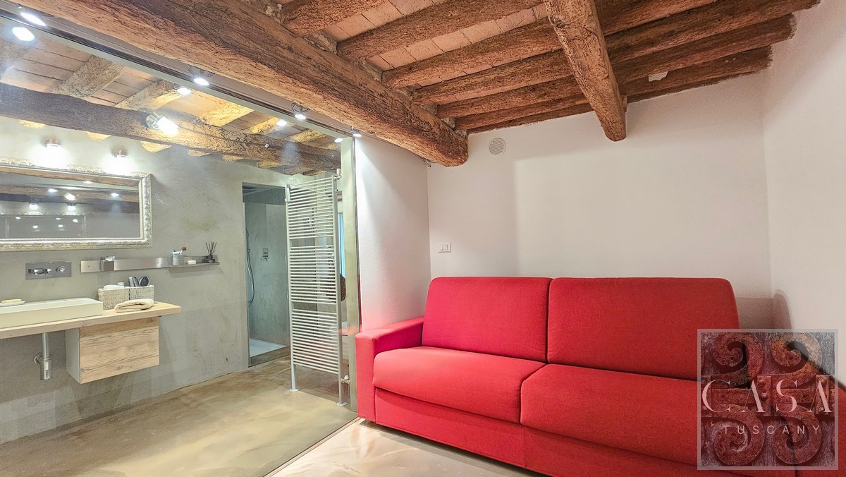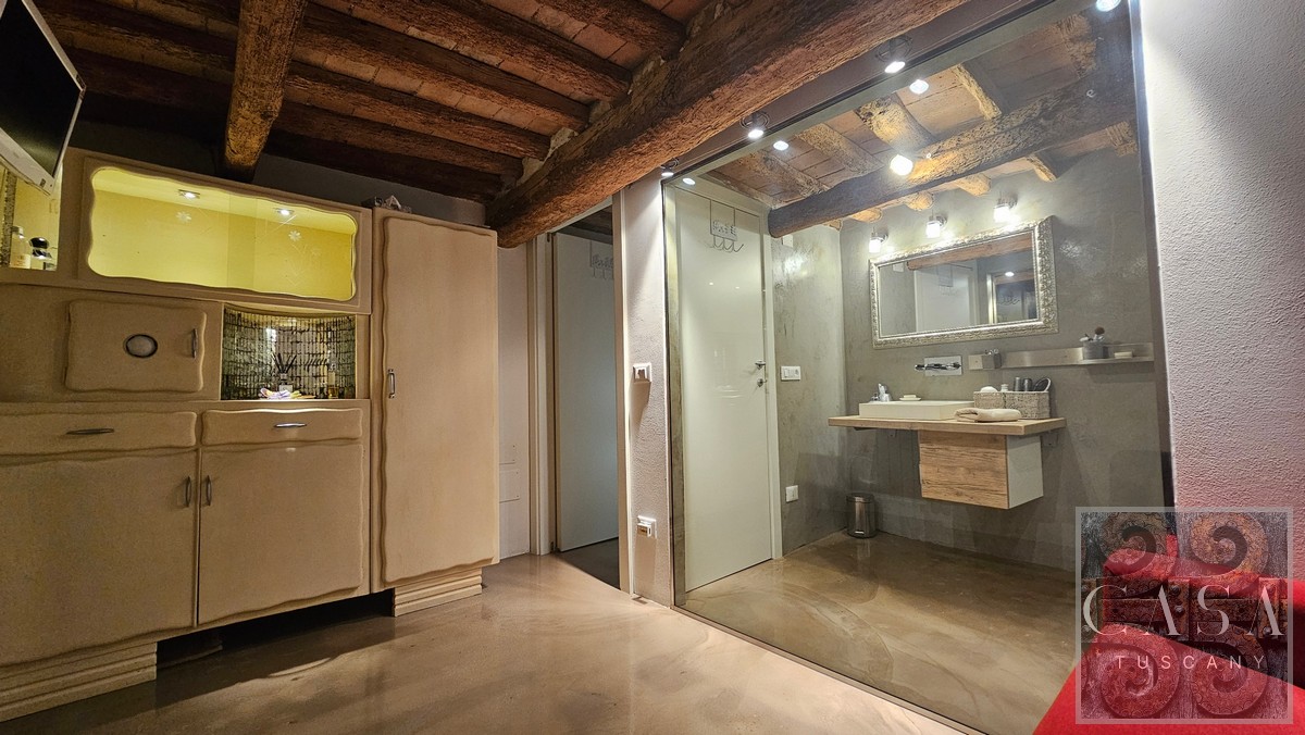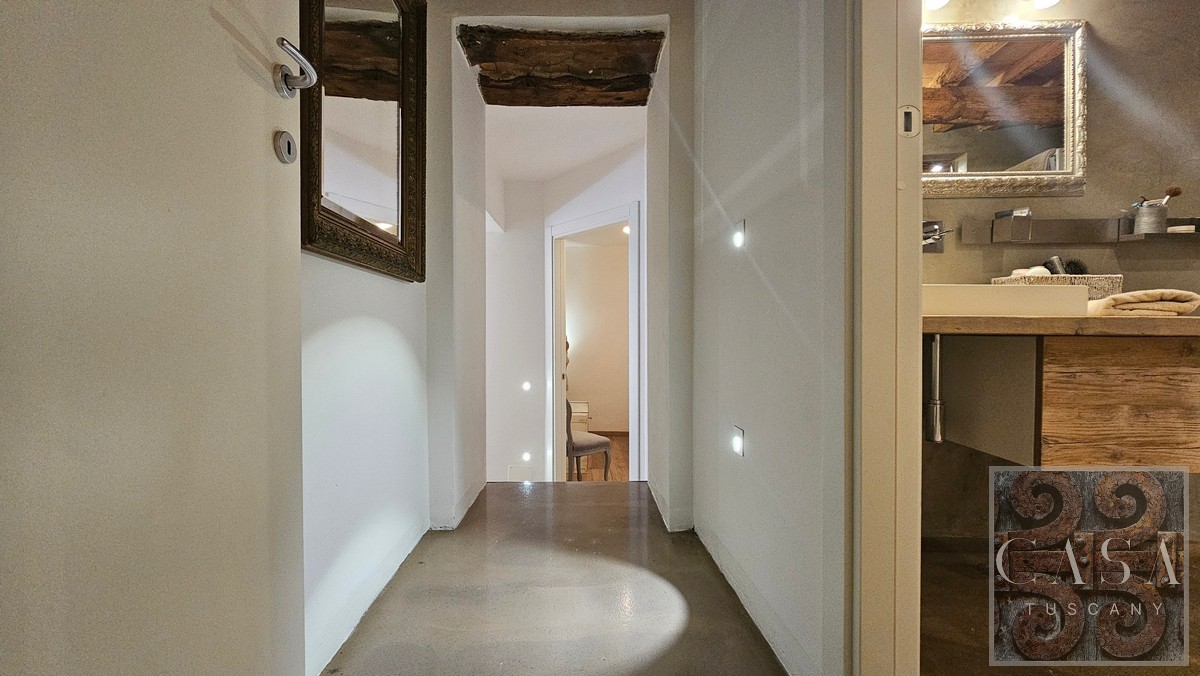 Elegant apartment with independent entrance for sale within the medieval walls of the charming village of Vico d’Elsa in the municipality of Barberino Val d’Elsa, Florence province of Tuscany.