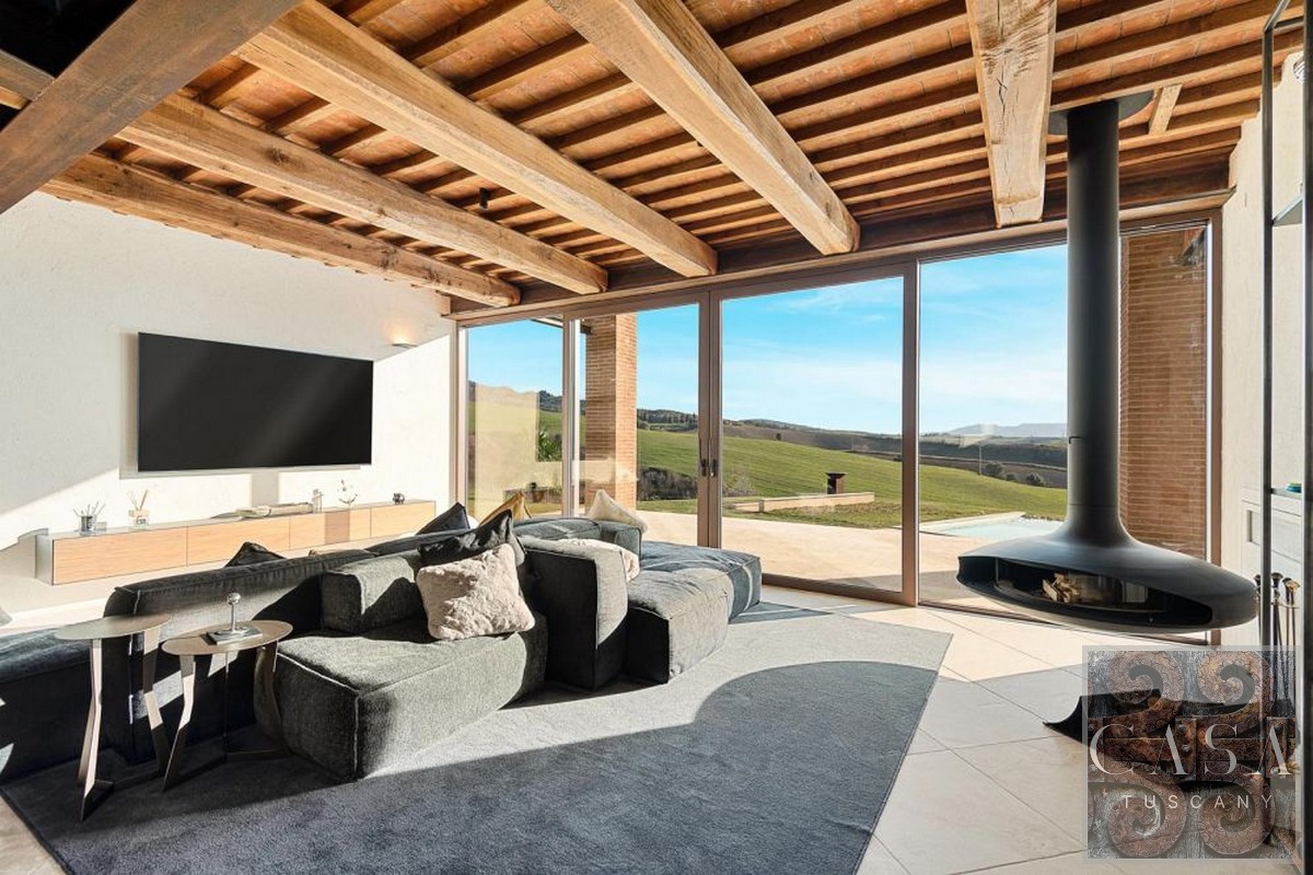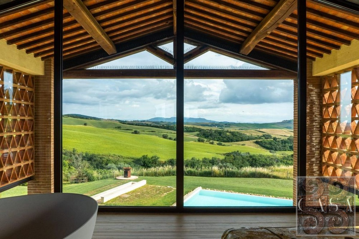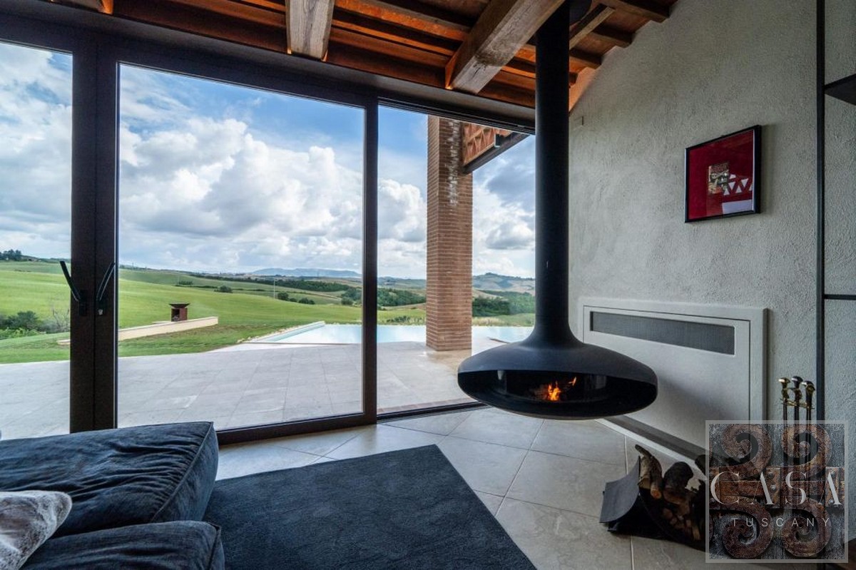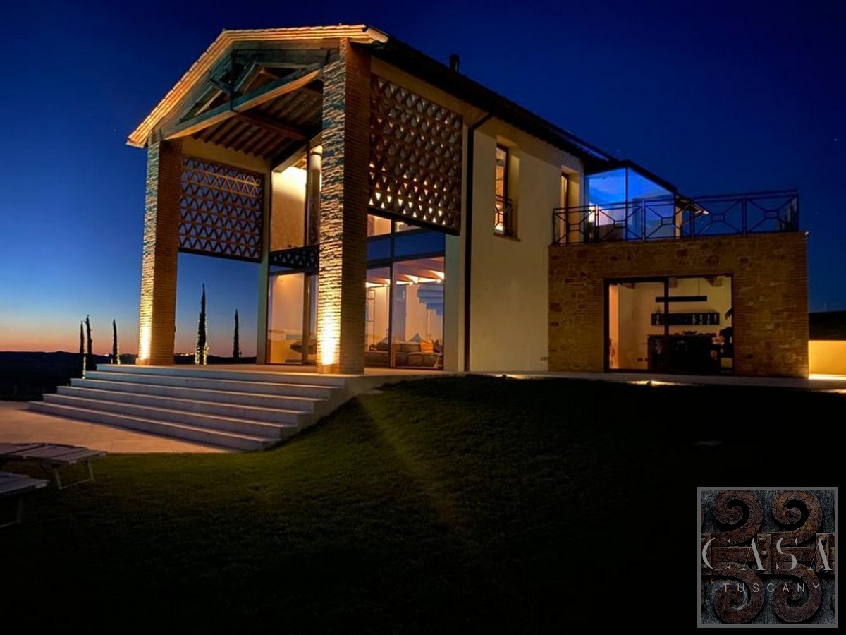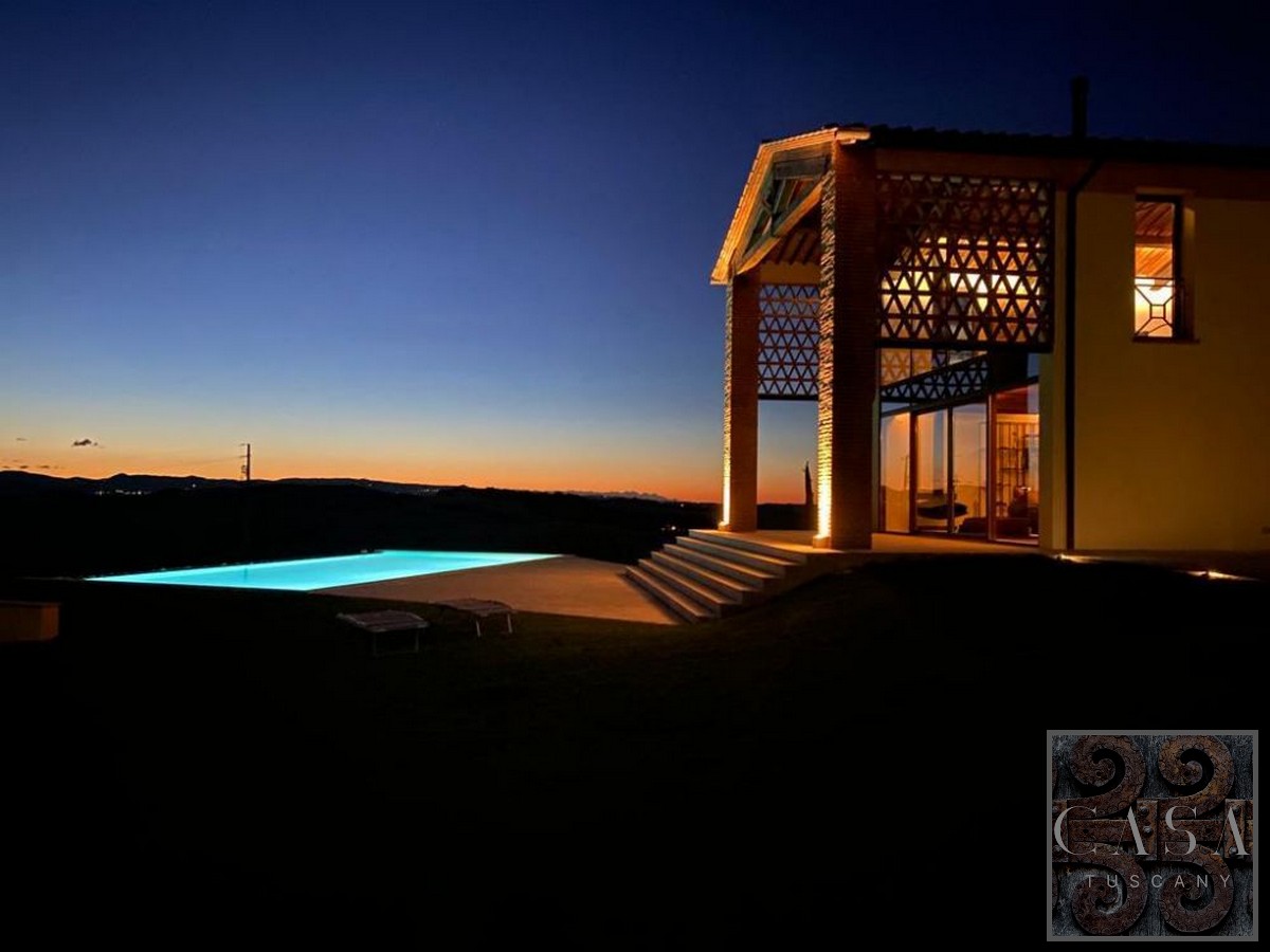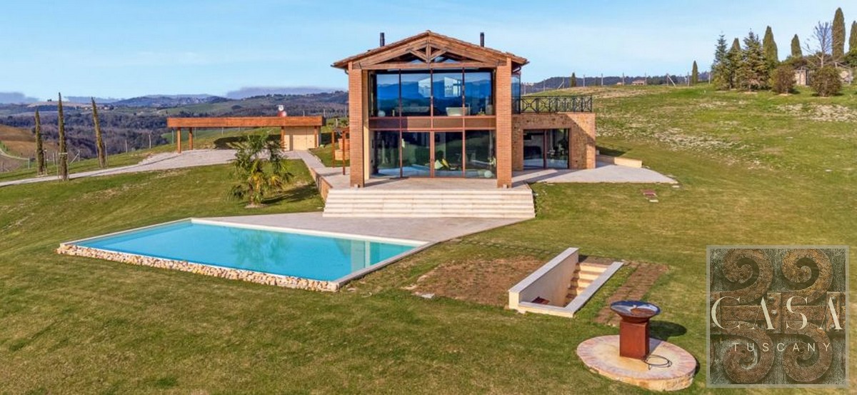 Something a little different for Tuscany, a wonderful luxury modern villa with swimming pool, in a splendid panoramic position.