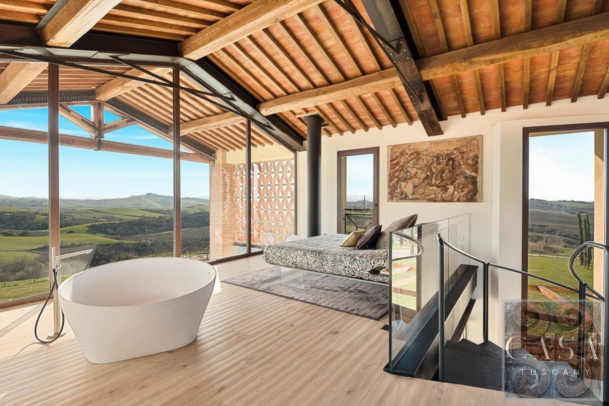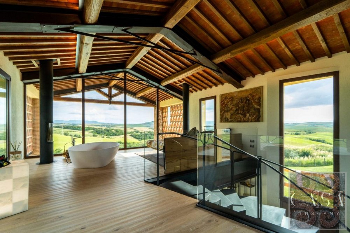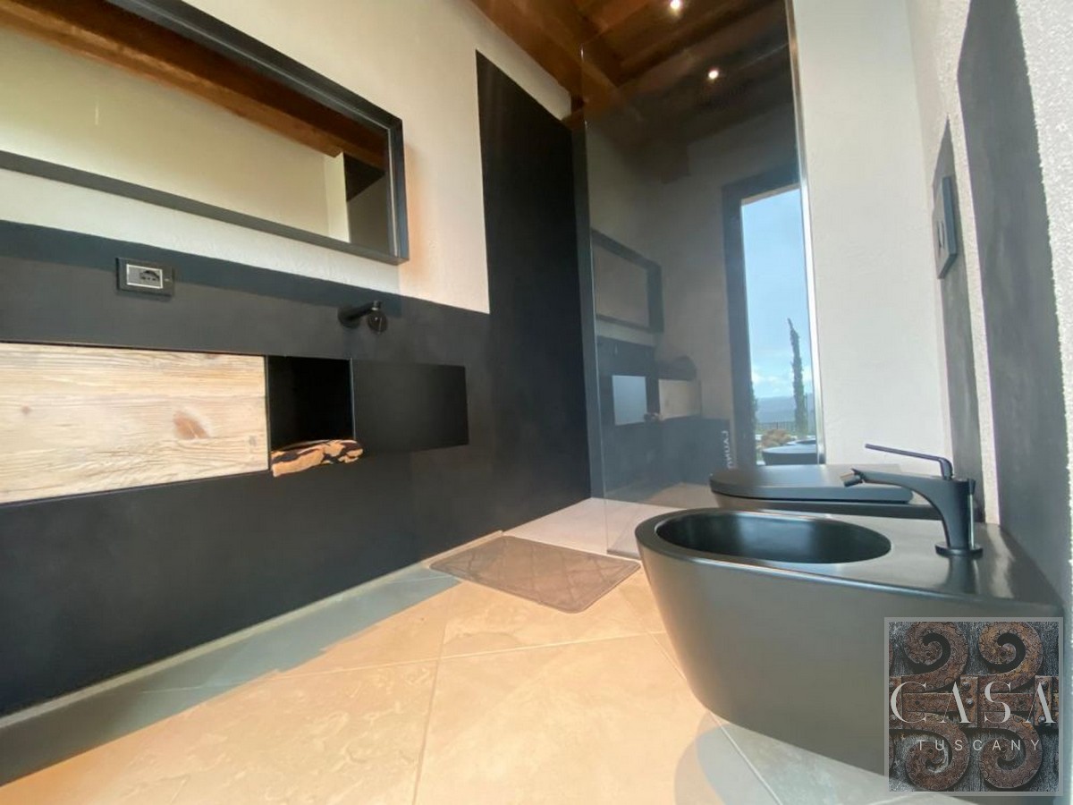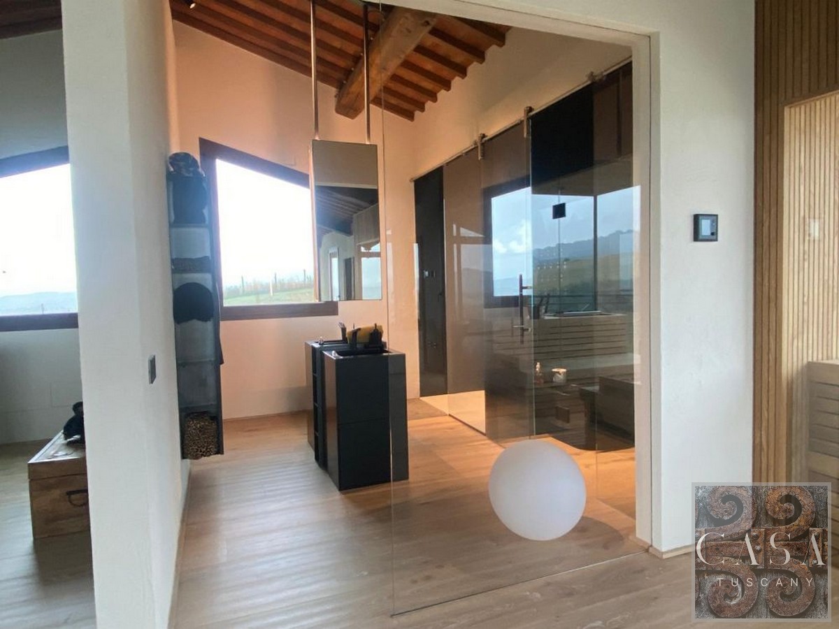 Nothing was left to chance in the reconstruction of this magnificent luxury villa located in the municipality of Montaione in the province of Florence, immersed in an idyllic landscape with extraordinary views over the typical Tuscan hills as far as the Etruscan city of Volterra.
