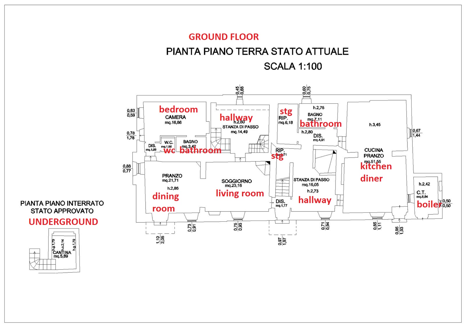 Technical report for the notary. Checks all the planning issues of the property, making sure it matches the official plans, no works have been carried out without permission, gathers all previous permits, checks the house is sellable and not illegal in any way. Carried out by a geometra, architect or engineer and costs vary considerably, a minimum of €761 including VAT/ Please note this report is NOT a structural survey, that is an optional additional report you may wish to instruct.