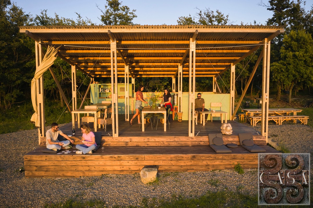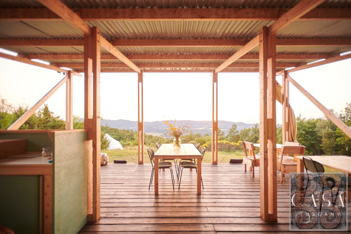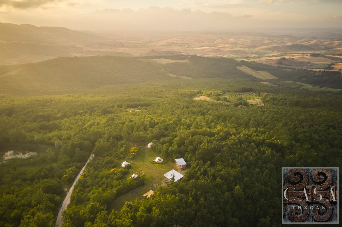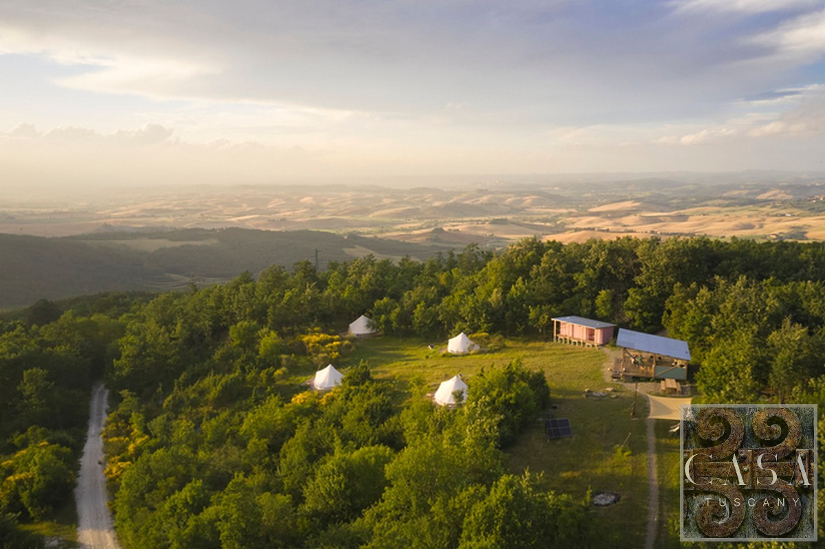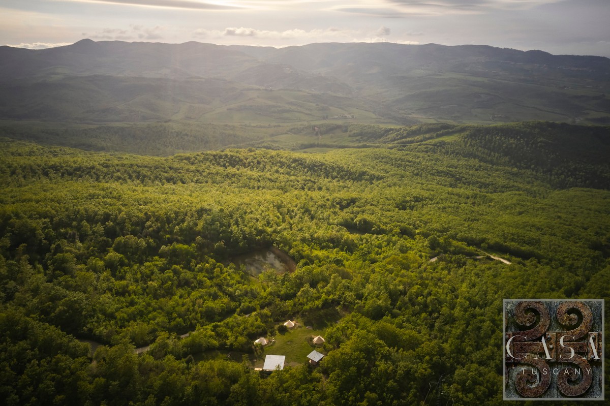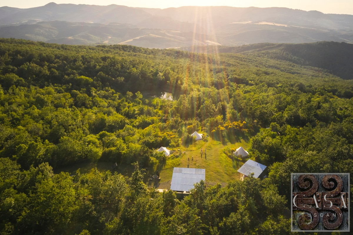 Located in the highest part of the property, surrounded by meadows and woods, with open views of the valley. The area is completely separate from the farmhouse (800 m away), ideal for privacy and peace.