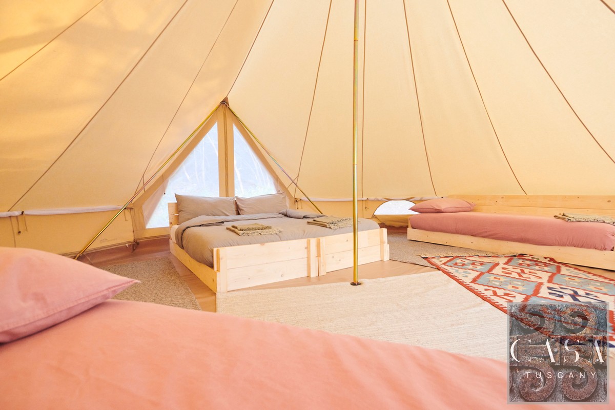 Capacity: 2–4 guests per tent. Option: A fifth pitch can be created without compromising privacy.
