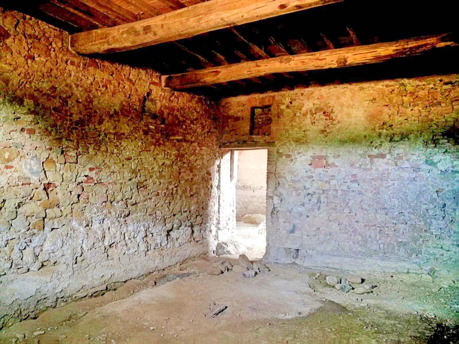 The farmhouse has been structurally consolidated and the roof and foundations have been done, but the complete renovation and all the finishing remain to complete. Externally it is made of stone and bricks while internally it has vaulted ceilings on the ground floor and exposed beams on the upper floors.
