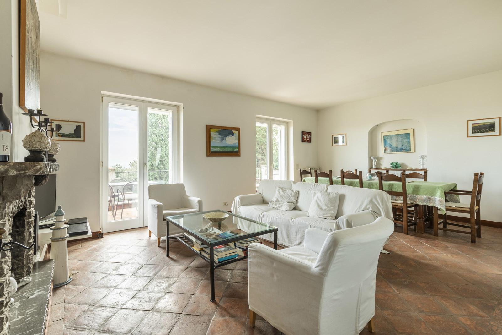 Currently the villa is arranged to accommodate two independent apartments which have large living area with fireplace, kitchen, three double bedrooms with private bathrooms, and wonderful outdoor spaces – loggias and terraces – with sea views. From the bedrooms and the living area there is access to the outdoor spaces, and the sea view is wonderful.