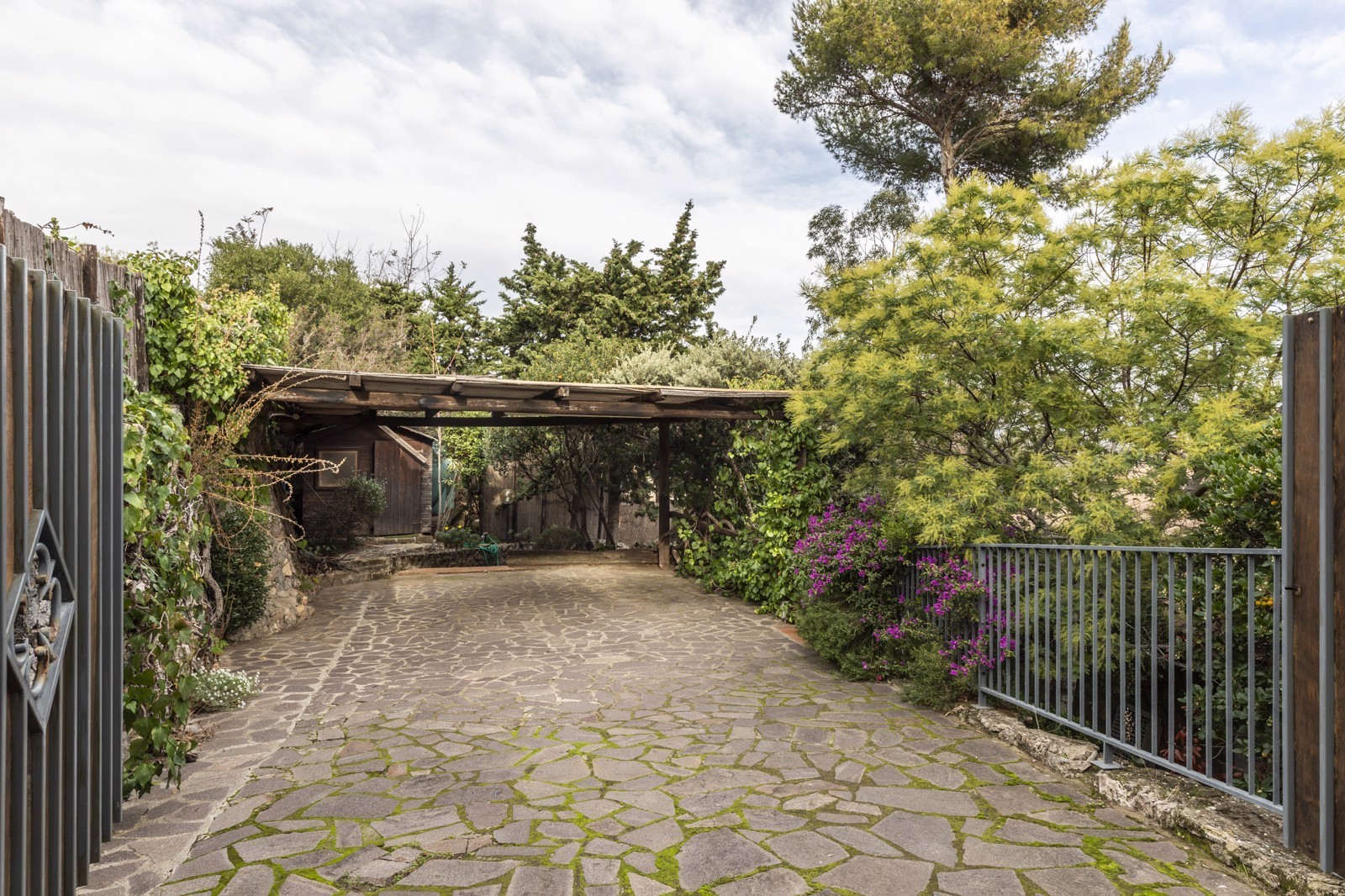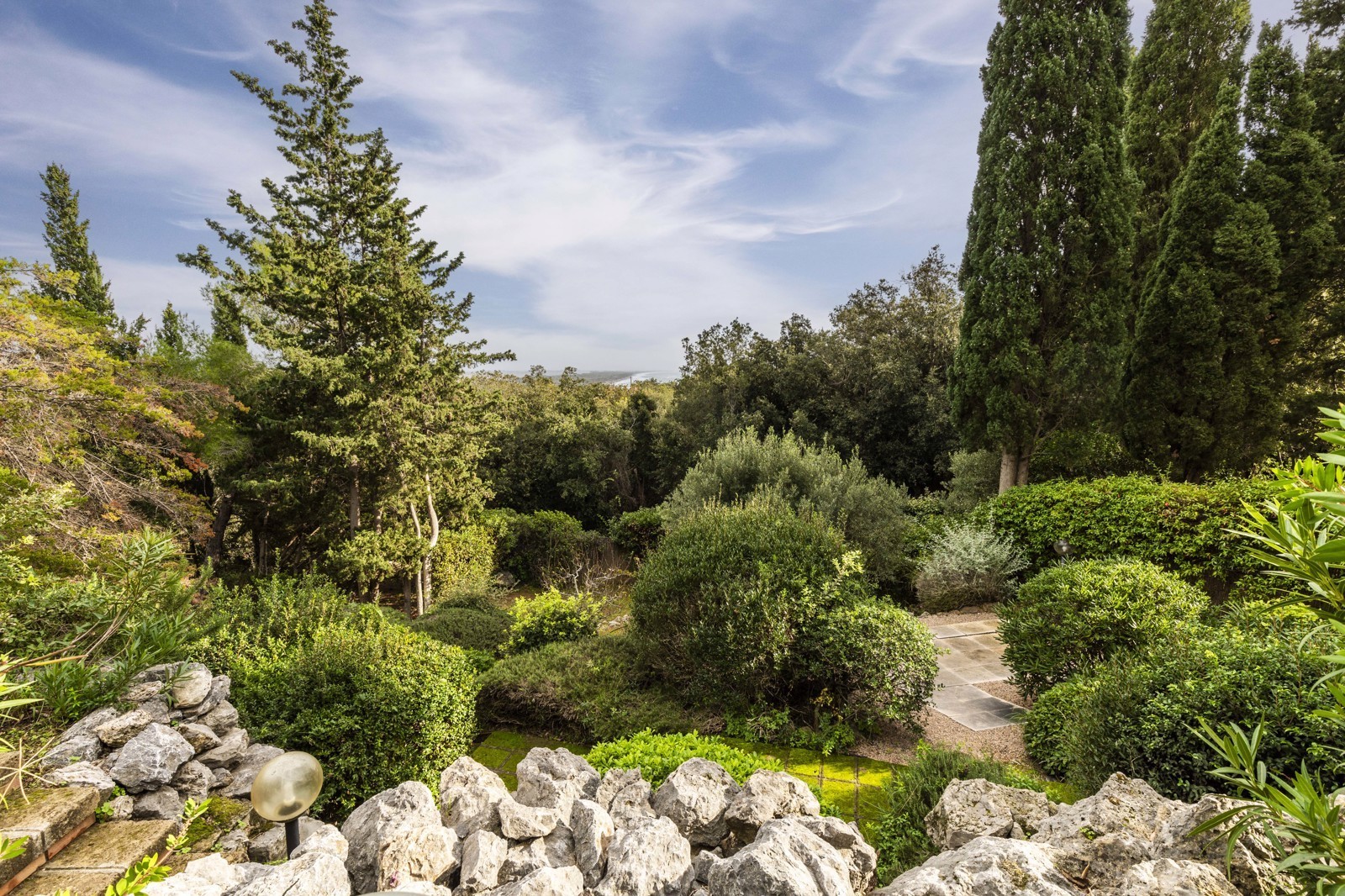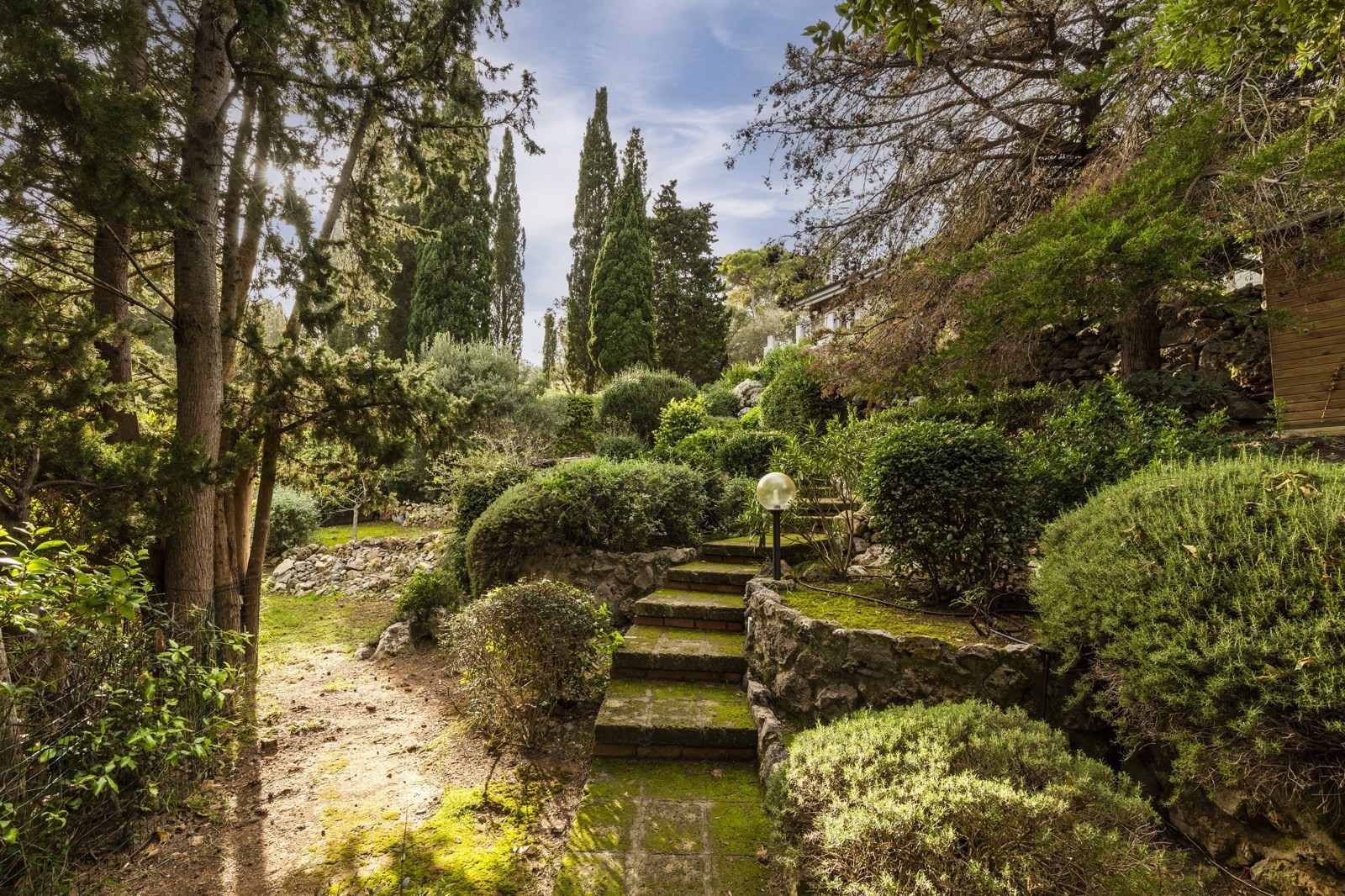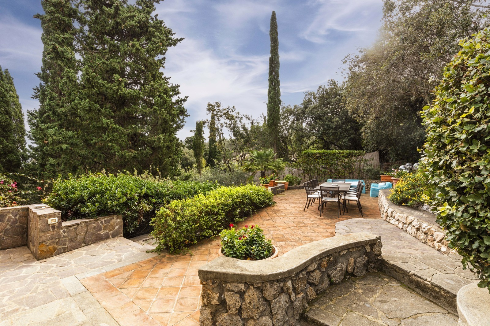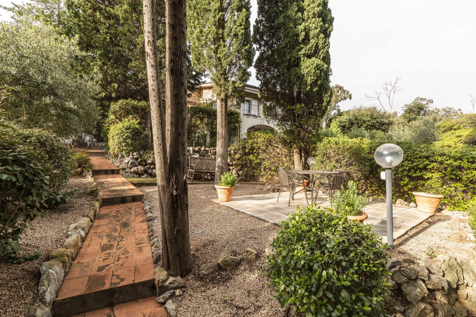 The villa is surrounded by its wonderful garden formed by large green terraces. There are many tall trees and hedges with colourful and fragrant flowers. You can stroll through the park along stone walkways that lead to a paved area, perfect for dining and enjoying aperitifs, comfortably seated around a table or on the many sofas that the area can accommodate.