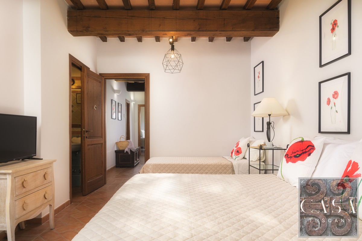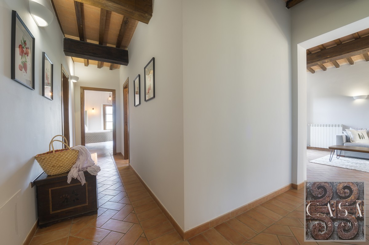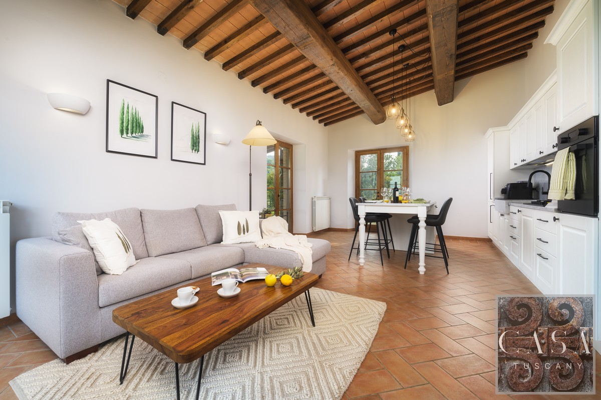 Within the peace and beauty of the Tuscan countryside, this refined 100 sqm ground floor apartment is part of a picturesque borgo made up of only nine units.