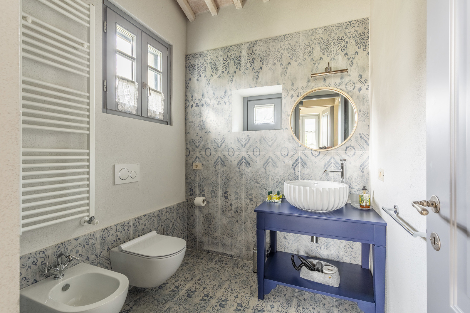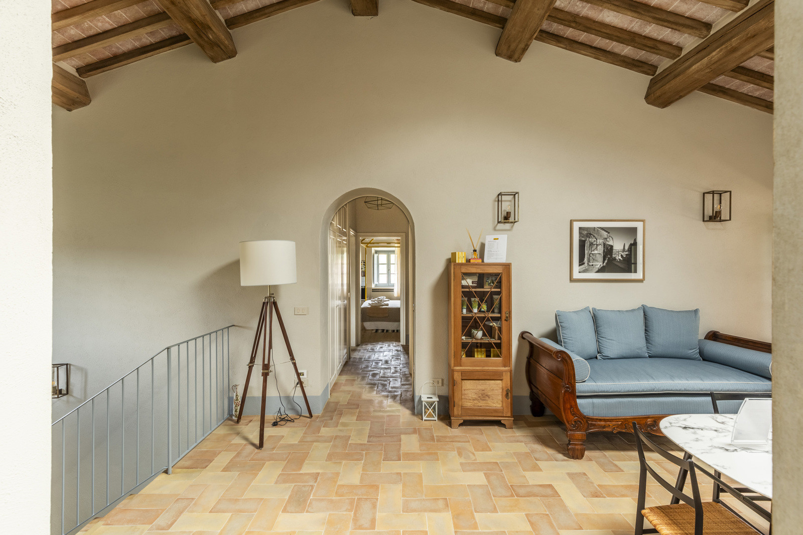 On the second floor, accessible both by an external stone staircase and internal staircase, an’additional living room connects the five beautiful bedrooms, each with its own bathroom.