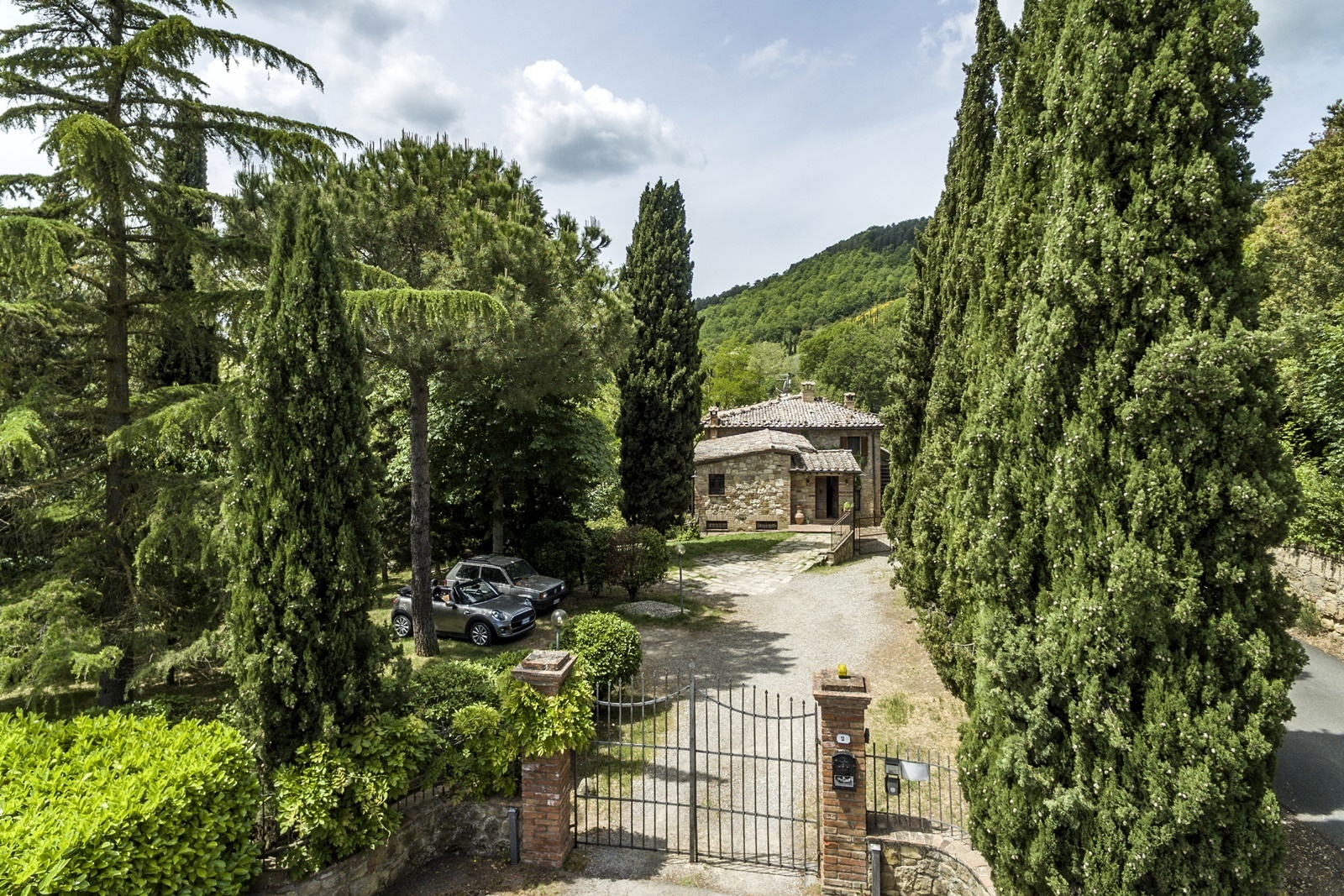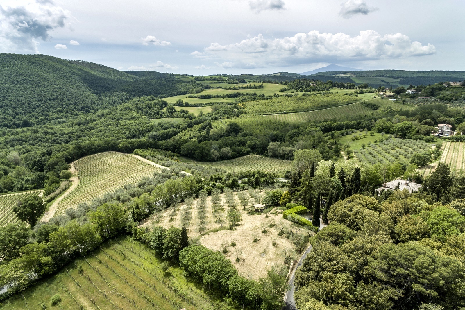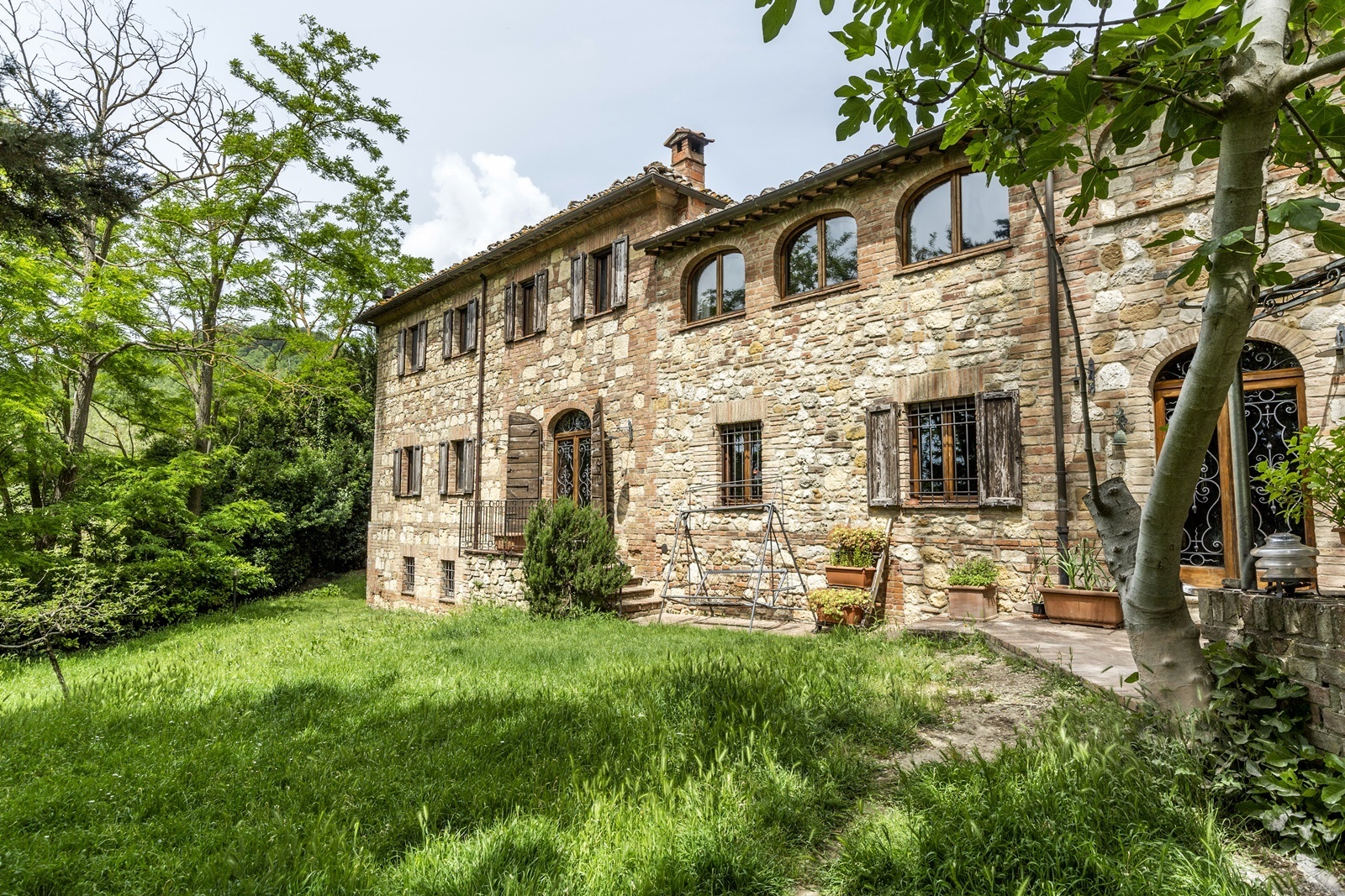 in an easily accessible position near Montepulciano, the completely fenced property is accessed via two independent entrances equipped with automatic gates. The property includes a garden with an olive grove of about 4,500 square meters.