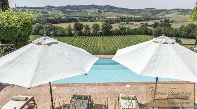 The property is immersed in the beautiful countryside of Montepulciano in a dominant position in the hills of the Val di Chiana. Recognized throughout the world thanks to the richness of its territory with its vineyards from which the famous Vino Nobile di Montepulciano DOCG is obtained. Particularly renowned also for the annual celebration within the walls of the historic center of Montepulciano, on the last Sunday of August, the traditional Bravio delle Botti, a scenario that sees 16 men of the 8 districts challenge each other, including; Cagnano, Collazzi, Gracciano, Le Coste, Poggiolo, San Donato, Talosa, Voltaia and the traditional procession of figures in the guise of ancient noble families.