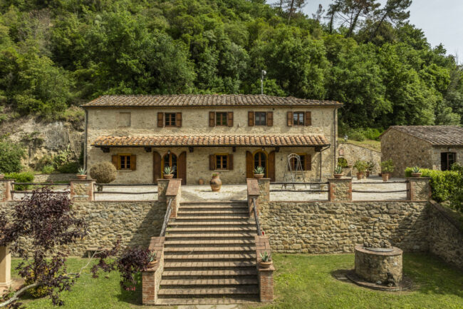 A beautiful Tuscan farmhouse with stunning views, a pool, 12 hectares of land, 4 bedrooms and 4 bathrooms.