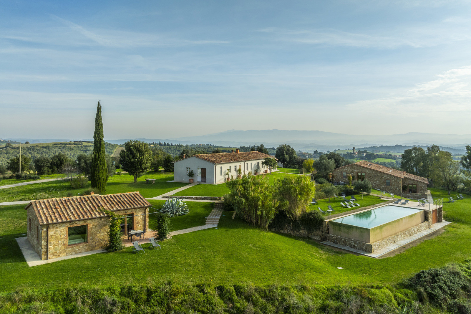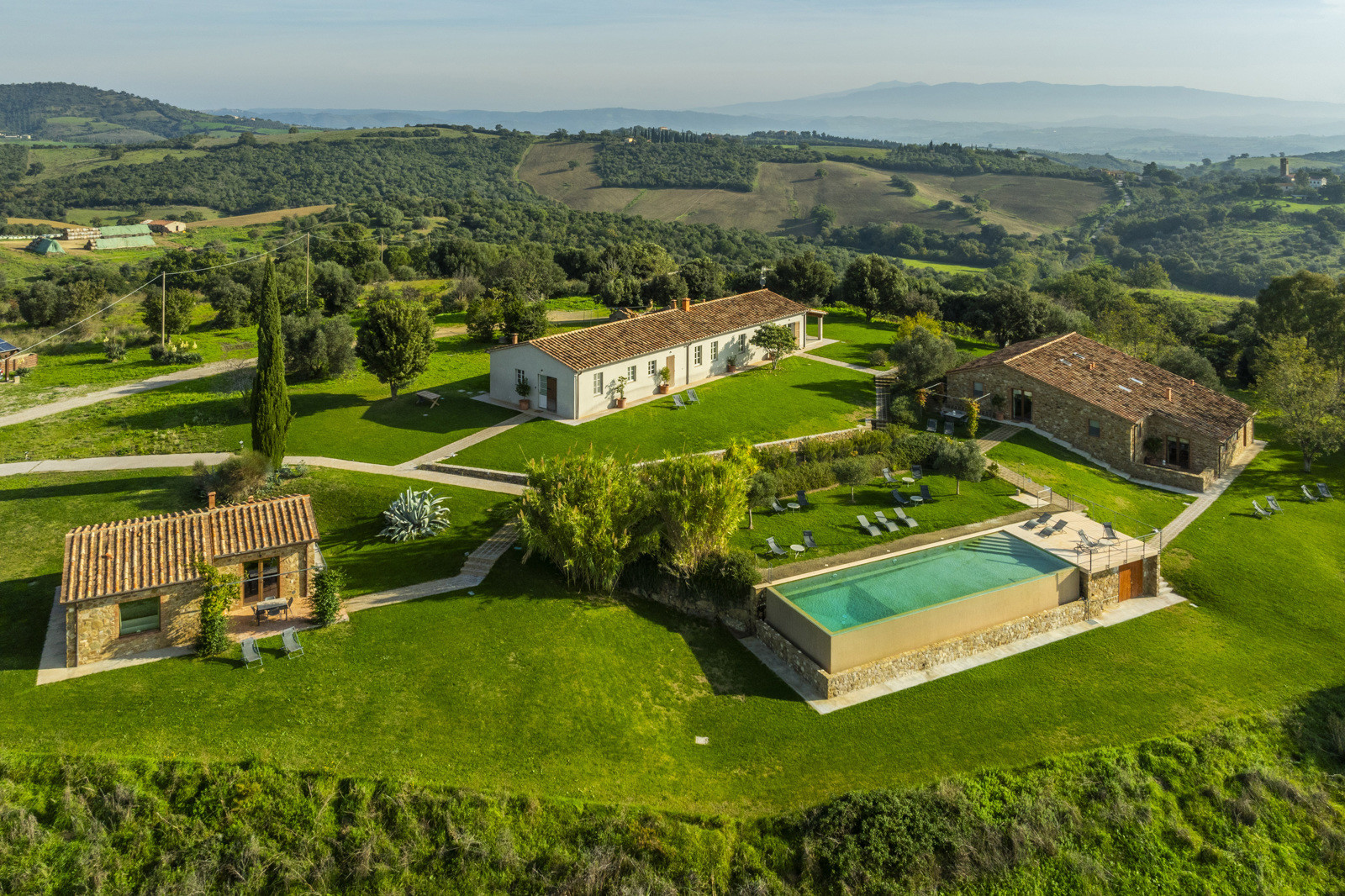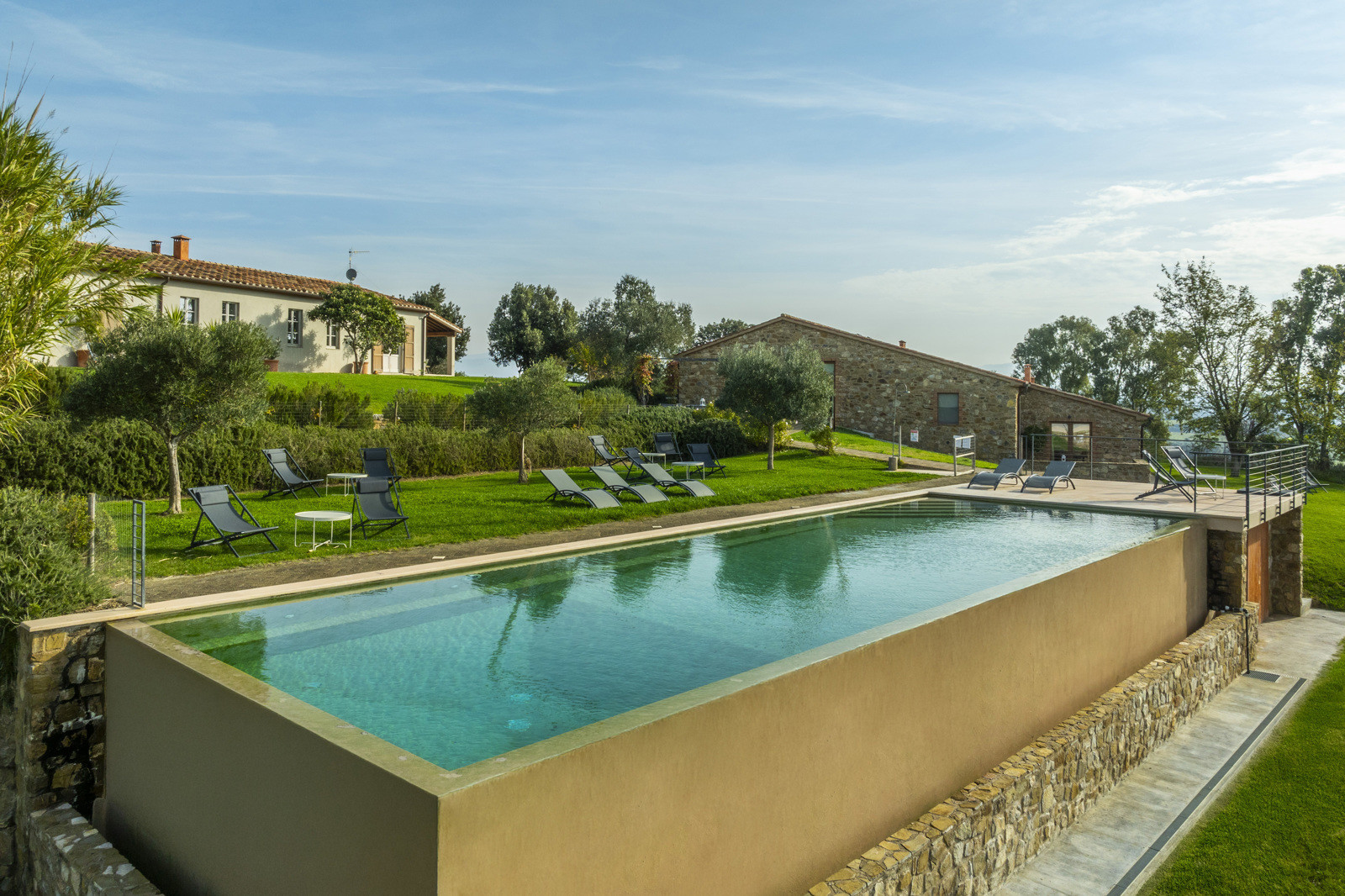 Exclusive property with amazing views and infinity pool for sale near Campagnatico, in the Grosseto province of Tuscany.