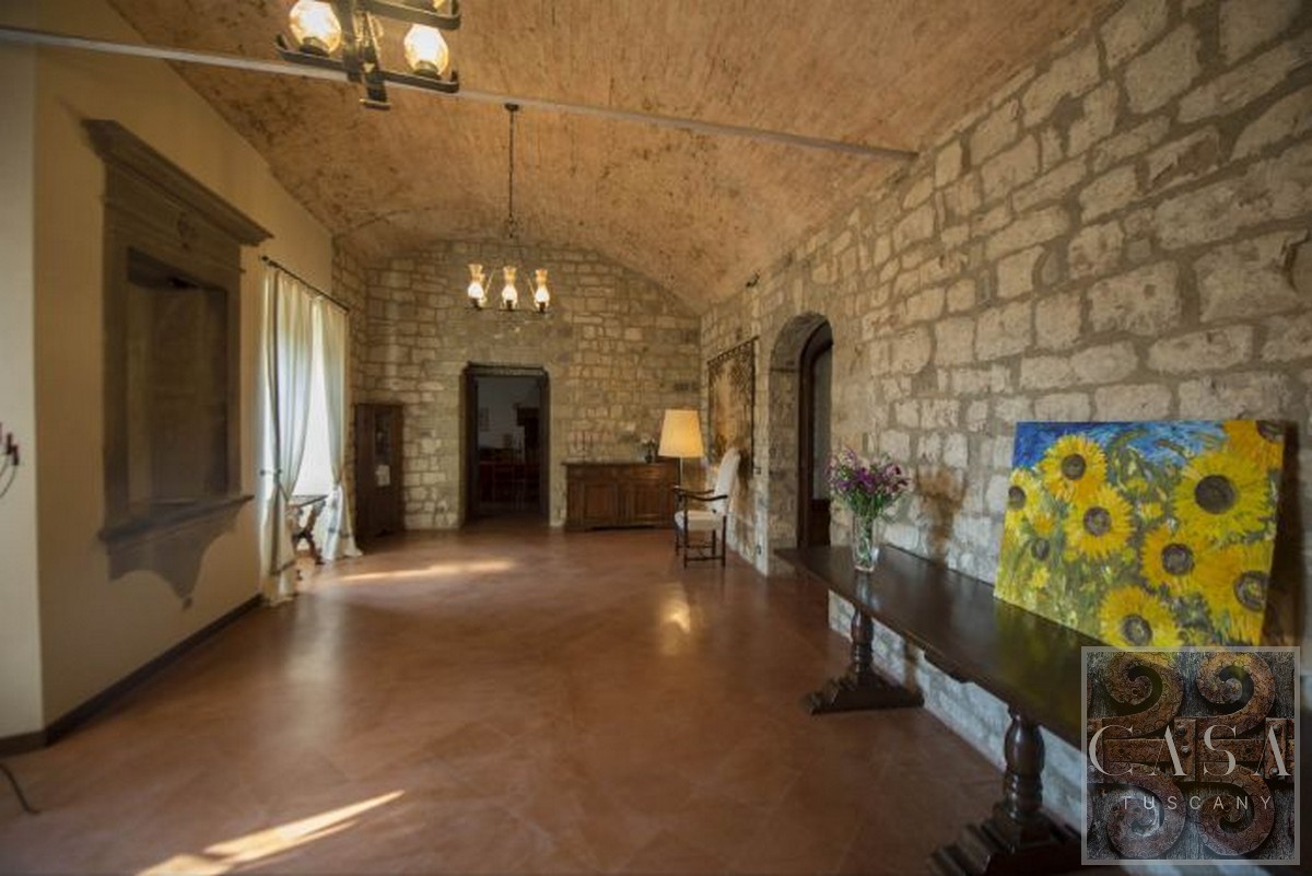 Internally, the property has exposed stone walls, brick arches, terracotta floors, ceilings with chestnut beams and terracotta tiles, while externally it is characterized by stone and brick walls, chestnut wood window frames (thermally insulated) with internal Tuscan shutters.