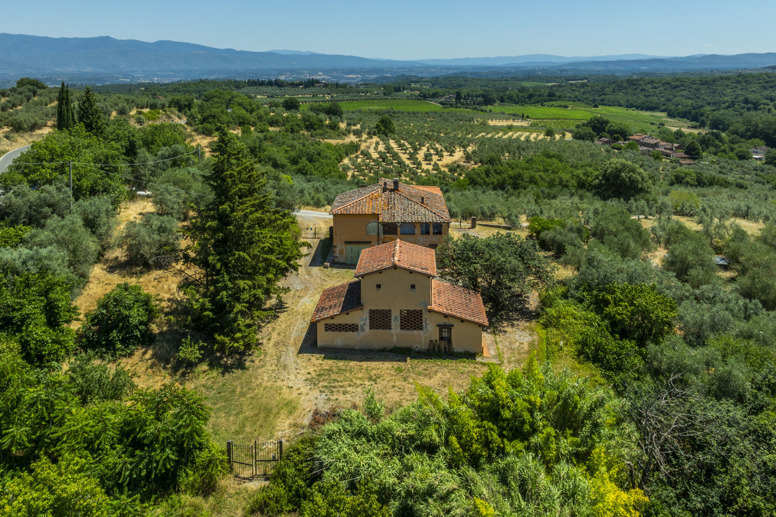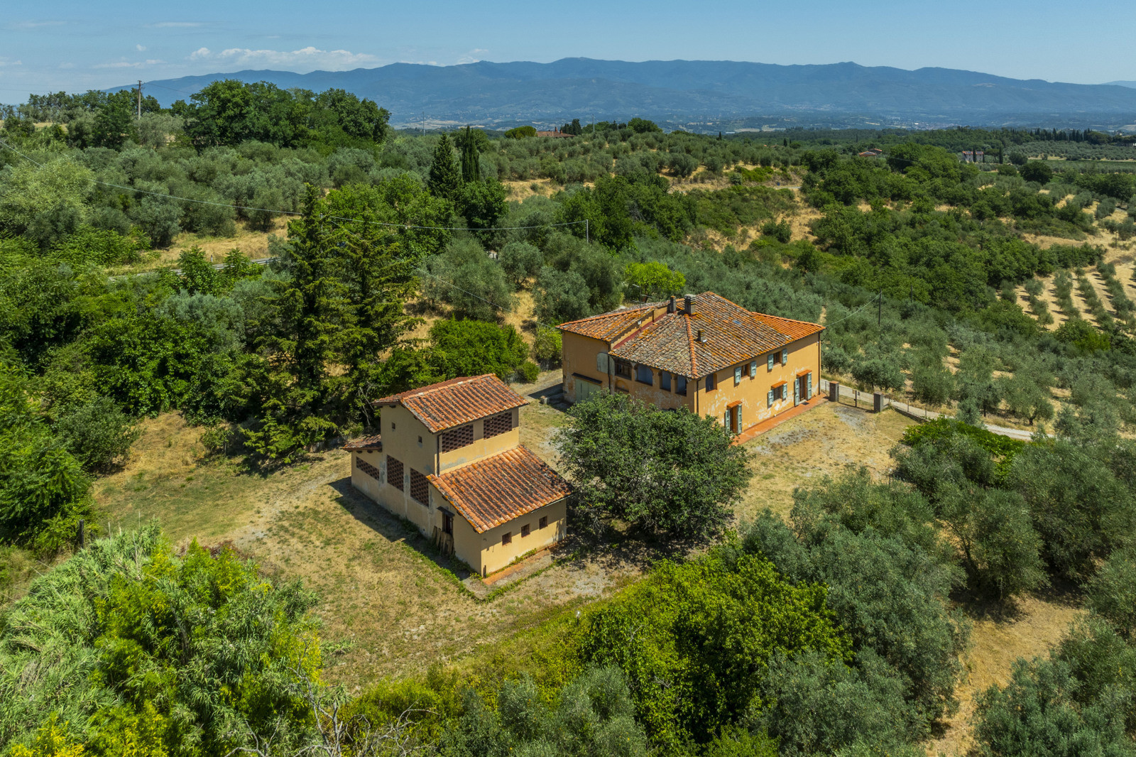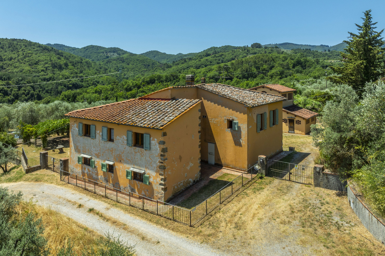 Near Cavriglia, in the Arezzo province, this large residential and agricultural complex is surrounded by greenery and consists of a house of about 215 sqm, annexes, a wood-burning oven and a terrace.