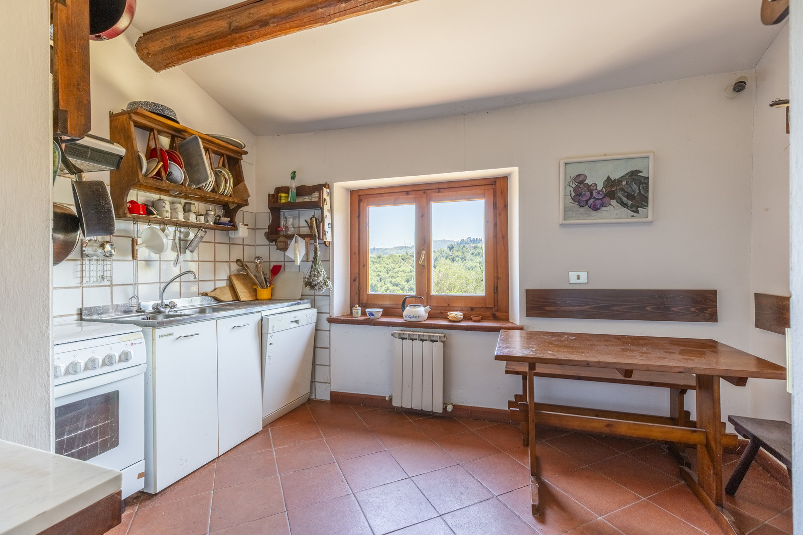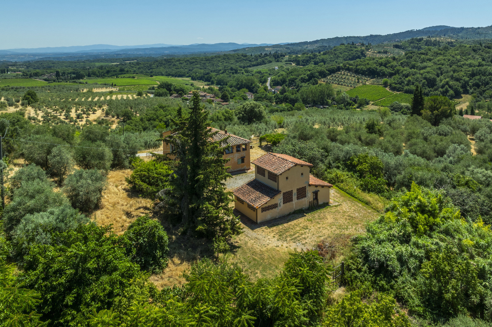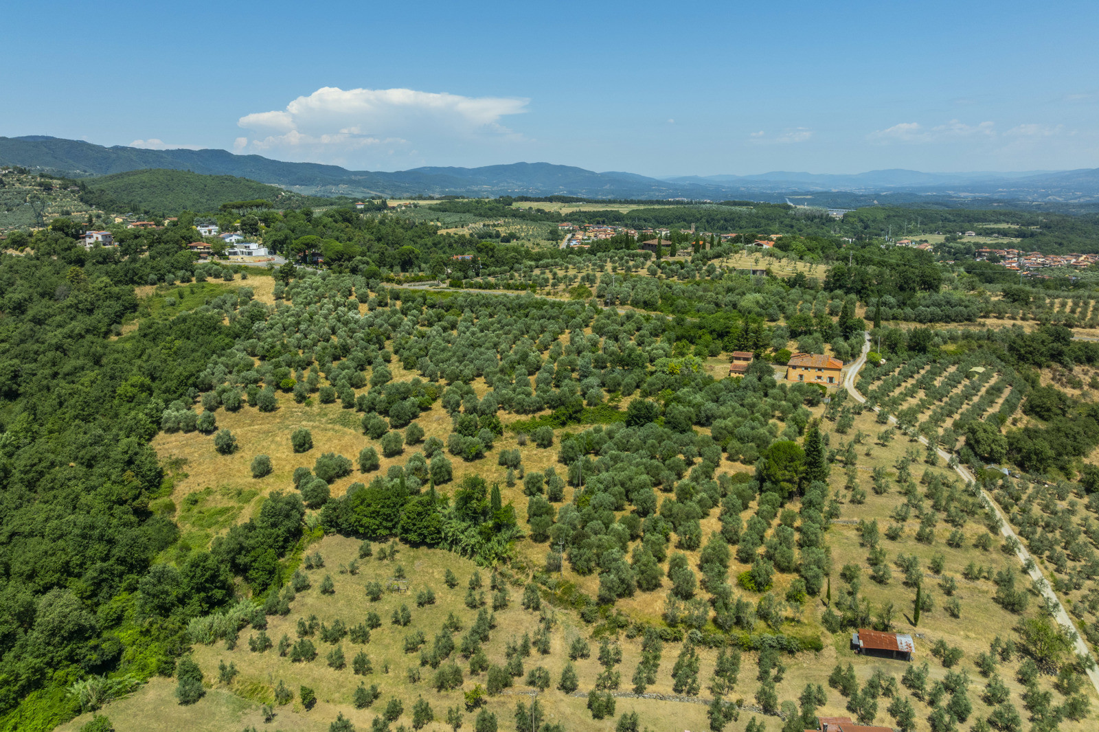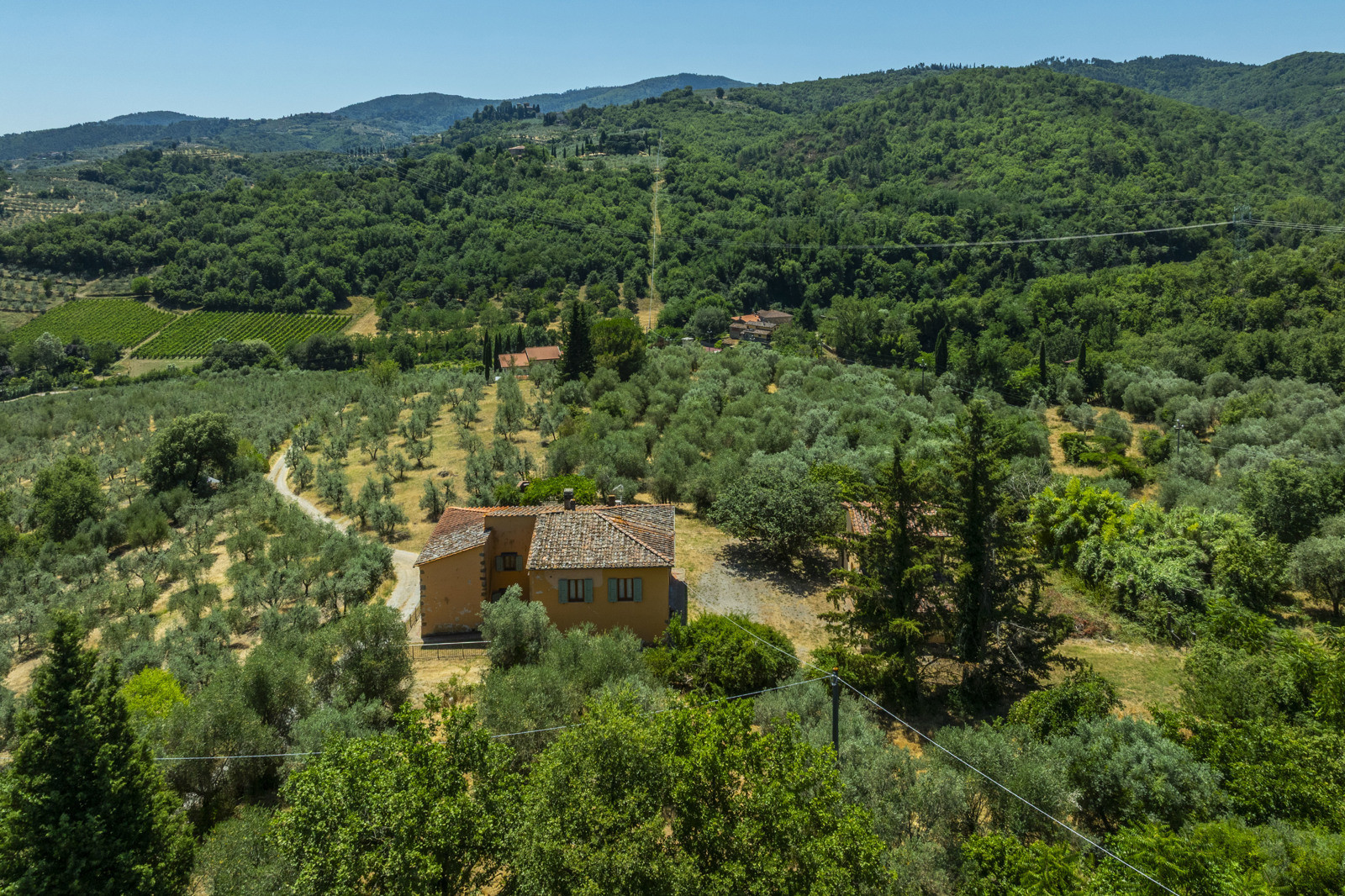 Near Cavriglia, in the Arezzo province, this large residential and agricultural complex is surrounded by greenery and consists of a house of about 215 sqm, annexes, a wood-burning oven and a terrace.
