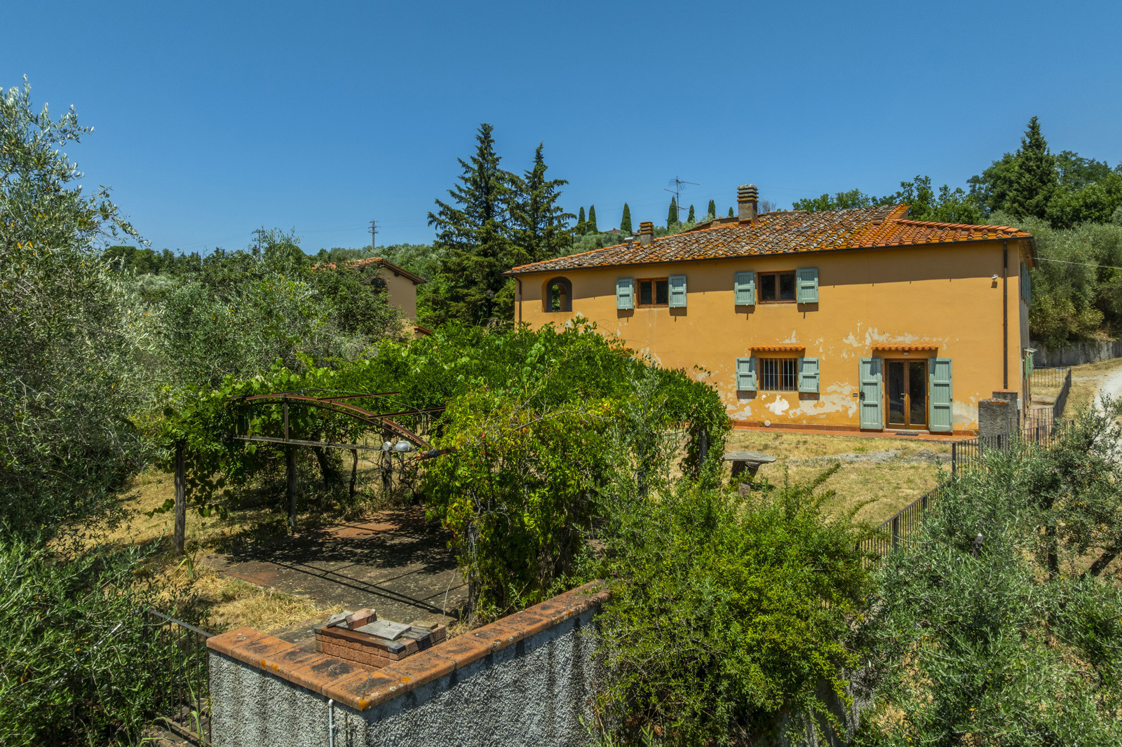 The property is completed by a shed, agricultural storage, a pergola, a fenced garden, an olive grove and woods. Ideal for those seeking tranquility, space and contact with nature.