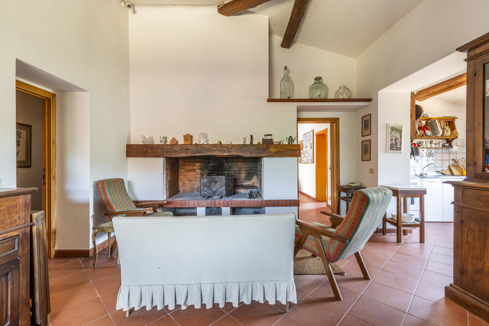 Outside, a room equipped with a wood-burning pizza oven represents an ideal space for entertaining, and is flanked by a panoramic terrace of about 6.6 sqm overlooking the surrounding countryside.