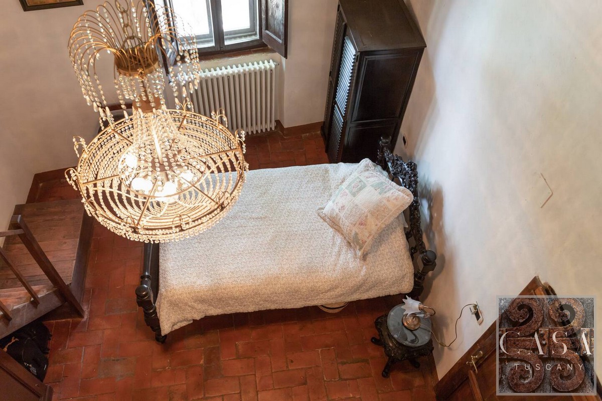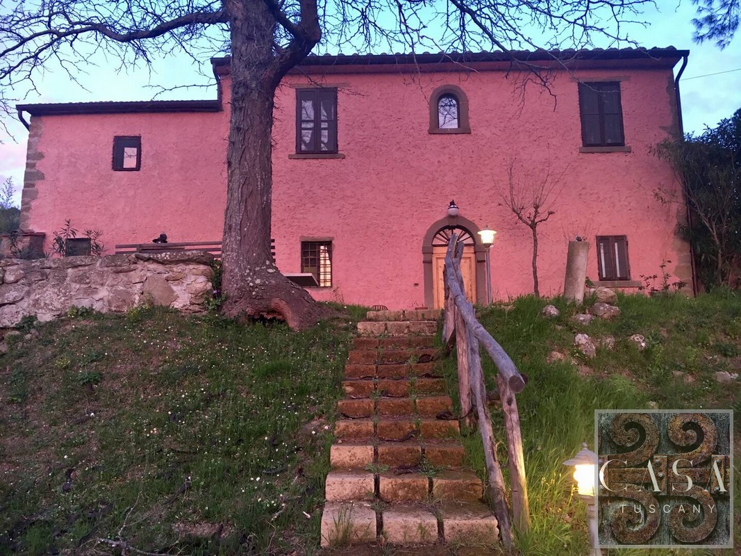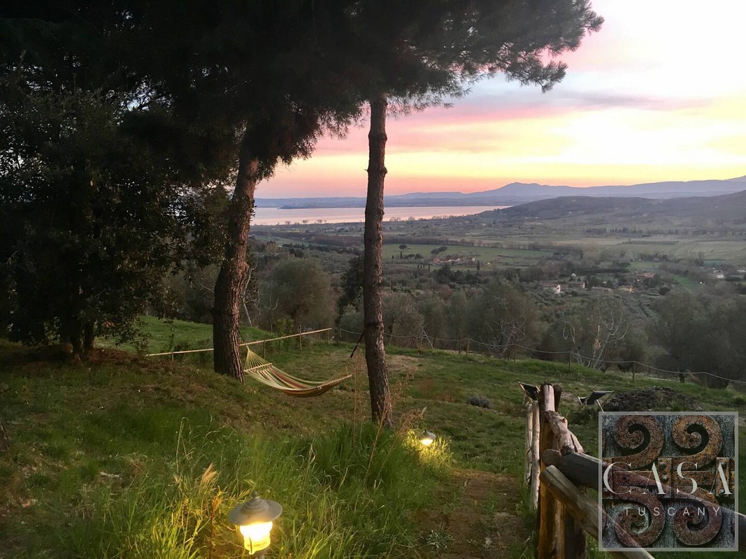 This typical Umbrian-style country villa with guest cottage, built in the early 1800s, is 350 meters a.s.l and facing south, with enchanting views of Lake Trasimeno, and sits amongst 300 olive trees, some centuries old.