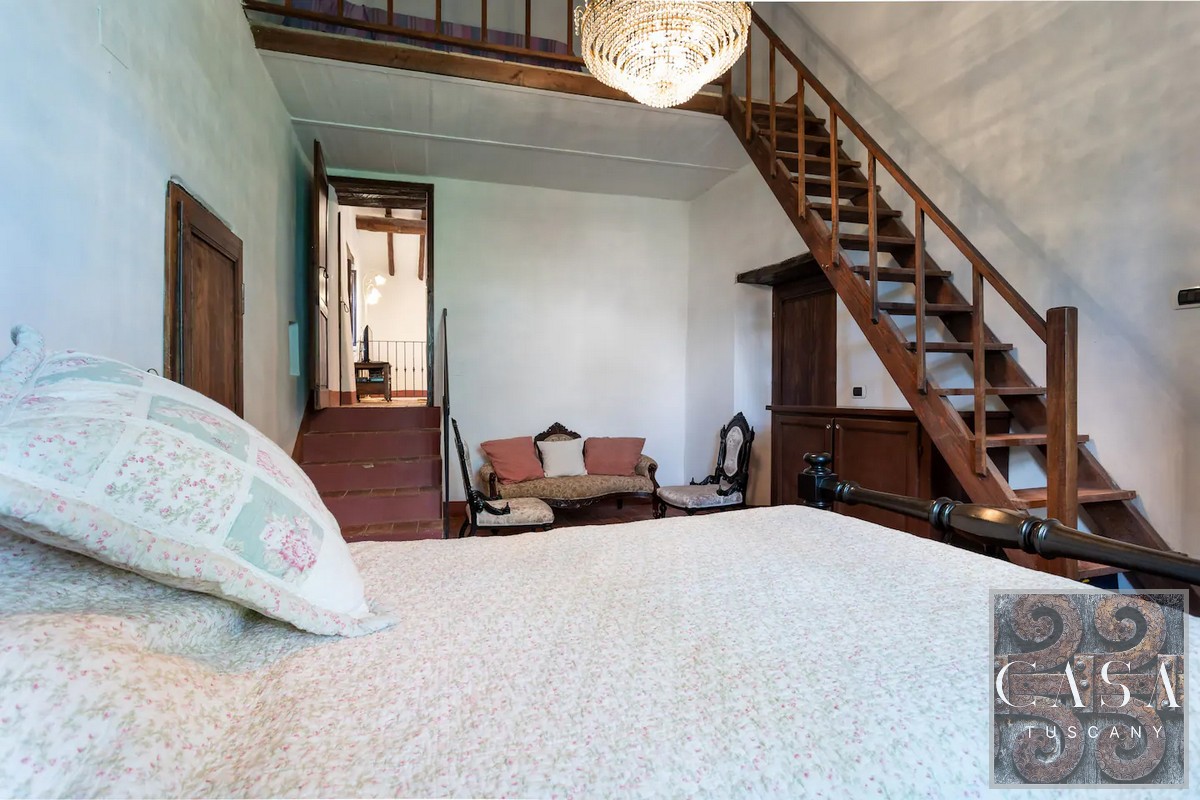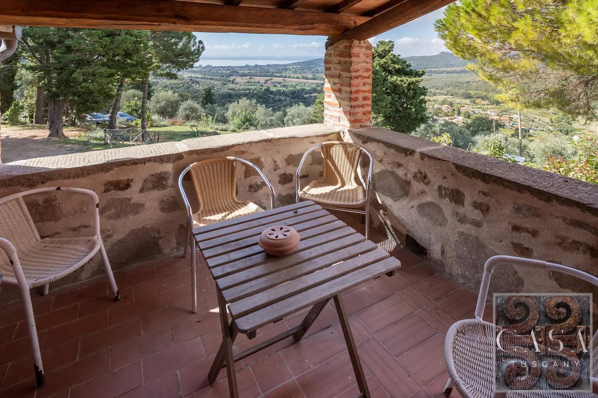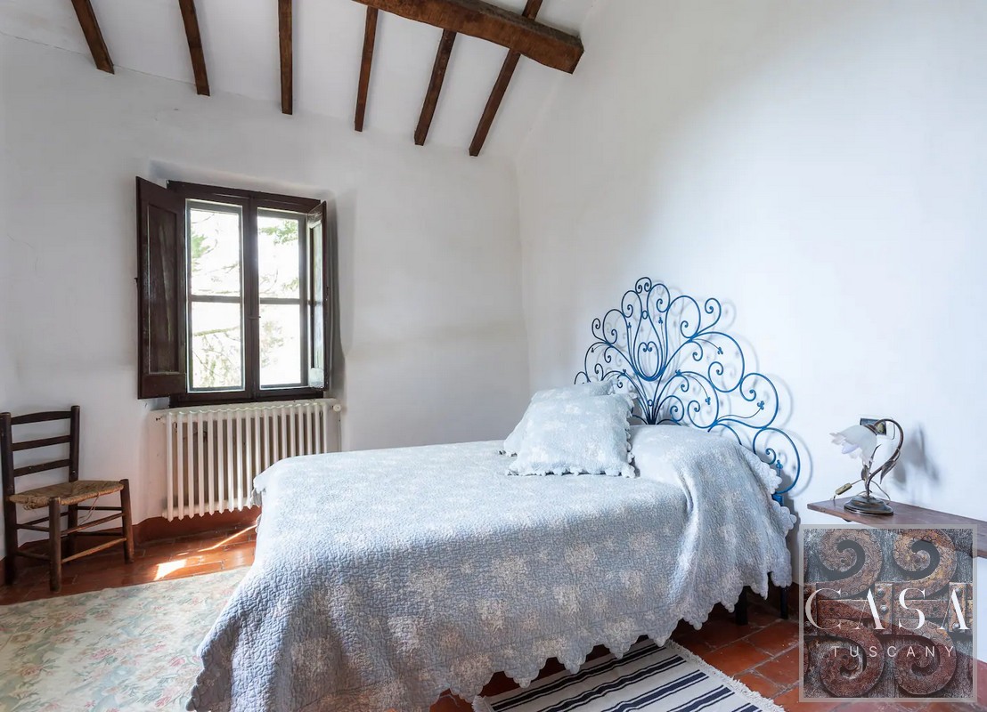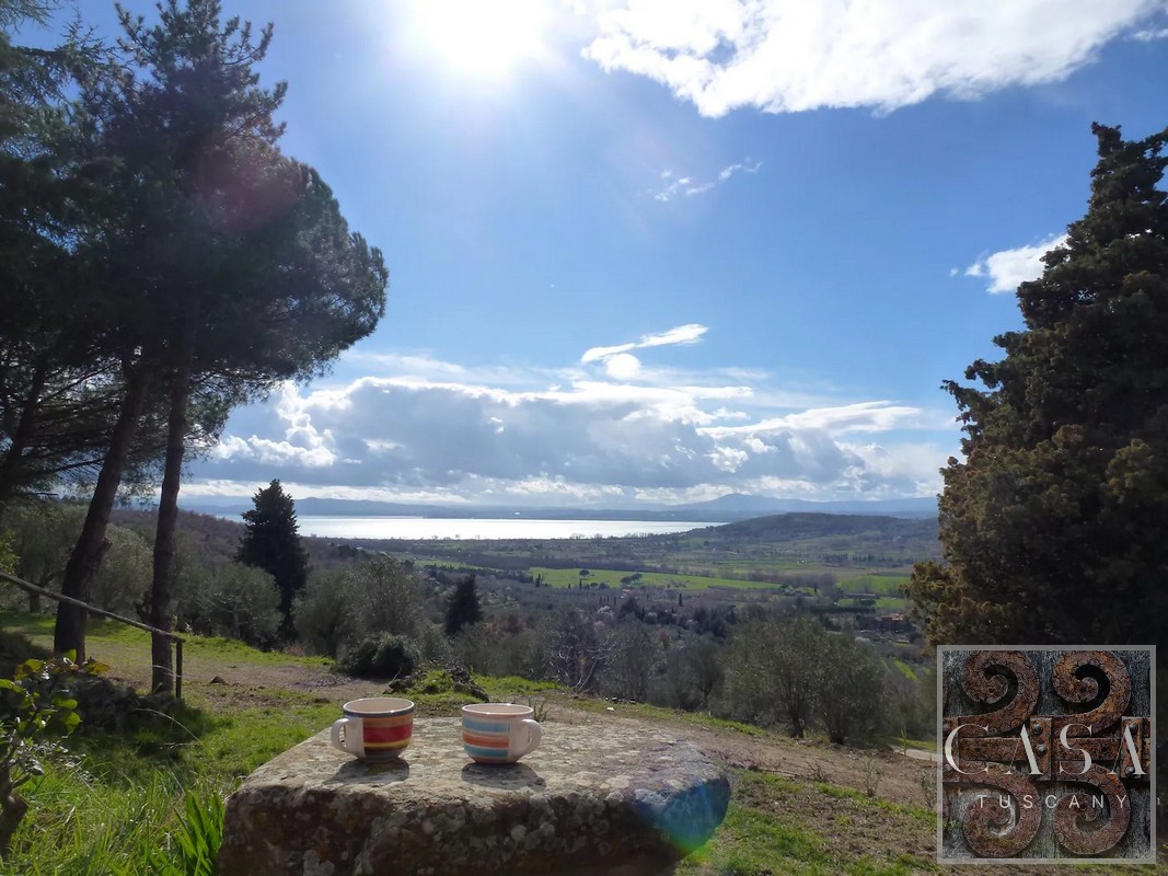 It is a traditional rustic-style villa with spectacular views of Lake Trasimeno, on the border with Tuscany, and just 15 km from Cortona.