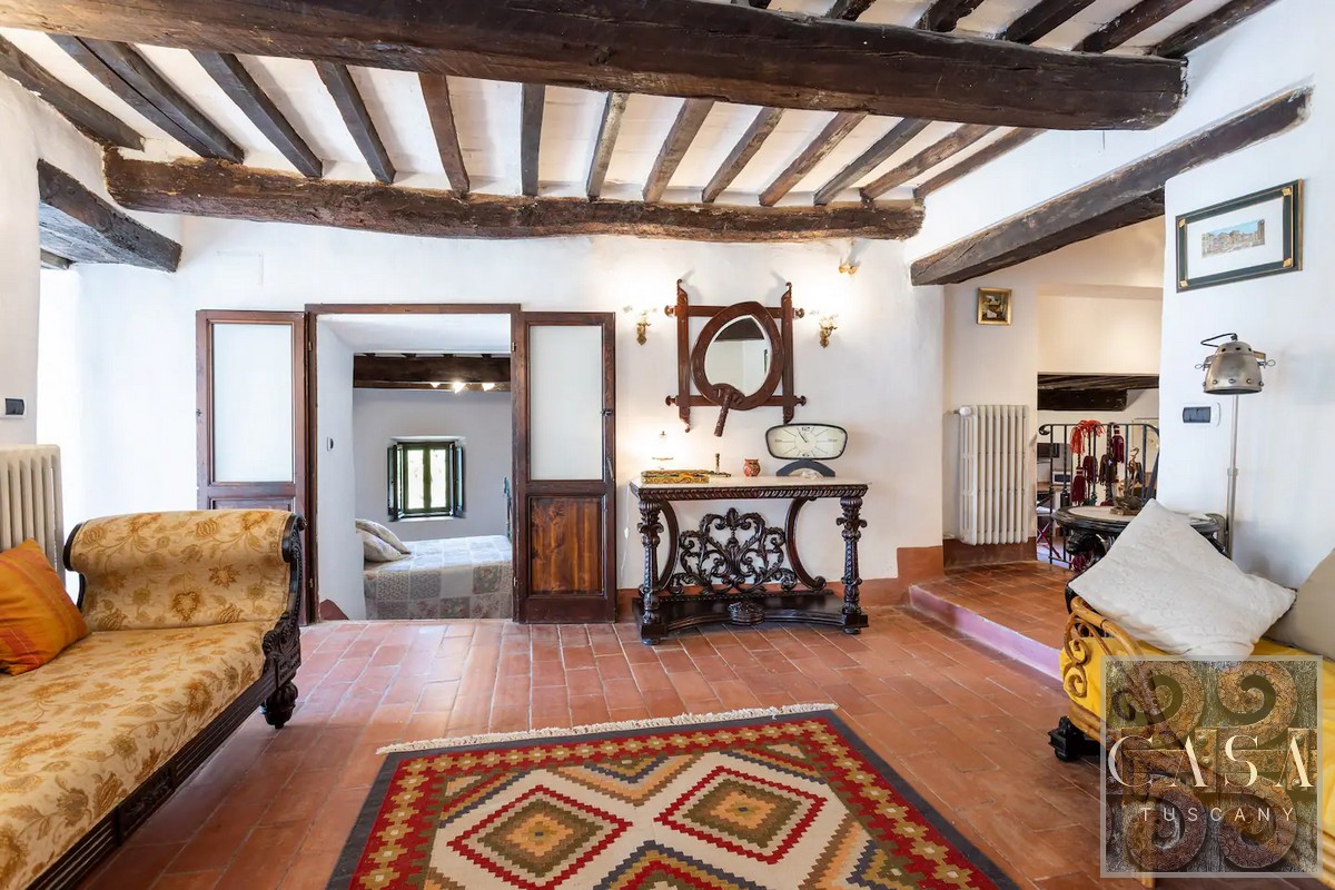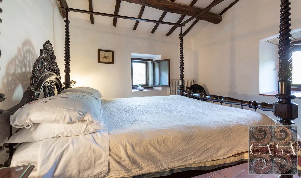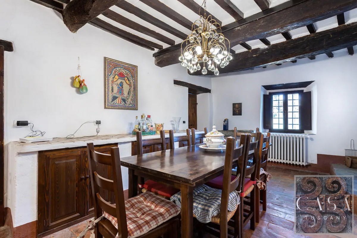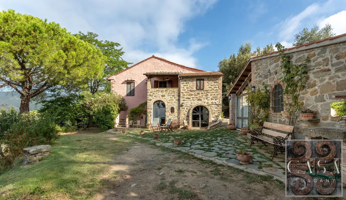 It is a traditional rustic-style villa with spectacular views of Lake Trasimeno, on the border with Tuscany, and just 15 km from Cortona.