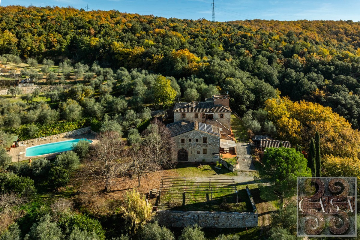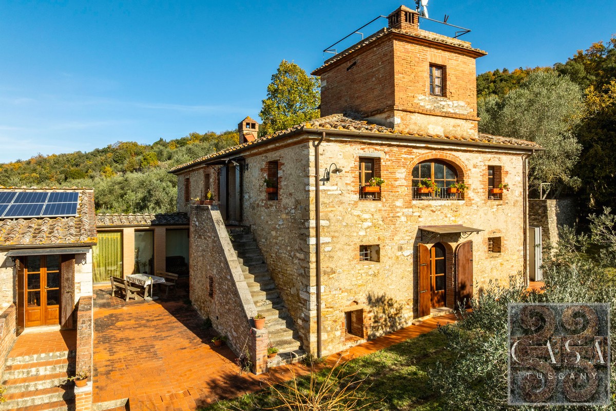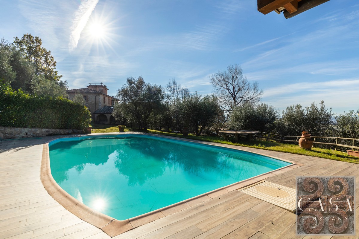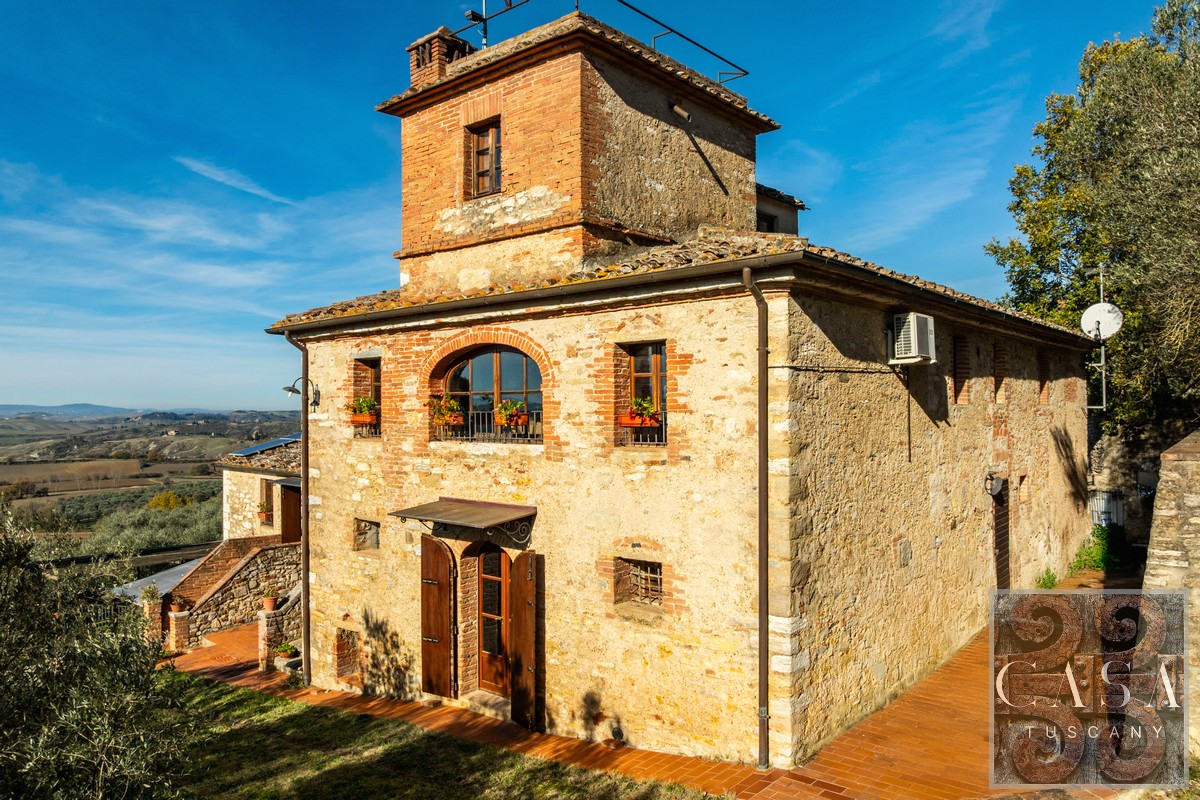 The classic Tuscan hilltop farmhouse, with a characteristic tower, and a swimming pool, a lot of land including olive grove, a guest cottage, a garage, views, original features and it’s even within walking distance of amenities!