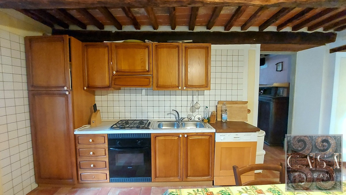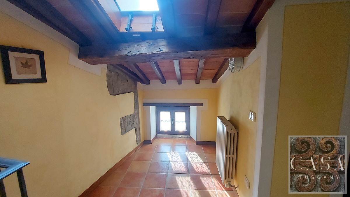The property has been renovated preserving all the original features of typical traditional Tuscan style, including terracotta porcelain tile floors, chestnut beams, terracotta roof tiles and decorative stone elements. The windows are made of chestnut wood, the roof has been insulated and waterproofed and the gutters and drainpipes are made of copper.