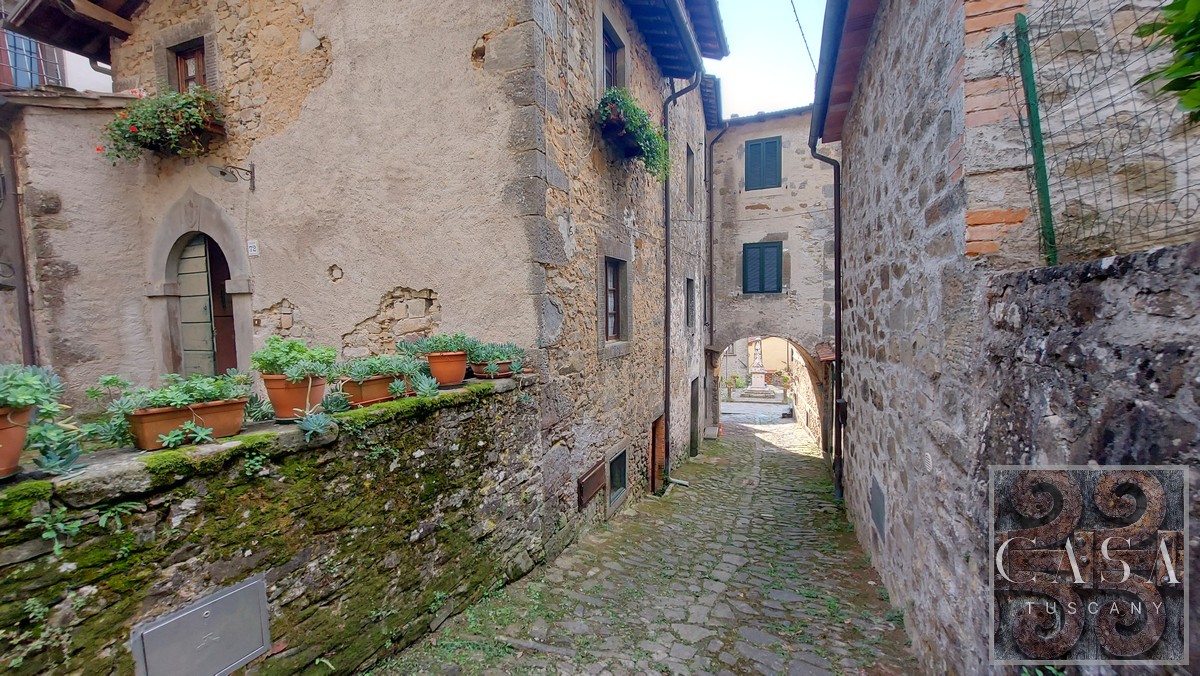 Ancient stone townhouse dating back to the 16th century, located in the heart of a characteristic medieval historic center In the hills about 5 km from Bagni di Lucca, with a shared courtyard with two other properties.