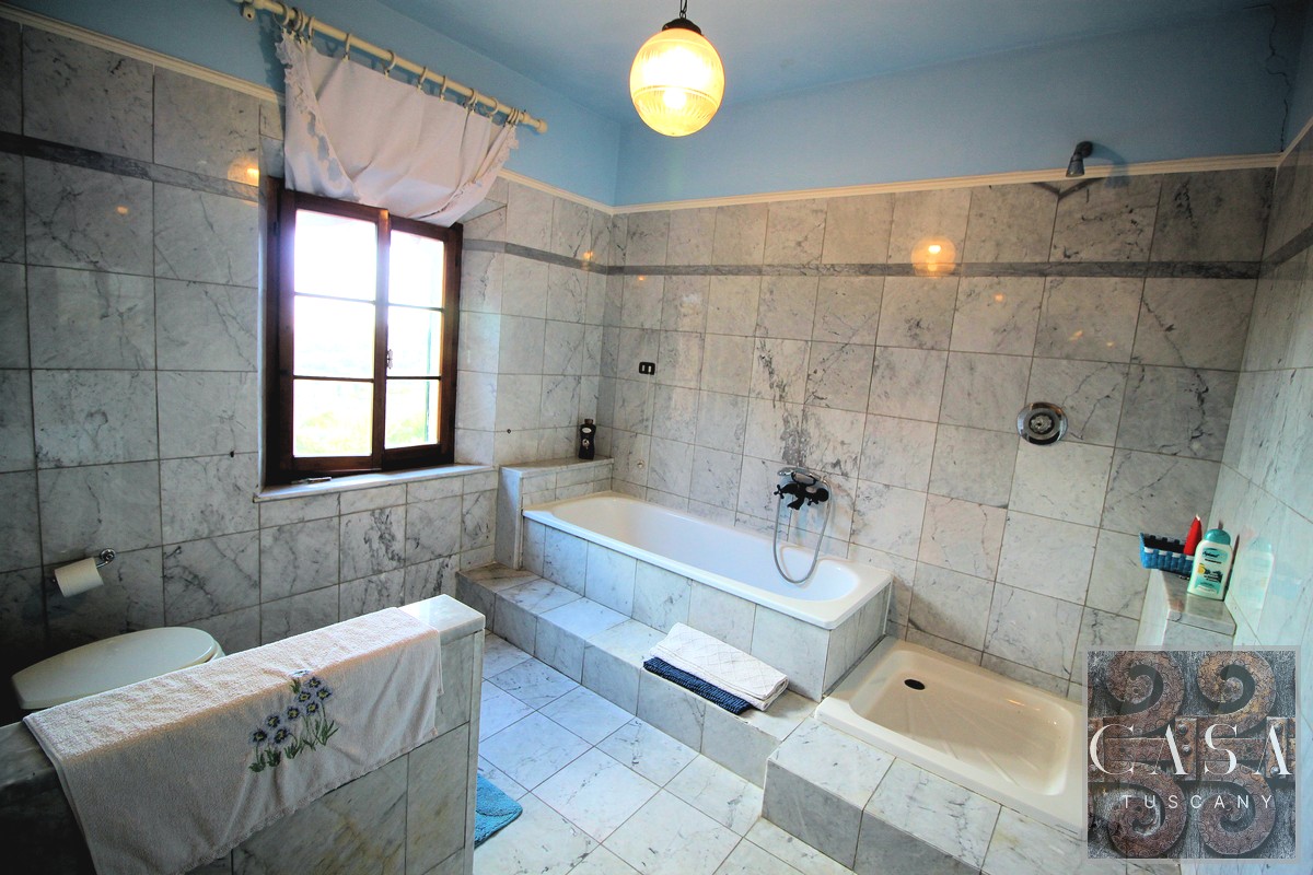 Nestled in a picturesque Tuscan hamlet close to Casciana Terme, this historic villa has 5 bedrooms, 4 bathrooms and generous living spaces. The villa is currently divided into 2 independent units but can easily be reconfigured into one large home.