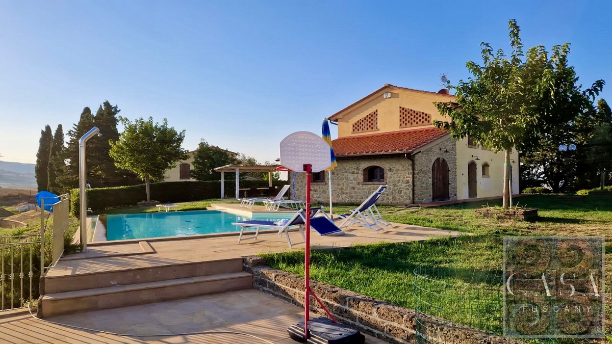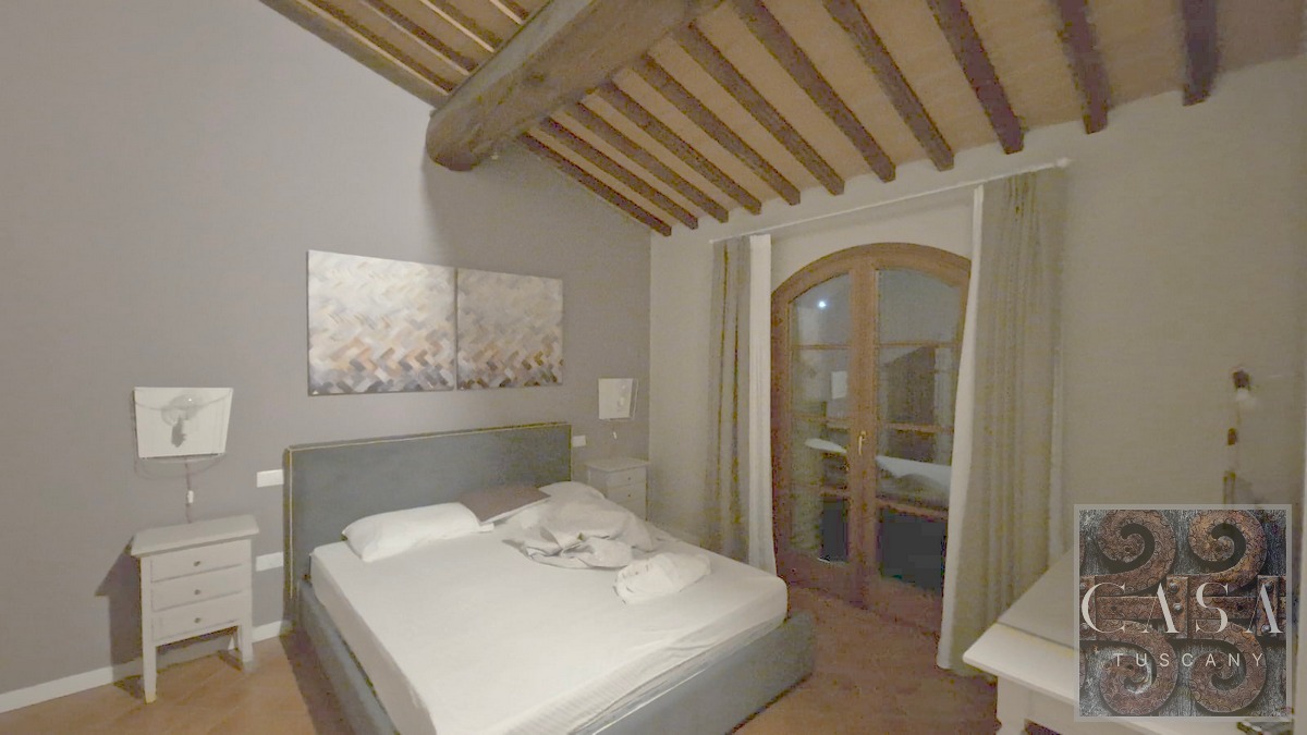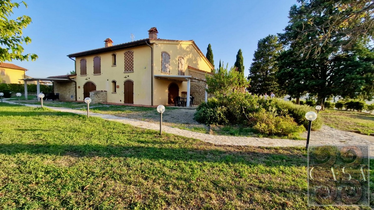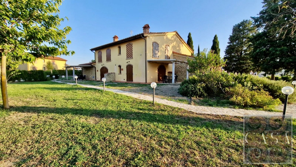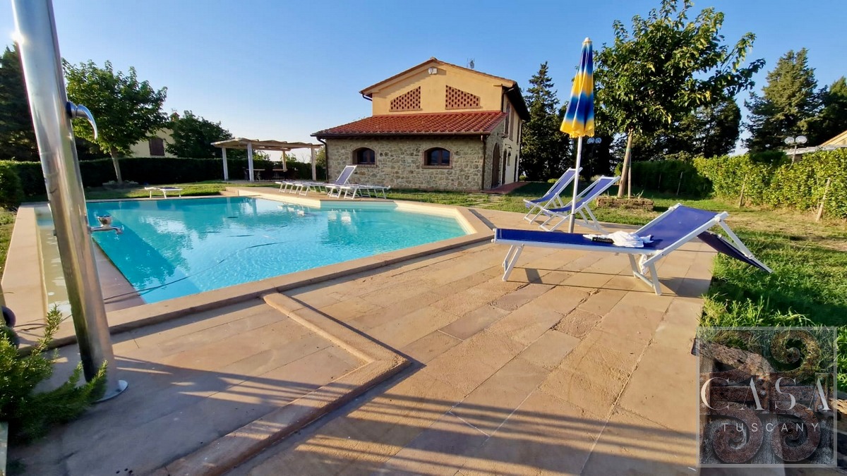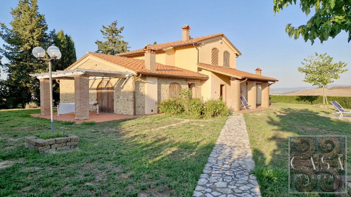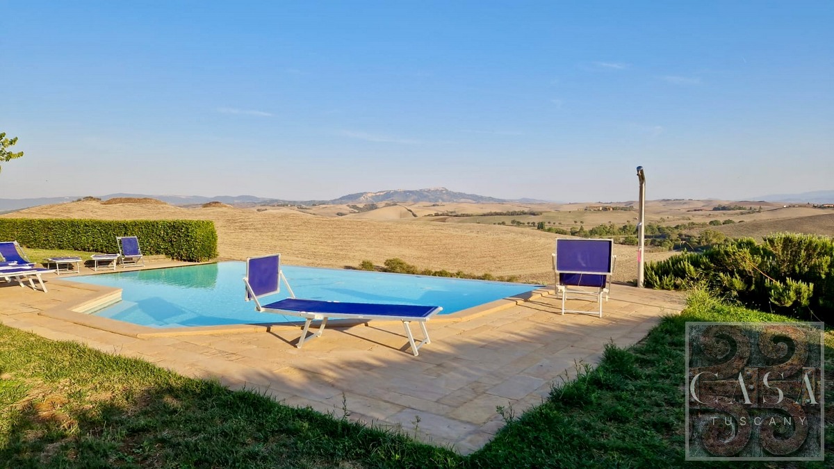 Near Lajatico, in the Pisa province of Tuscany, with 360 degree views, on a sunny dominant hill with a view of Andrea Bocelli’s famous Teatro del Silenzio, a complex of approximately 1,000 sqm in total, perfectly and finely restored in rustic Tuscan style with quality materials.