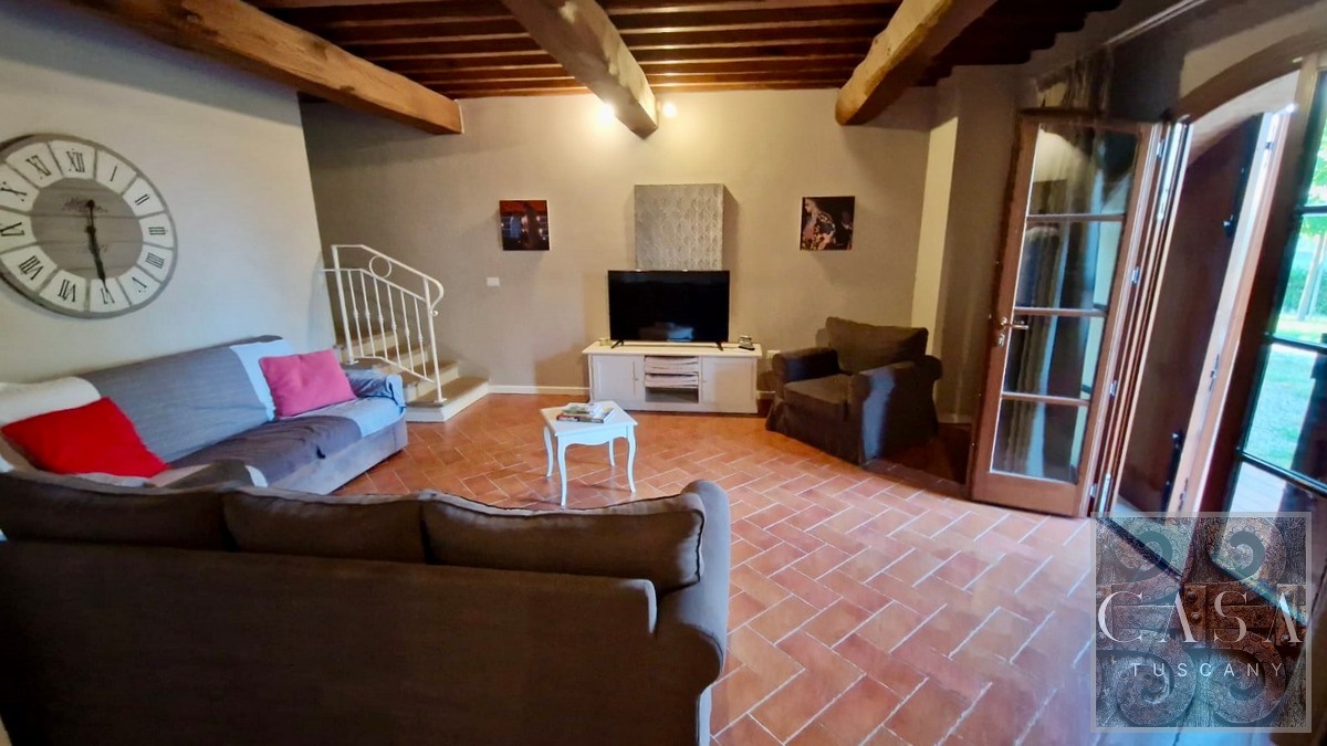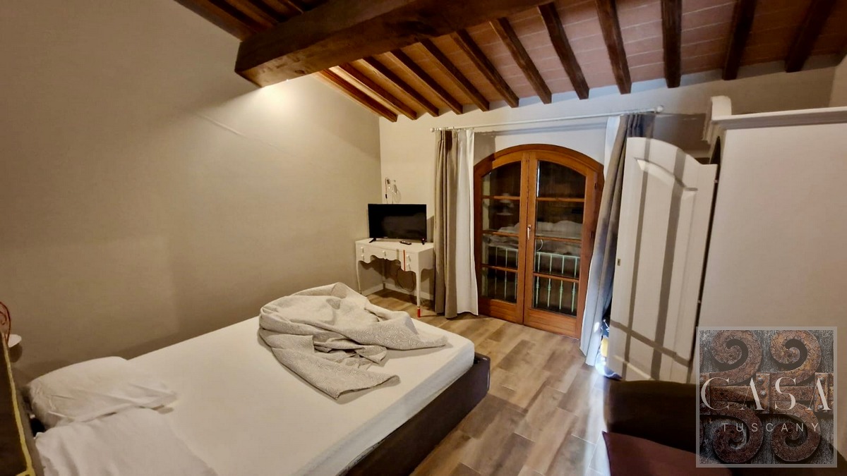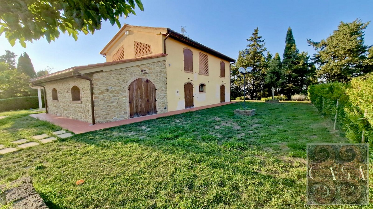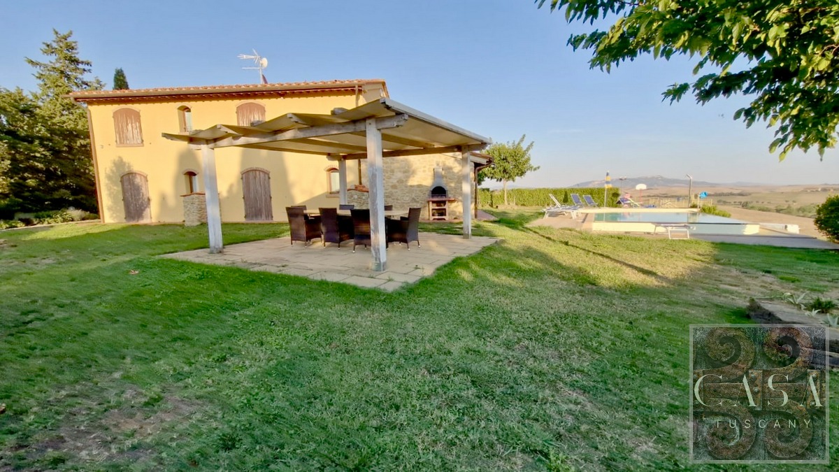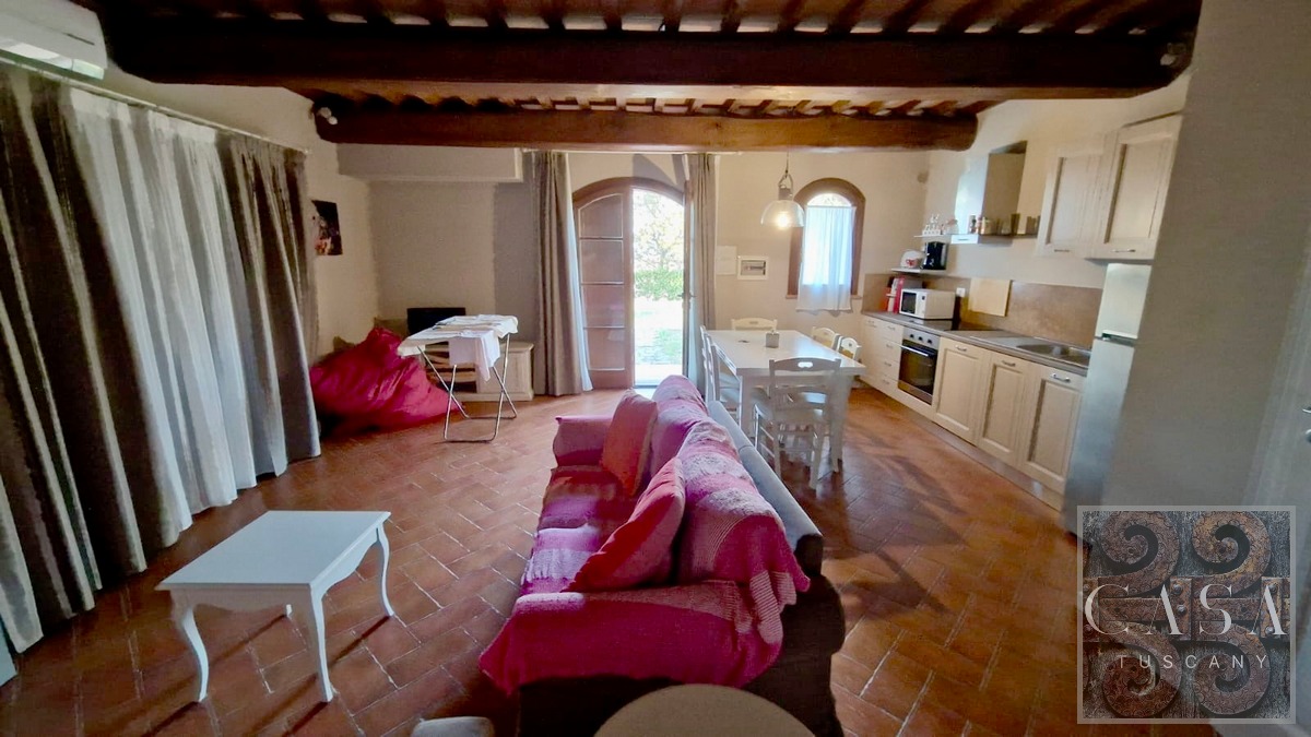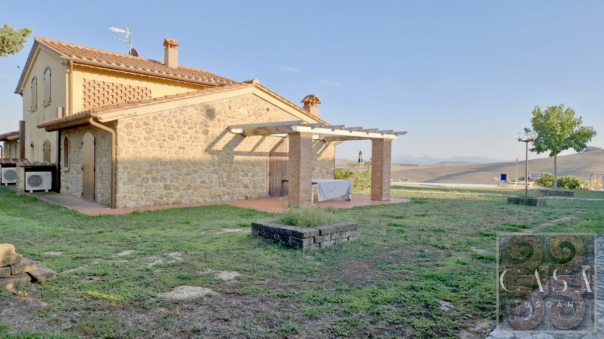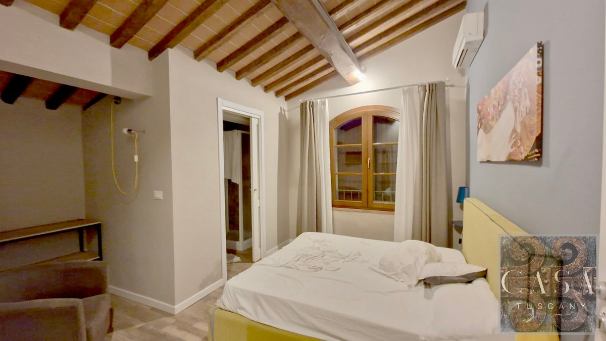 Near Lajatico, in the Pisa province of Tuscany, with 360 degree views, on a sunny dominant hill with a view of Andrea Bocelli’s famous Teatro del Silenzio, a complex of approximately 1,000 sqm in total, perfectly and finely restored in rustic Tuscan style with quality materials.