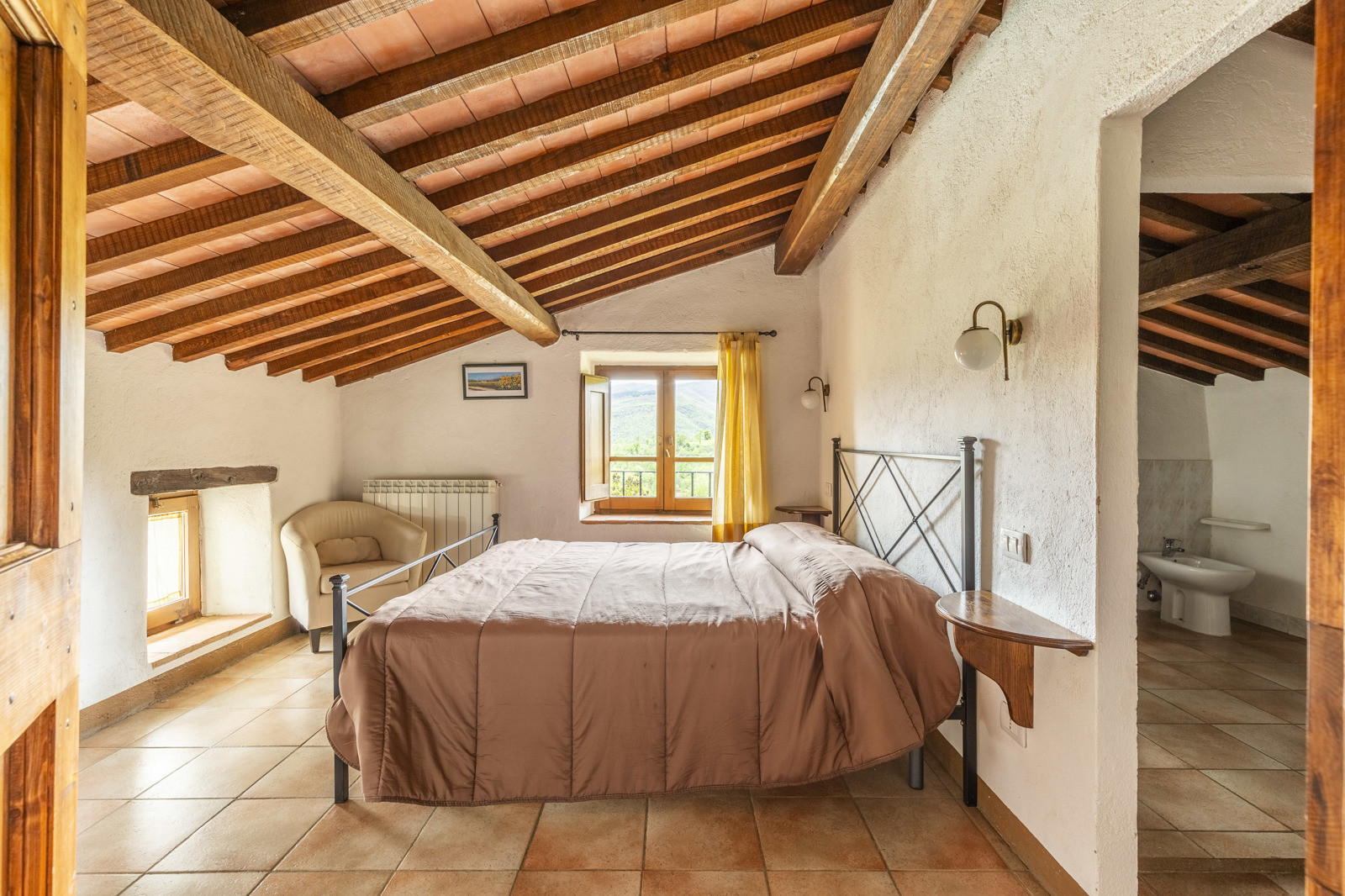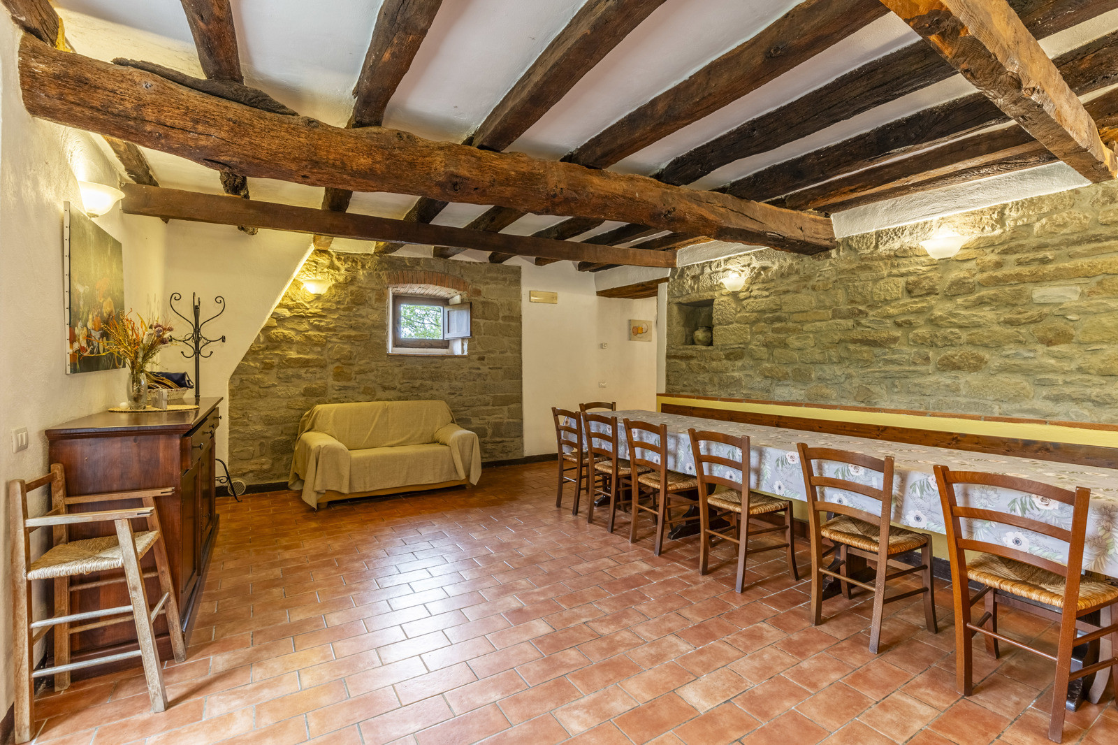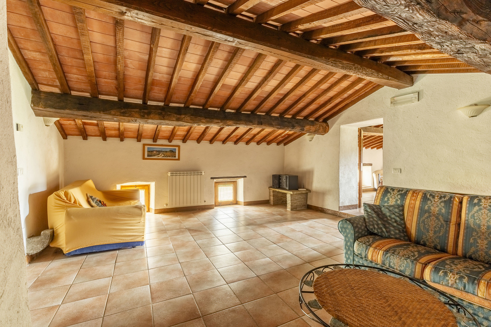 A few steps from the farmhouse is an annex of about 65 sqm on two floors used as an apartment with living area equipped with kitchenette, a bedroom and a bathroom. With external access there is also a shed, a laundry room and a wood-burning oven.