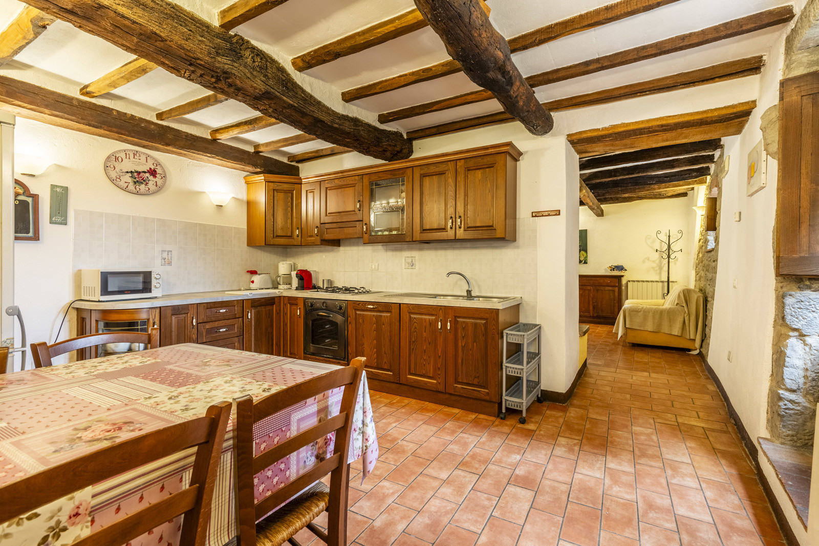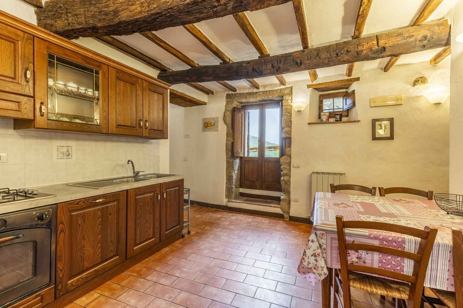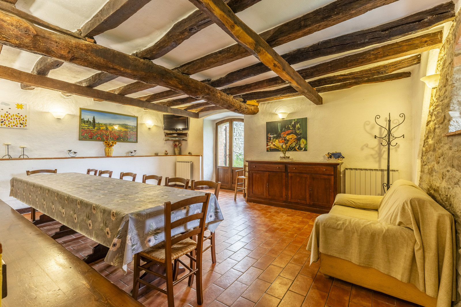 A few steps from the farmhouse is an annex of about 65 sqm on two floors used as an apartment with living area equipped with kitchenette, a bedroom and a bathroom. With external access there is also a shed, a laundry room and a wood-burning oven.