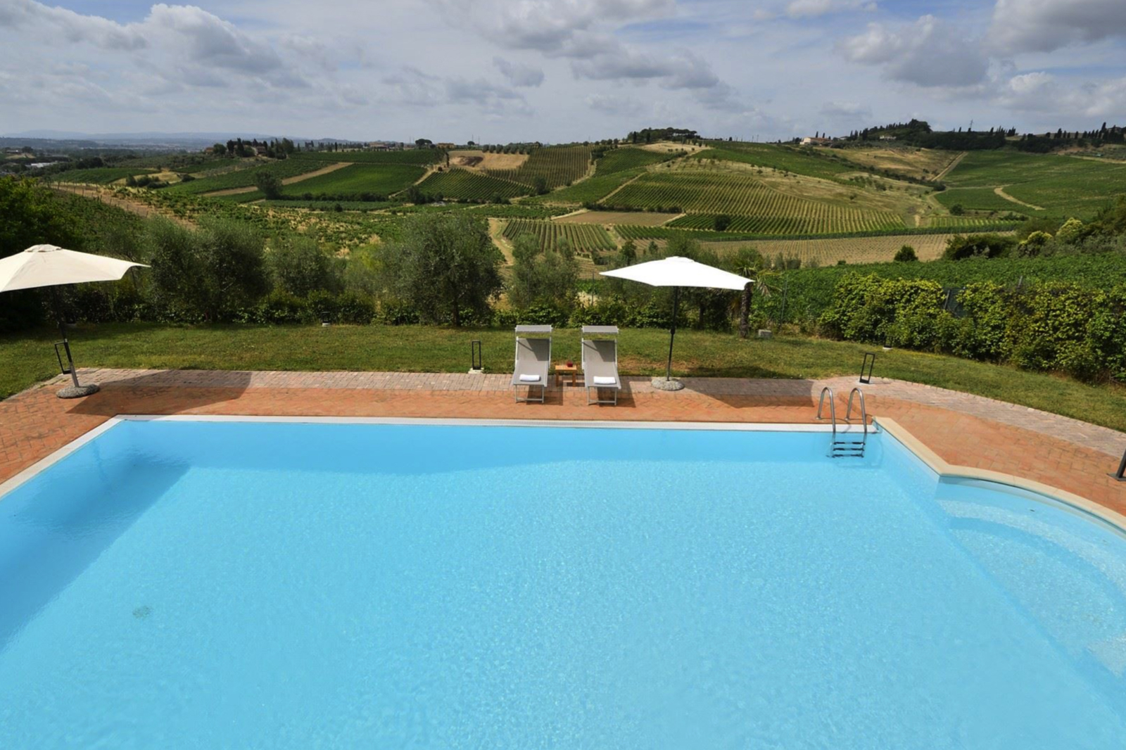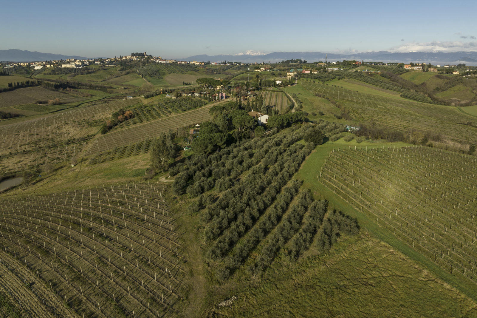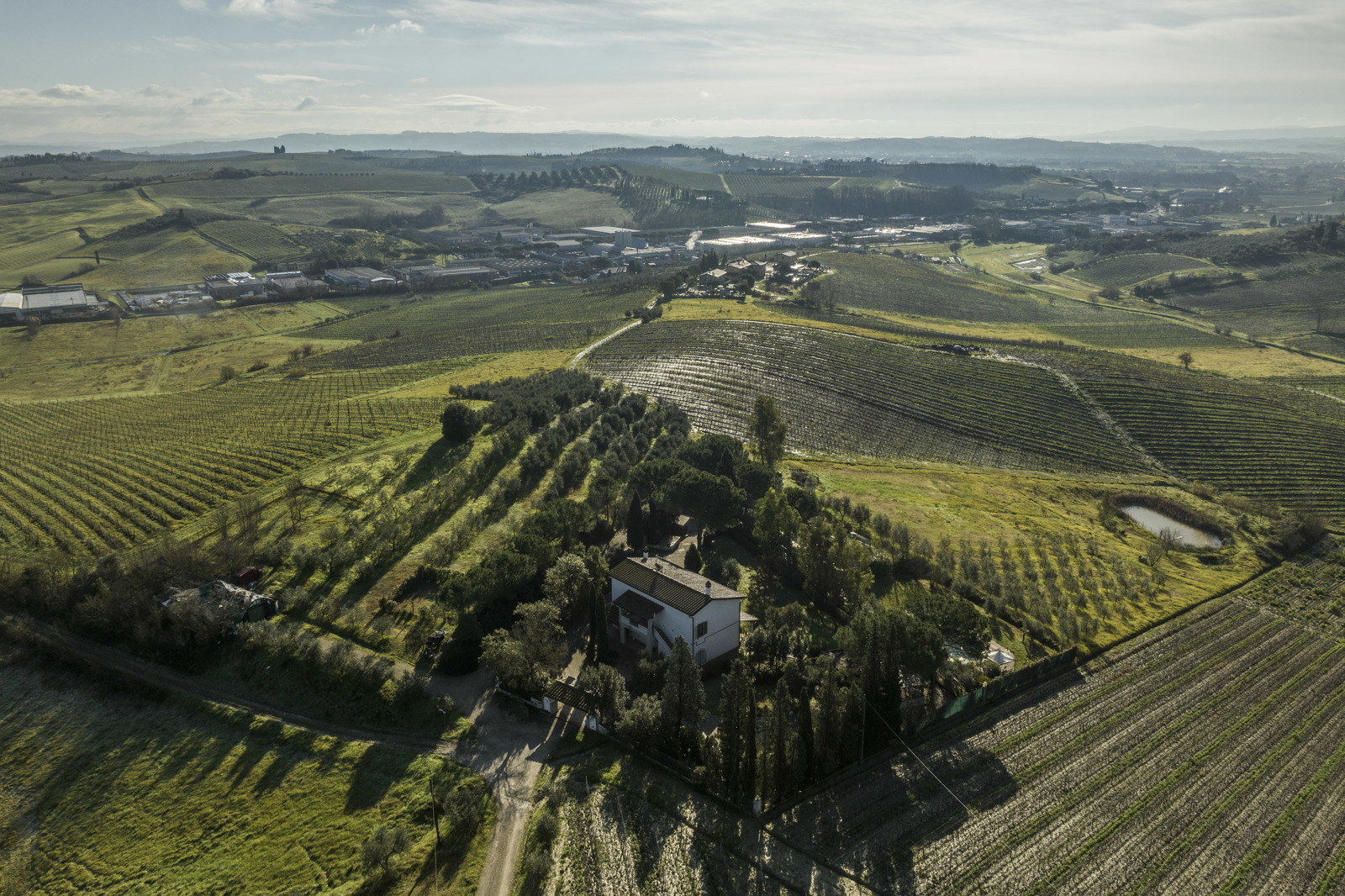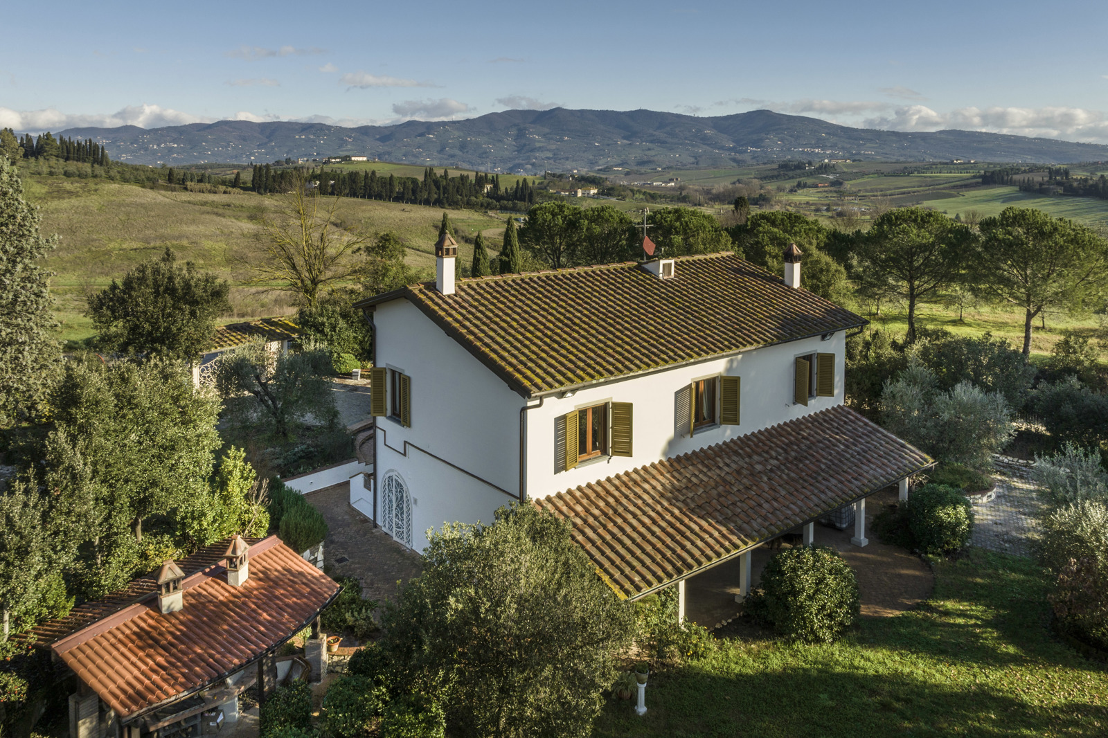 Delightful country house surrounded by private garden and accompanied by large land with olive grove, private pond and swimming pool. Located a short distance from Leonardo’s hometown, it sits on a rise overlooking the surrounding landscape covered in vineyards.