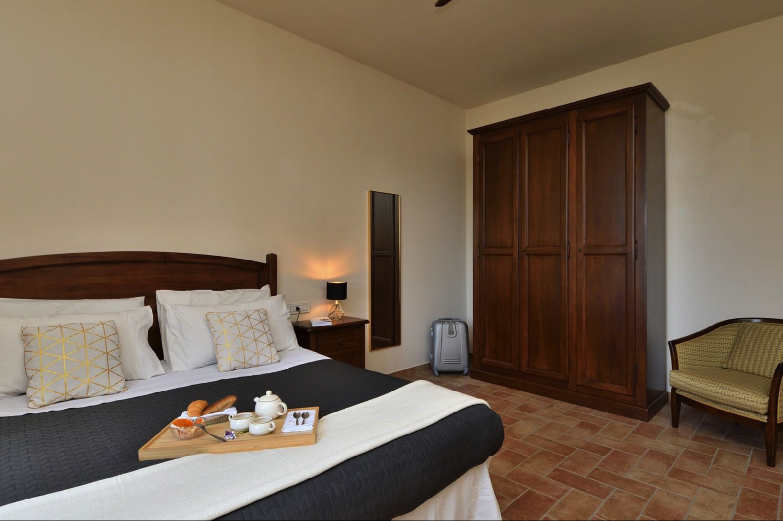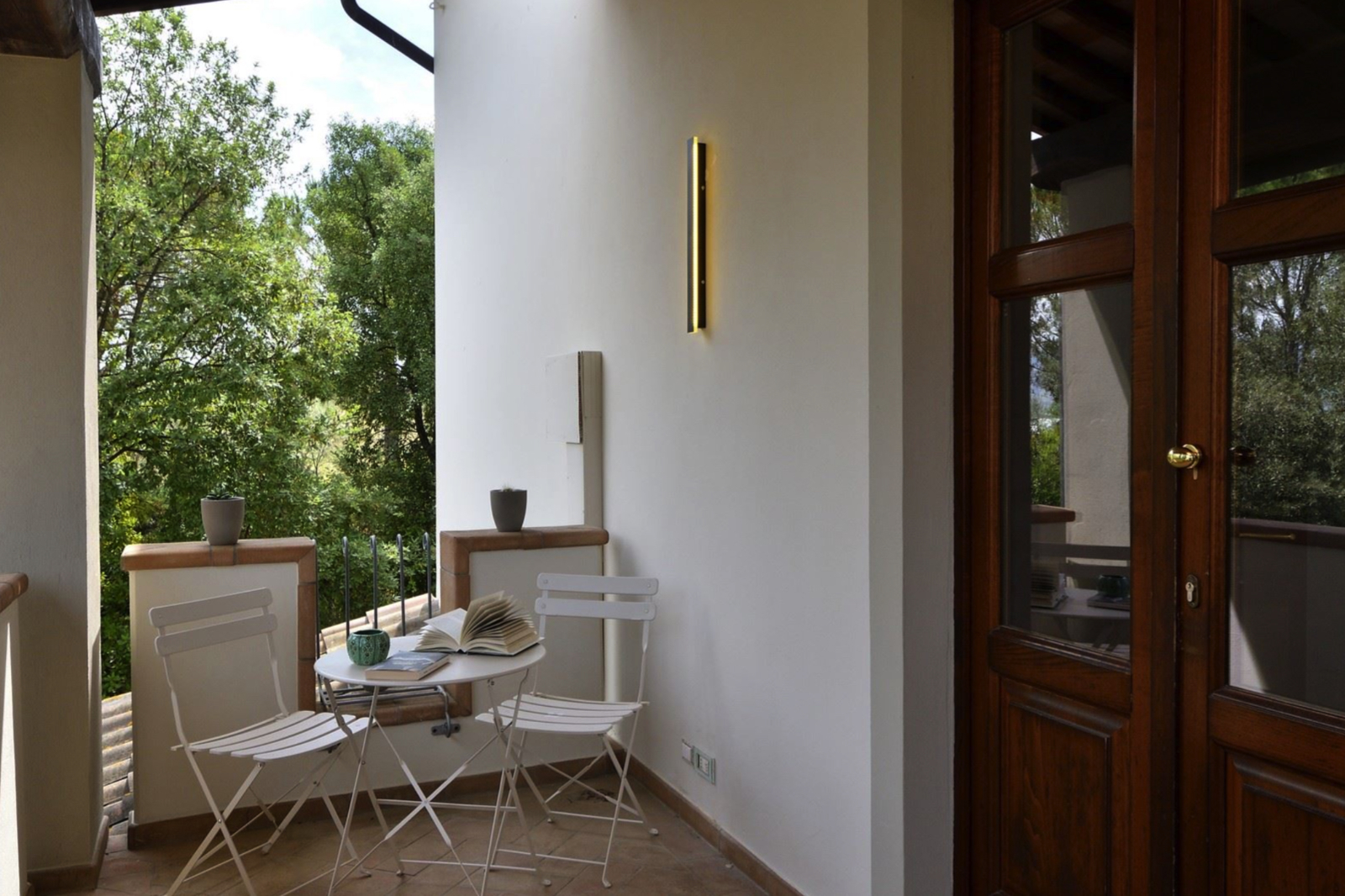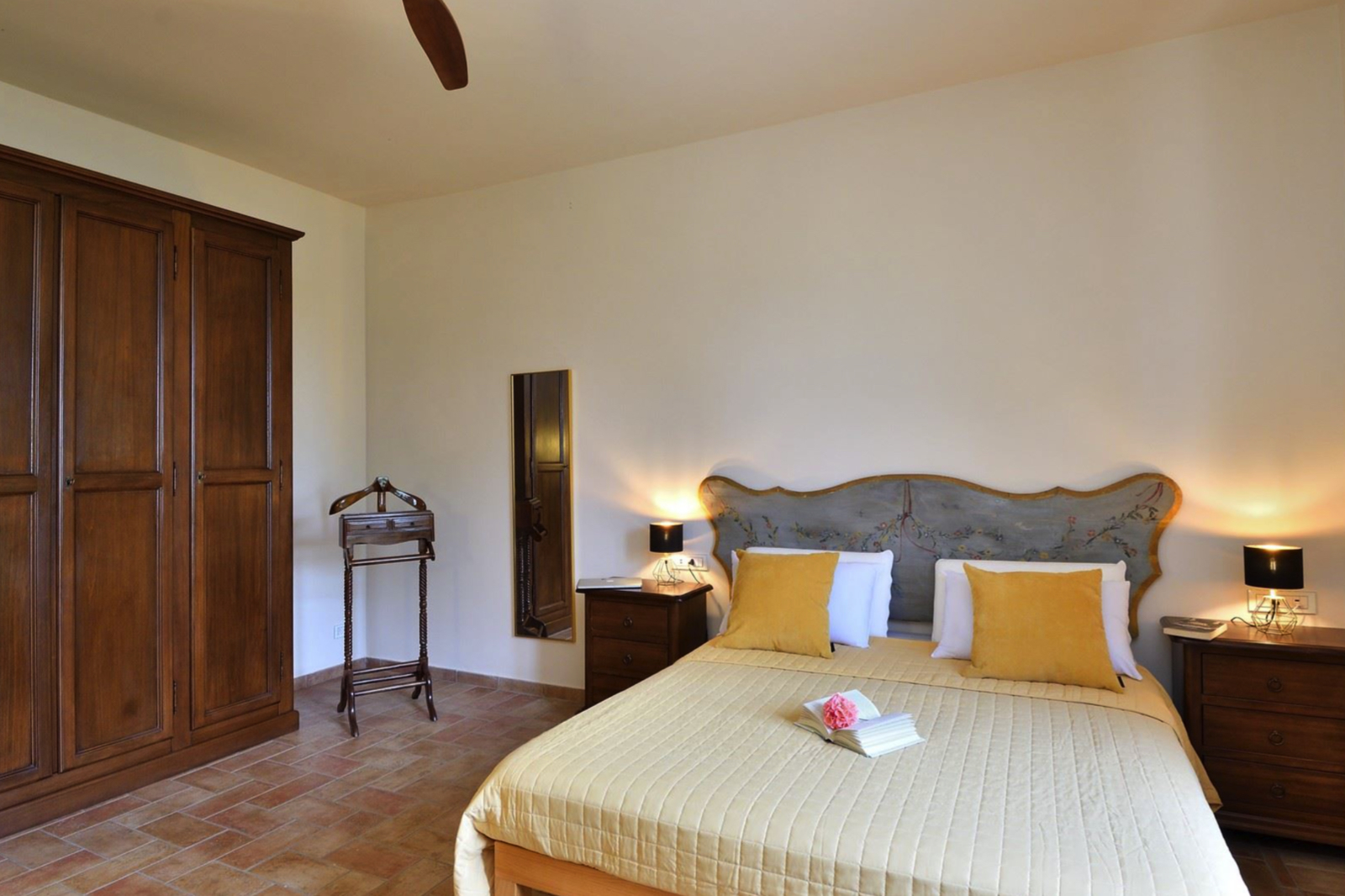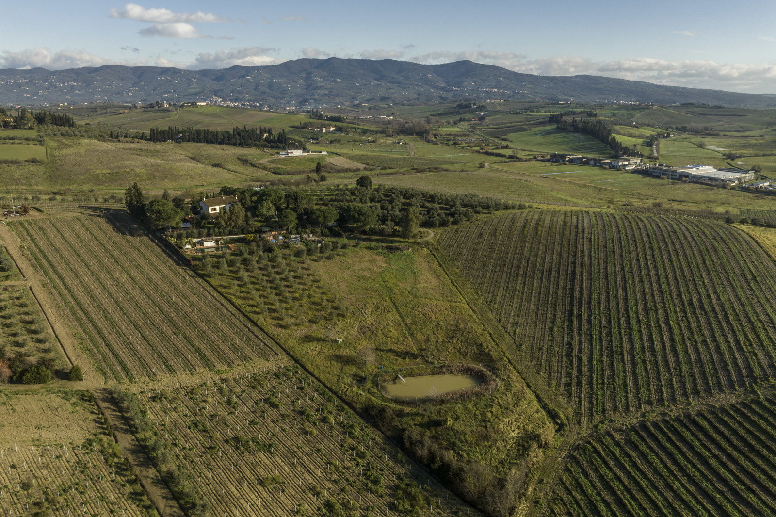 Delightful country house surrounded by private garden and accompanied by large land with olive grove, private pond and swimming pool. Located a short distance from Leonardo’s hometown, it sits on a rise overlooking the surrounding landscape covered in vineyards.